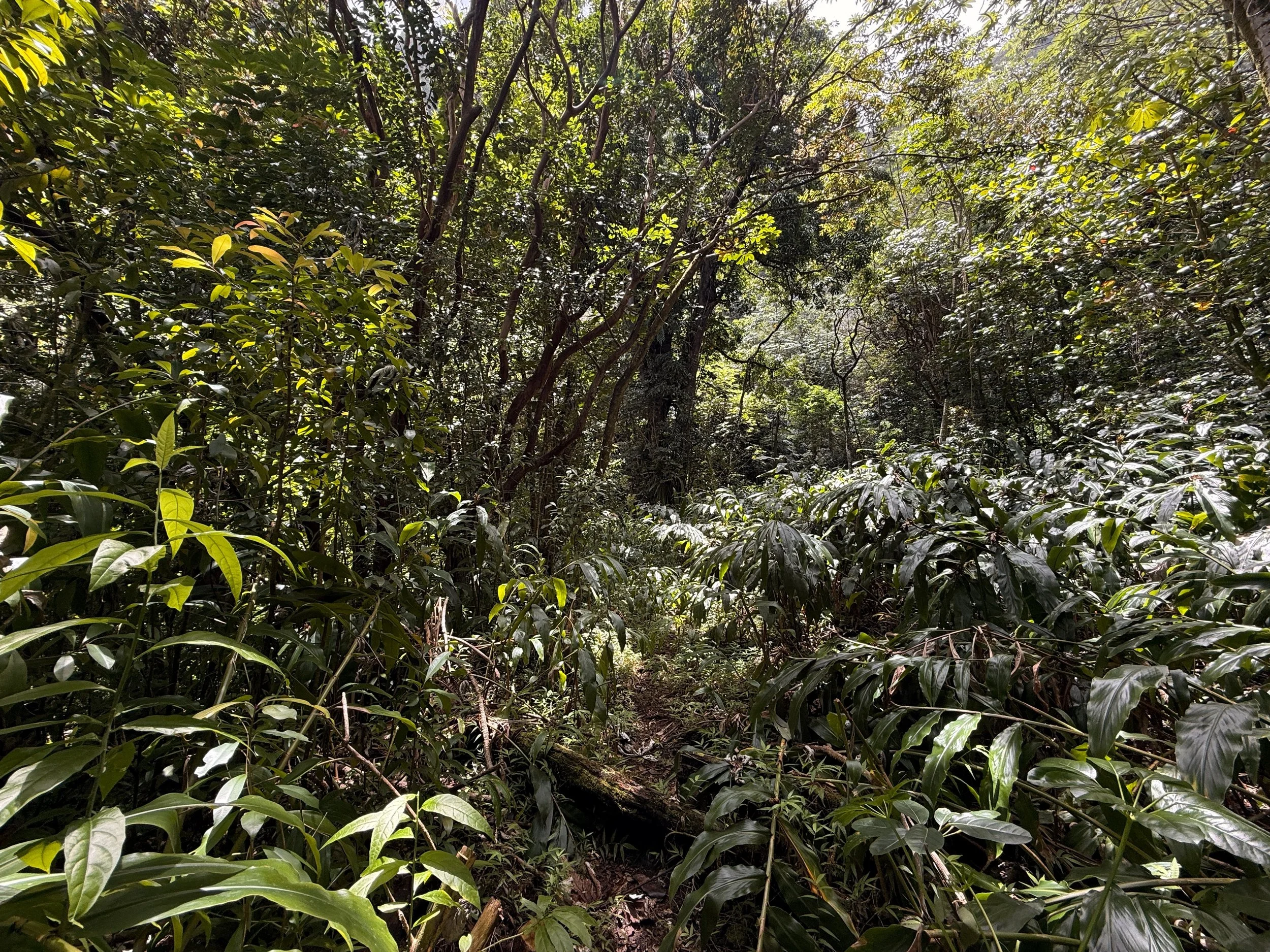 ʻĀhuimanu Valley is relatively low in elevation in terms of Hawaiʻi’s forests, meaning the vast majority of the trail is dominated by non-native, invasive species.