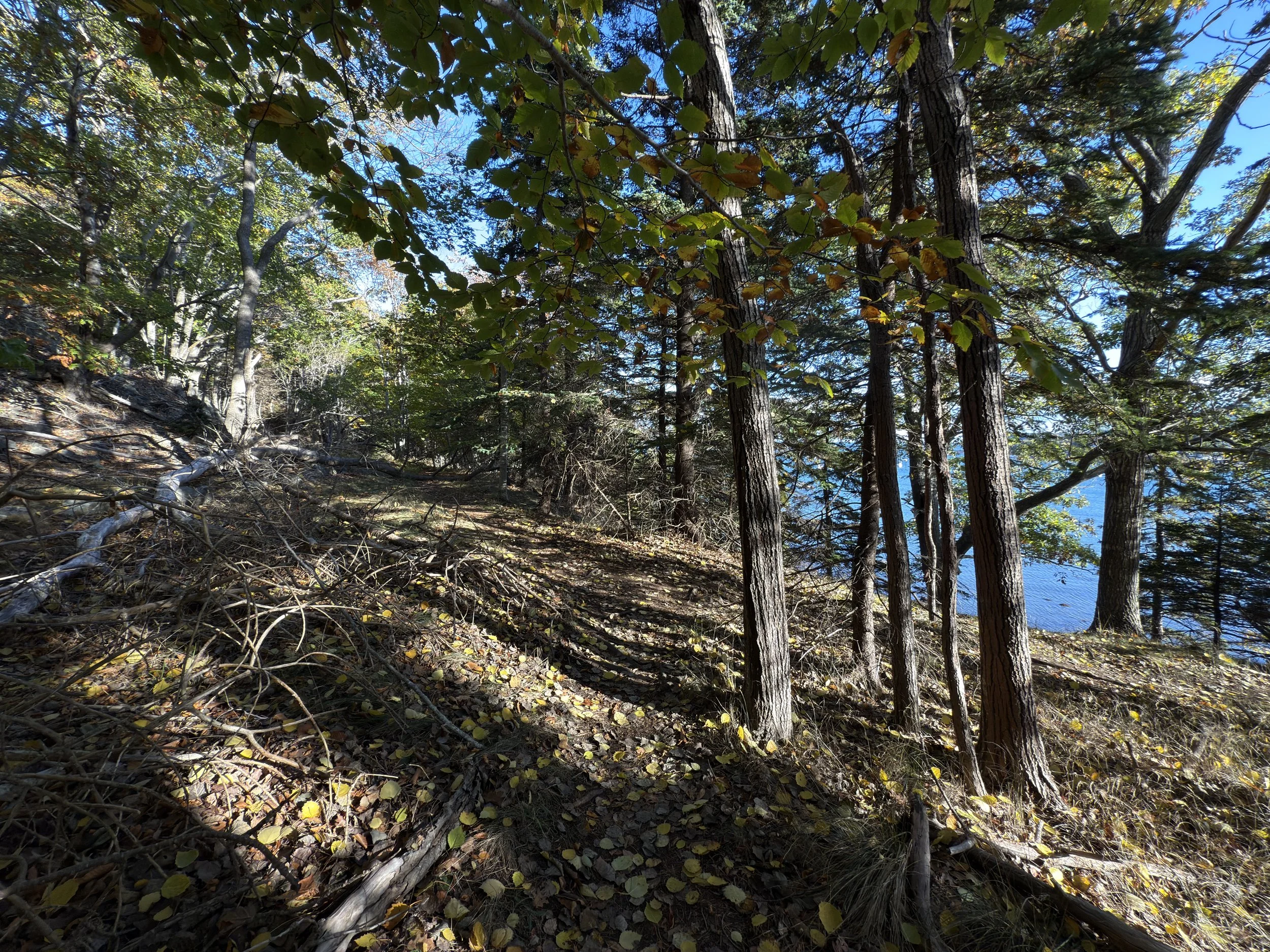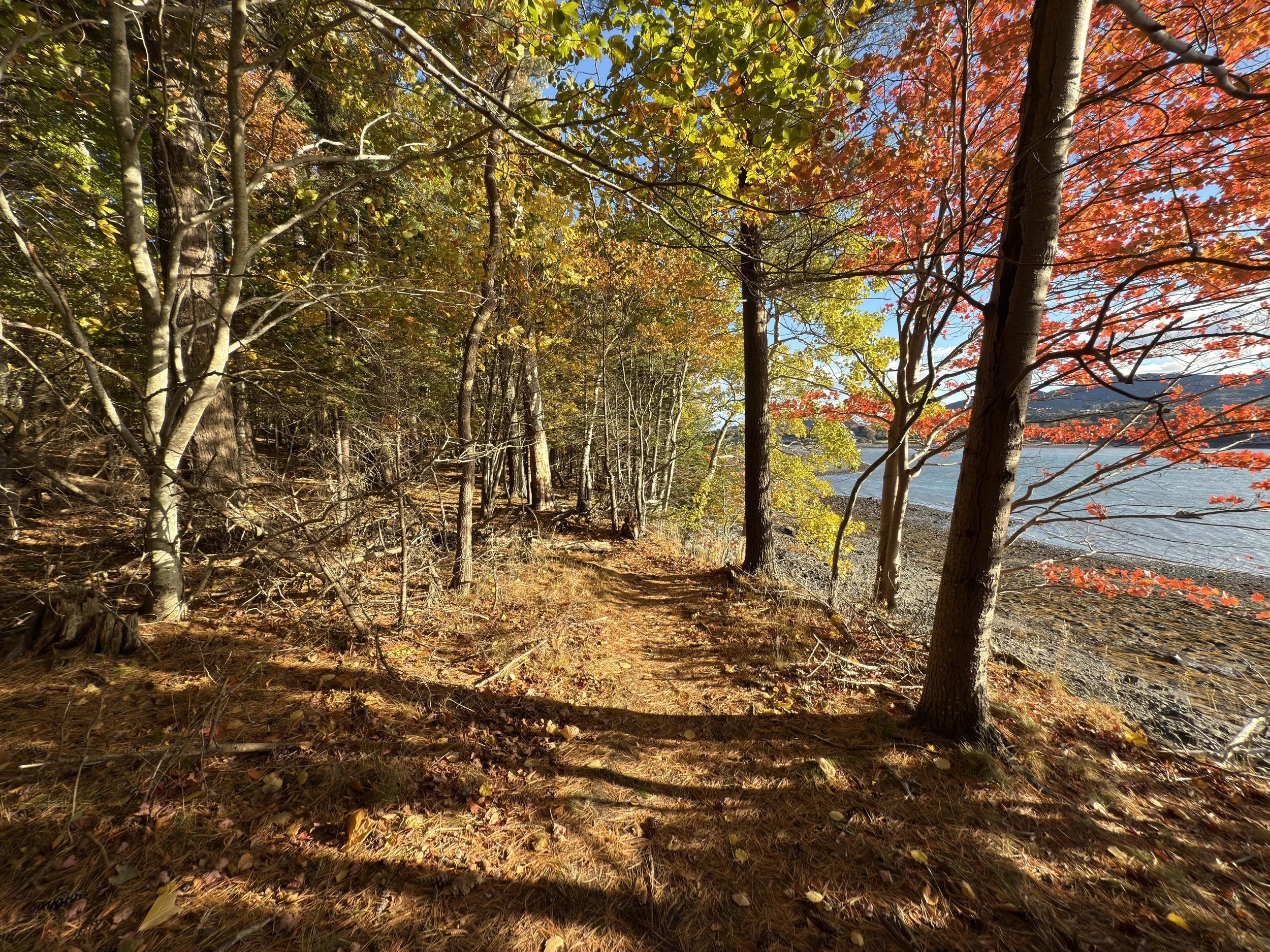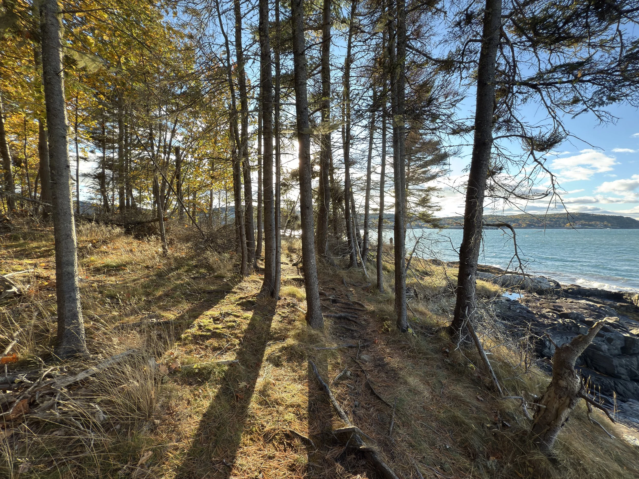 Once on the Bar Island Loop, the trail heads directly to the shoreline and follows the perimeter around Bar Island for roughly 1.2 miles (1.9 km) until it returns to the Bar Island Trail at the lower junction.