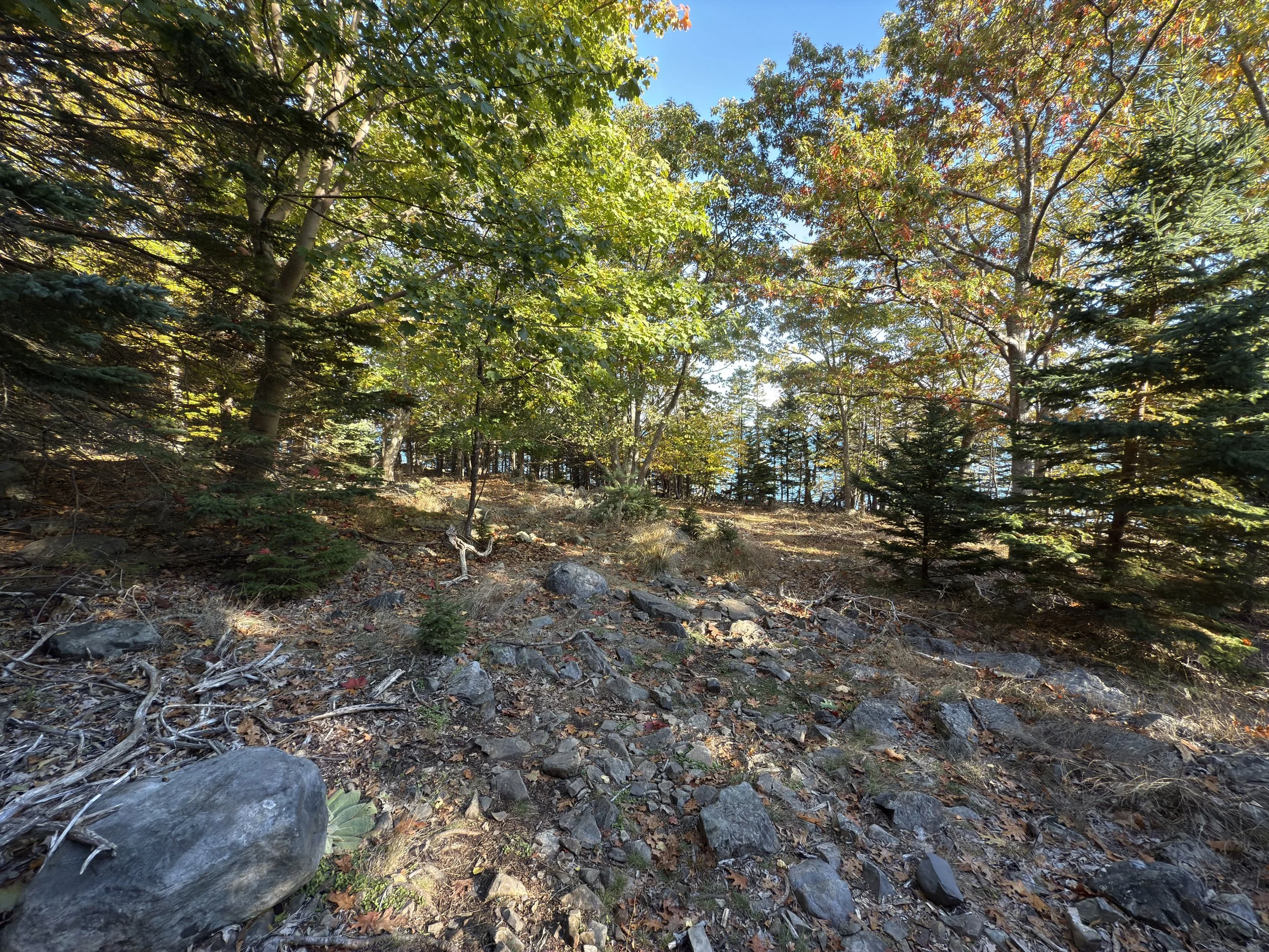 Not long after beginning the hike on Bar Island, the trail to the summit passes by the first of two different junctions with the Bar Island Loop Trail.