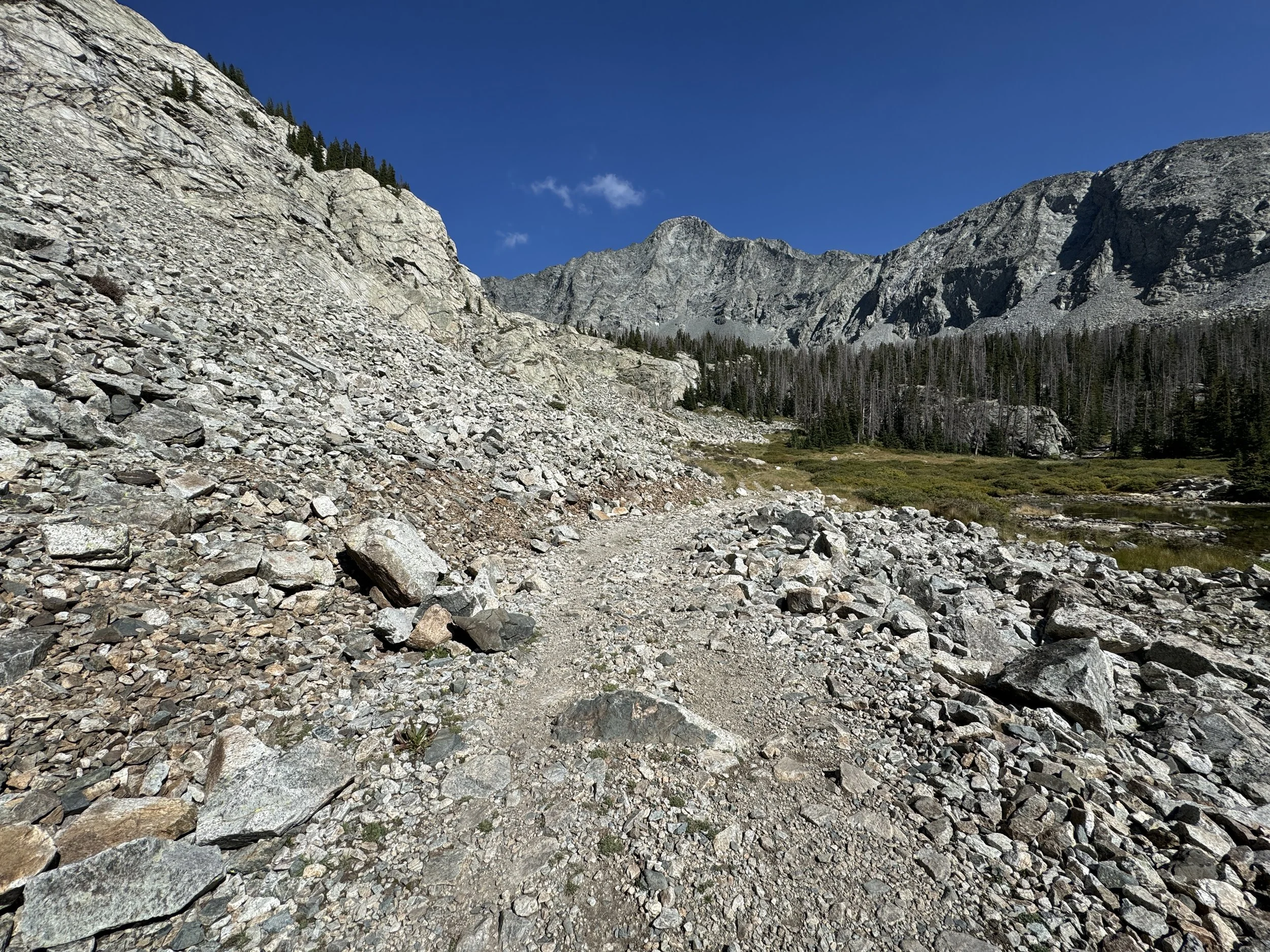 Shortly after the Blue Lakes, Lake Como Road ends, and the true Blanca Peak Trail begins.