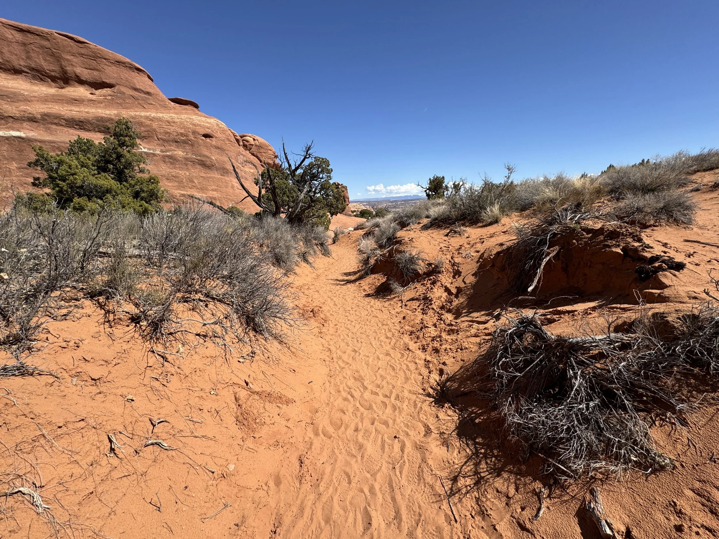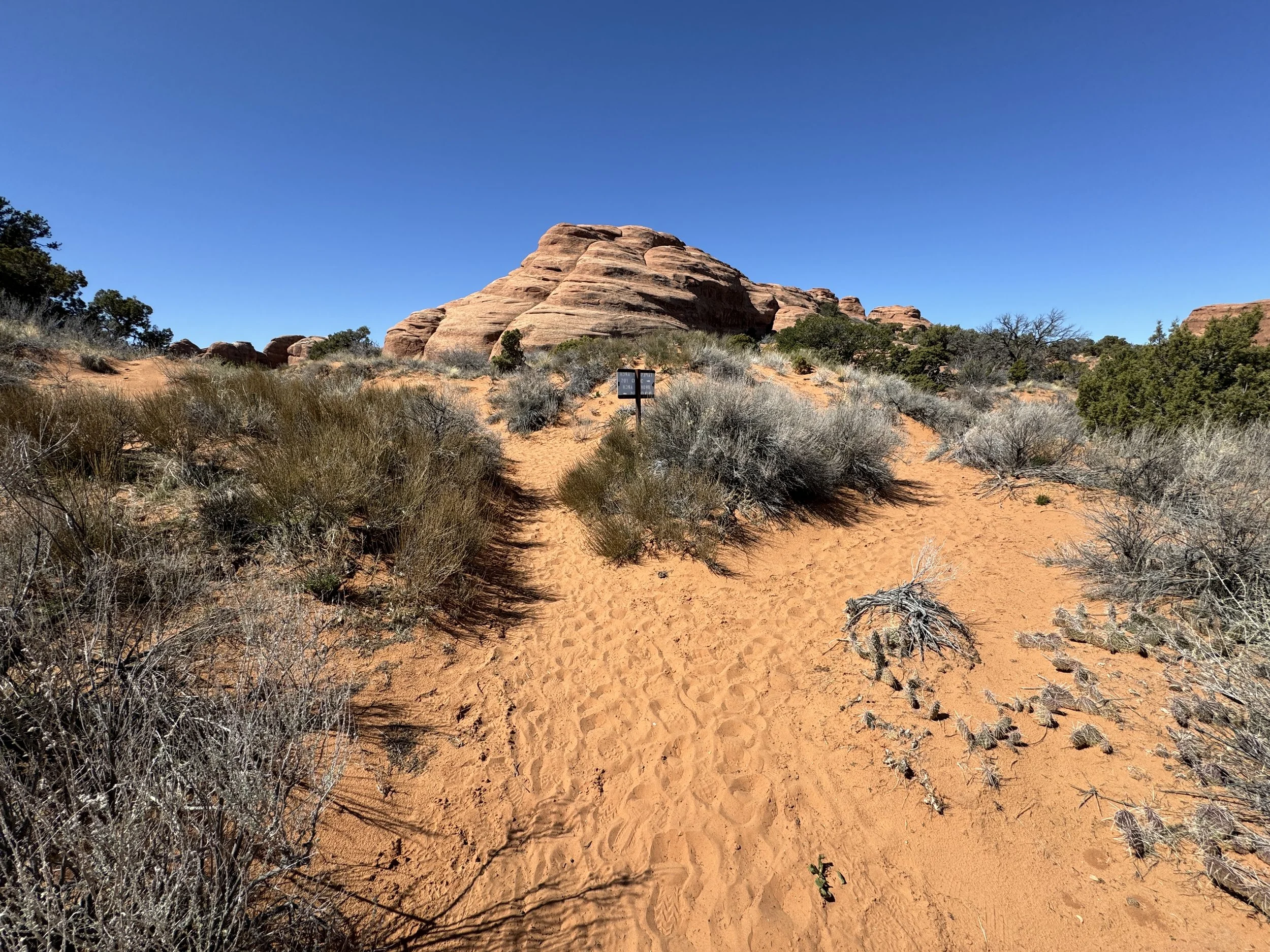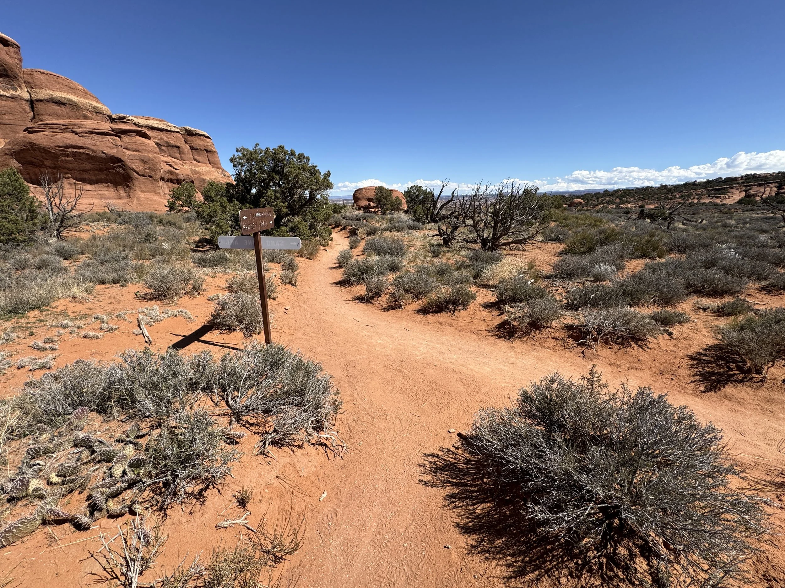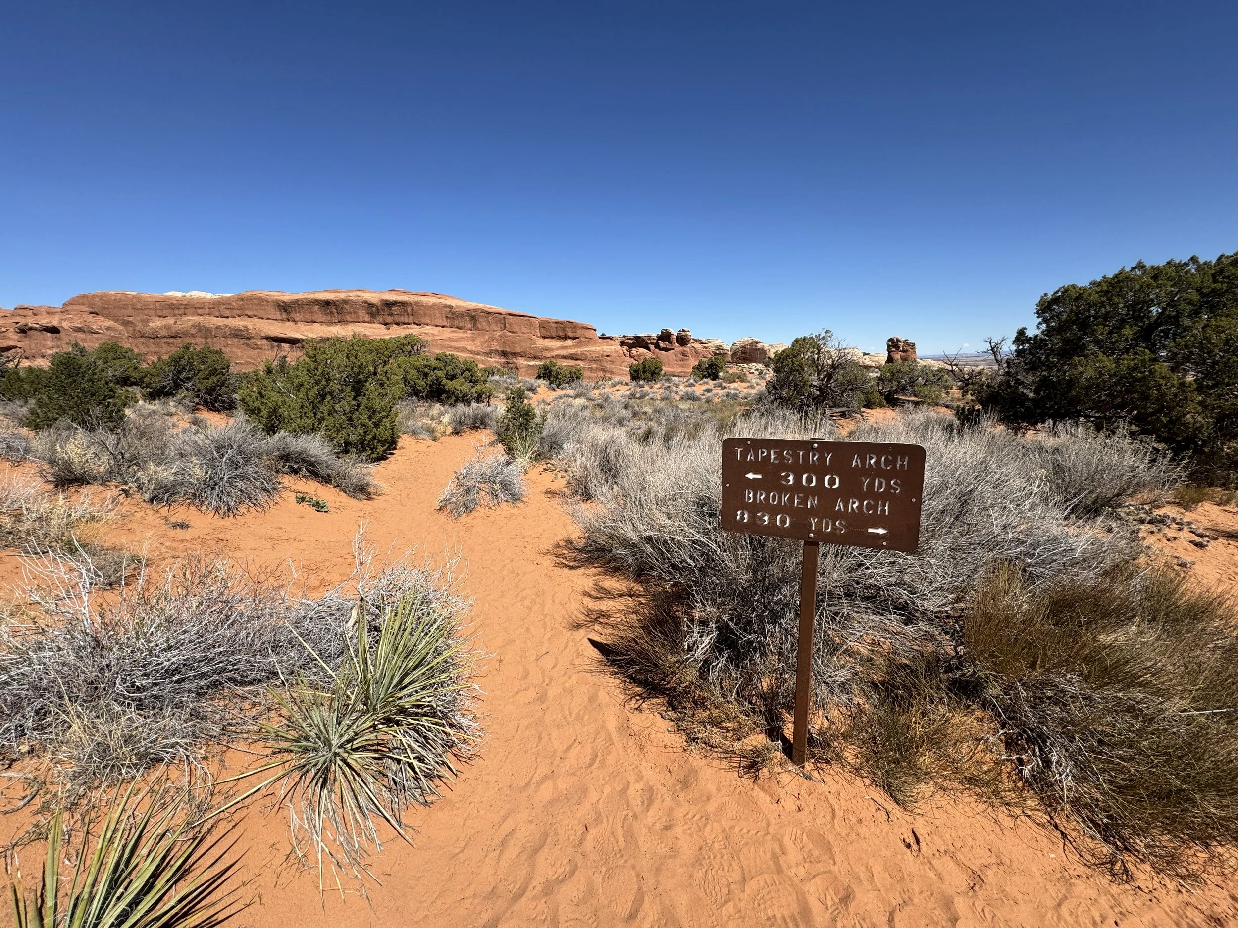 This is where you can either go left to continue around the Broken Arch Trail, or right to begin the Connector Trail over to the Sand Dune Arch.