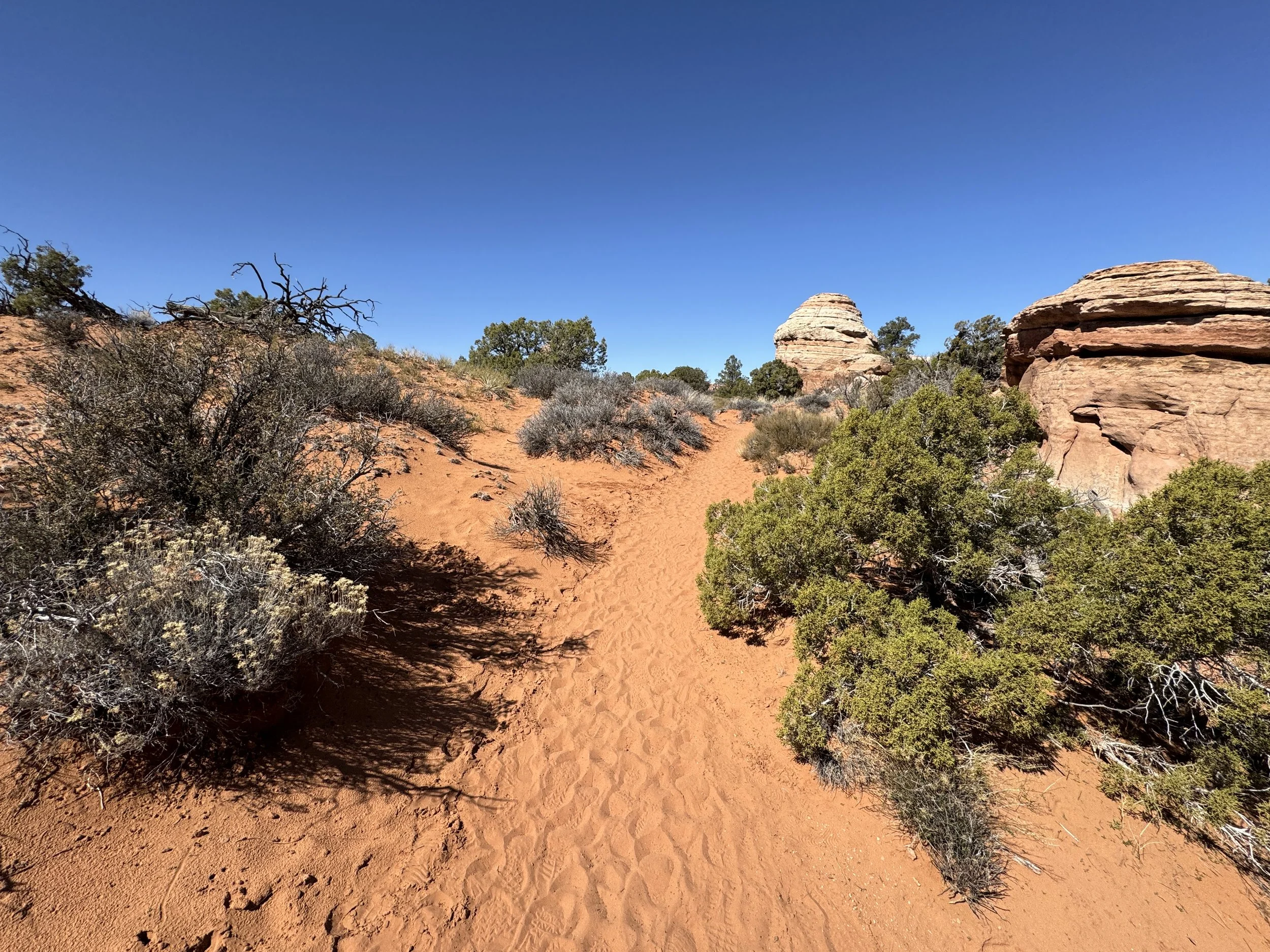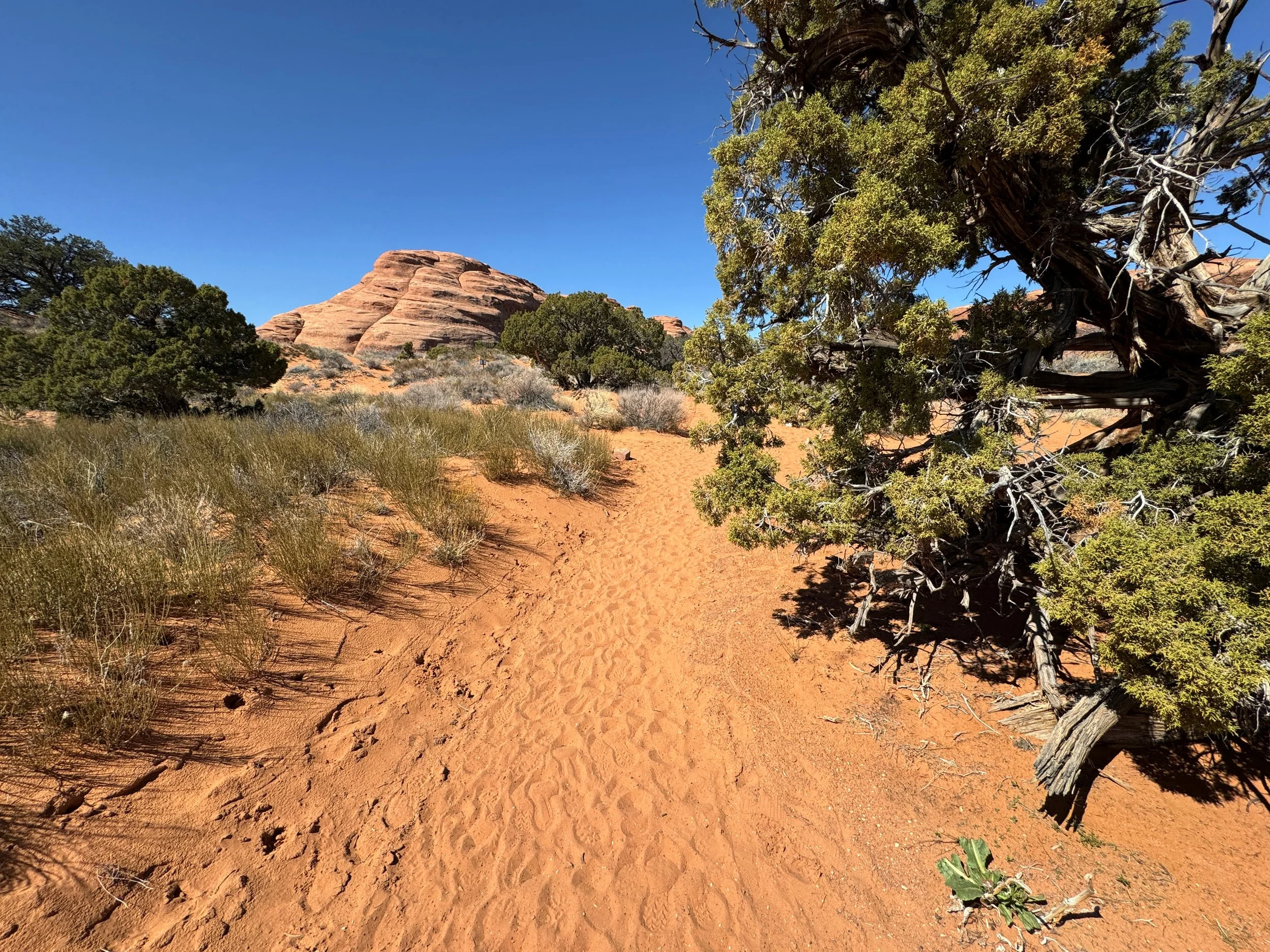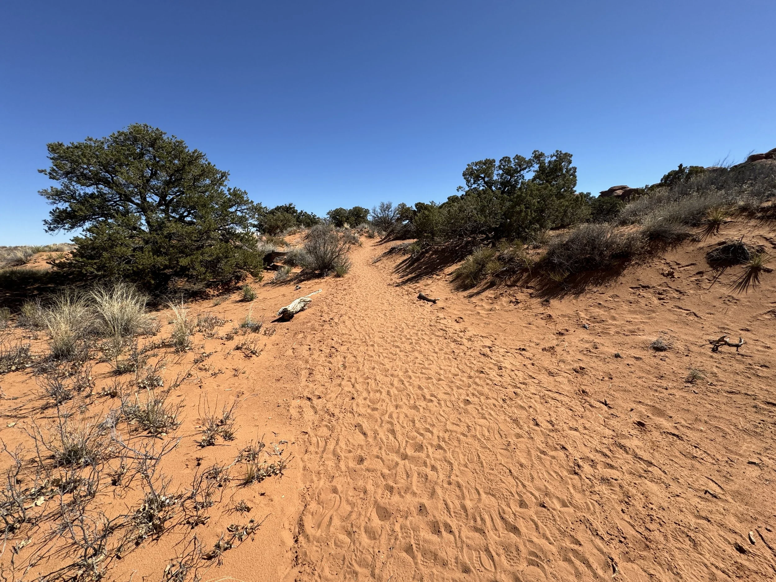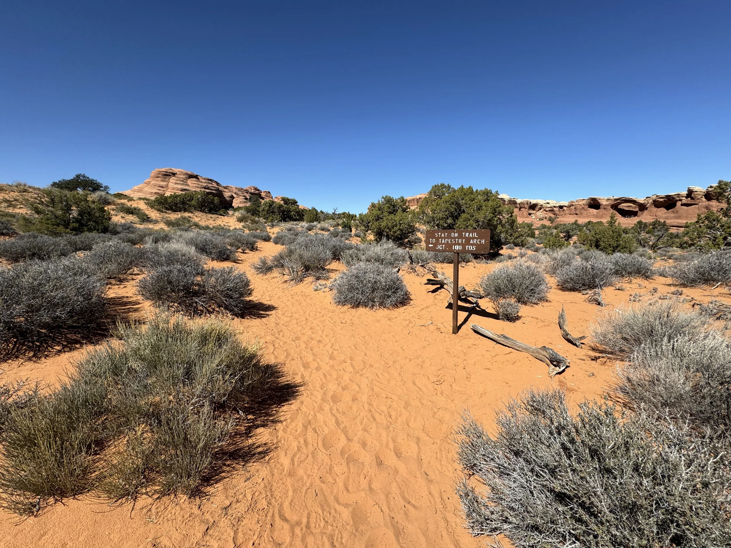 This is where you can either go left to continue around the Broken Arch Trail, or right to begin the Connector Trail over to the Sand Dune Arch.