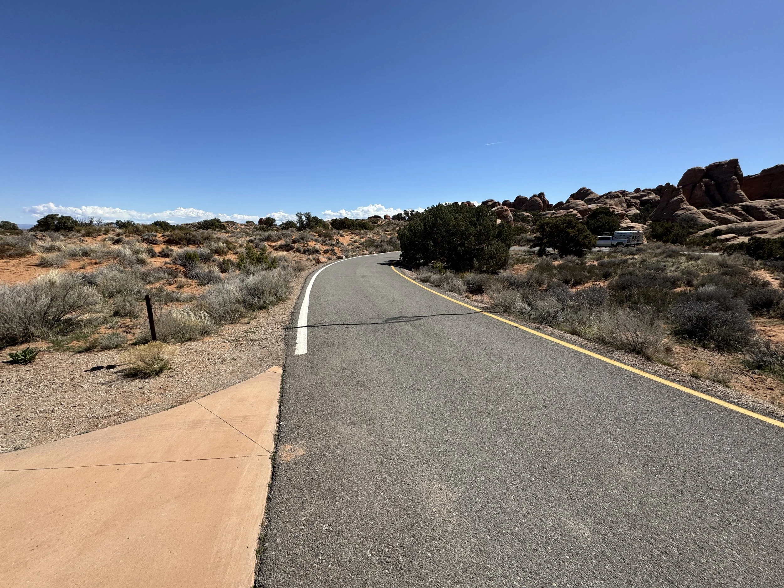 To get to the South Broken Arch Trailhead, go left at the loop at the end of Devil’s Garden Campground Road, and the South Trailhead can be found between campsites 50 and 51.