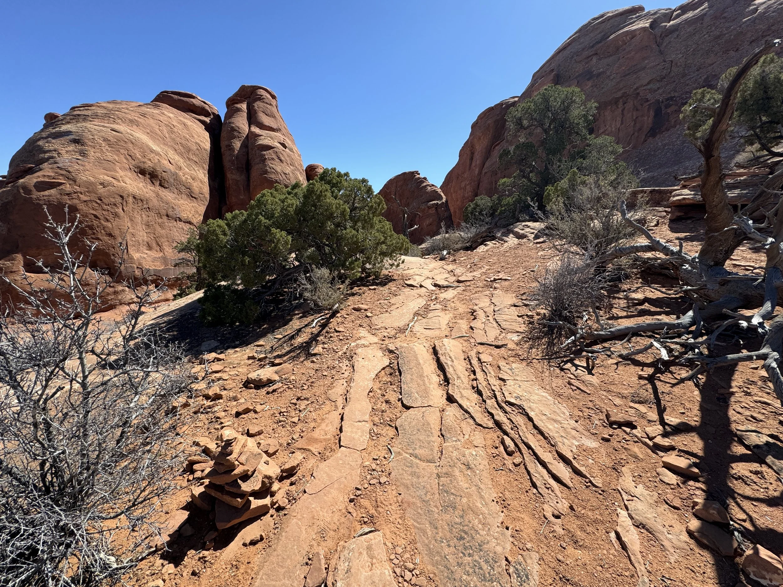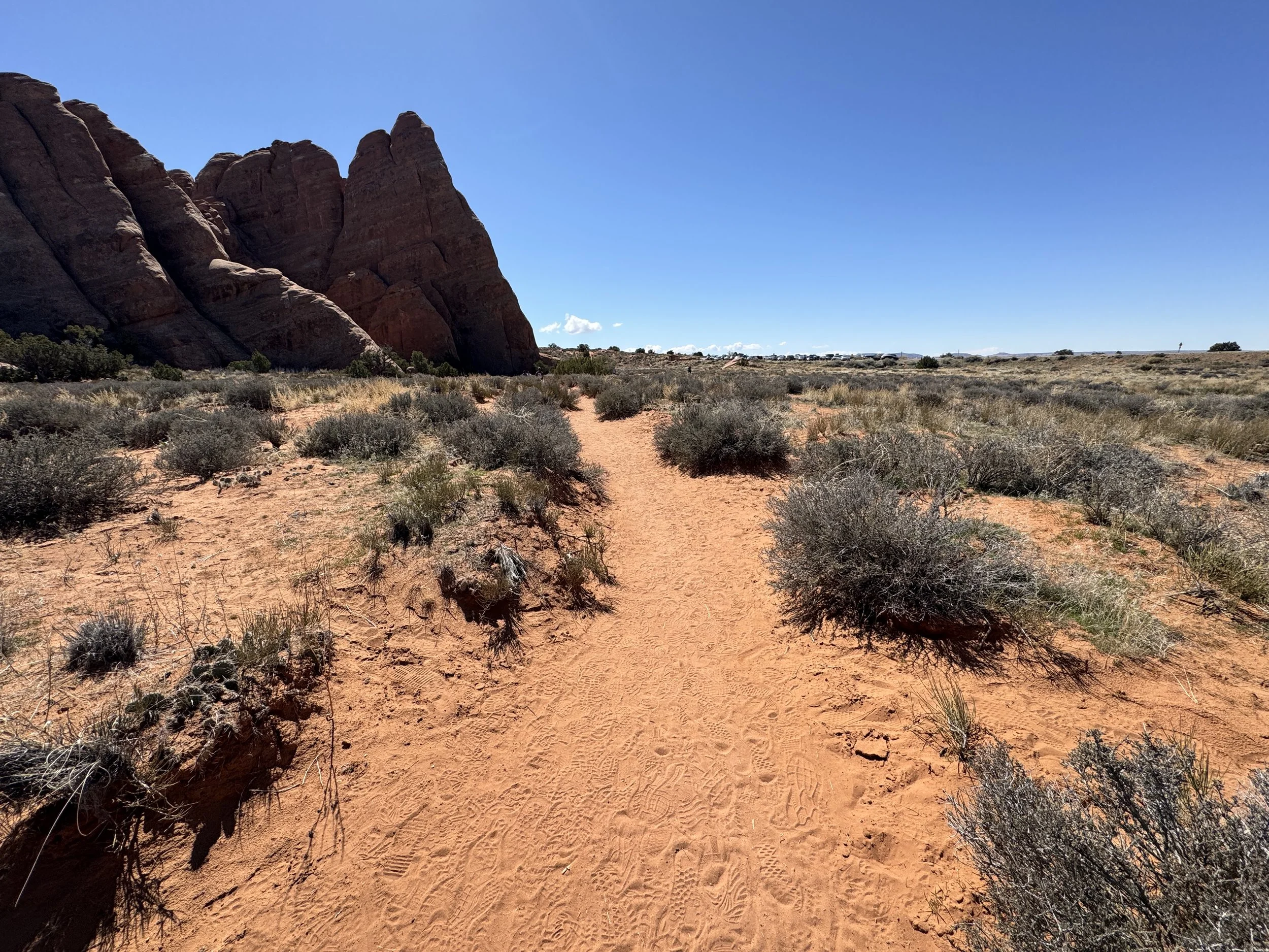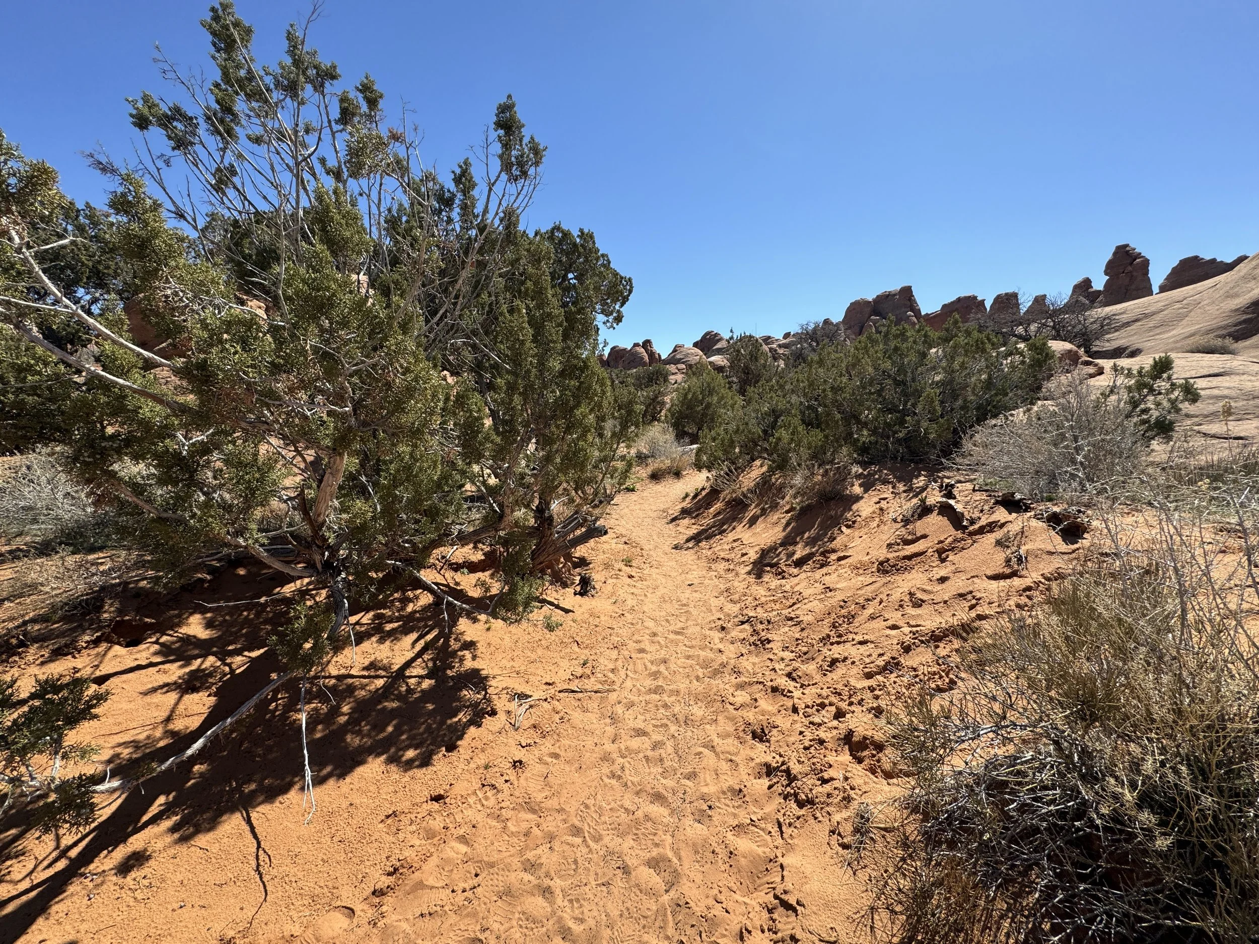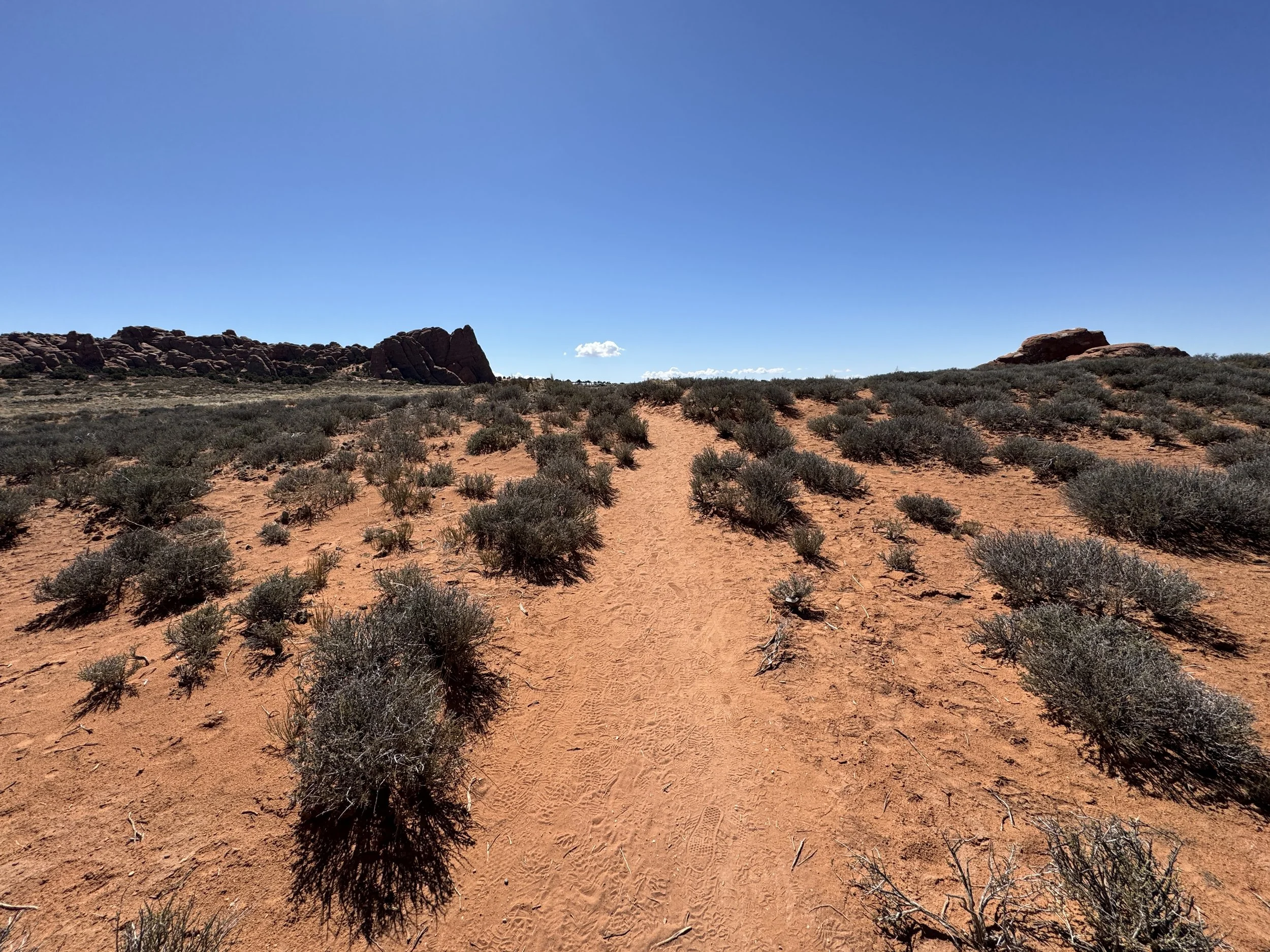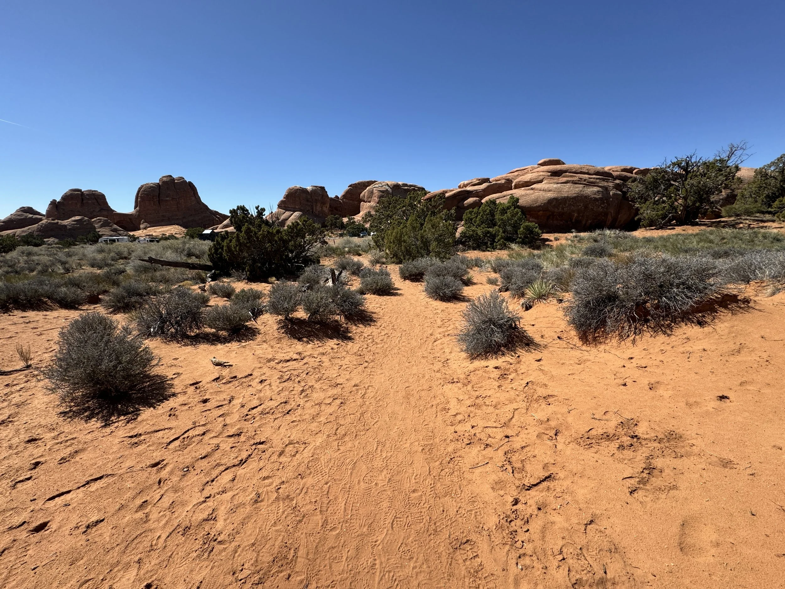 Personally, I prefer to hike through Devil’s Garden Campground to the South Trailhead first and finish here at the North Broken Arch Trailhead, which is what’s shown below.