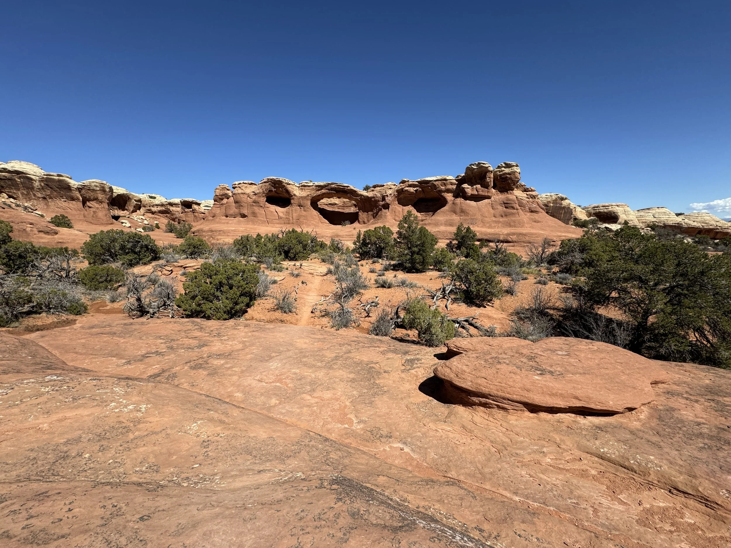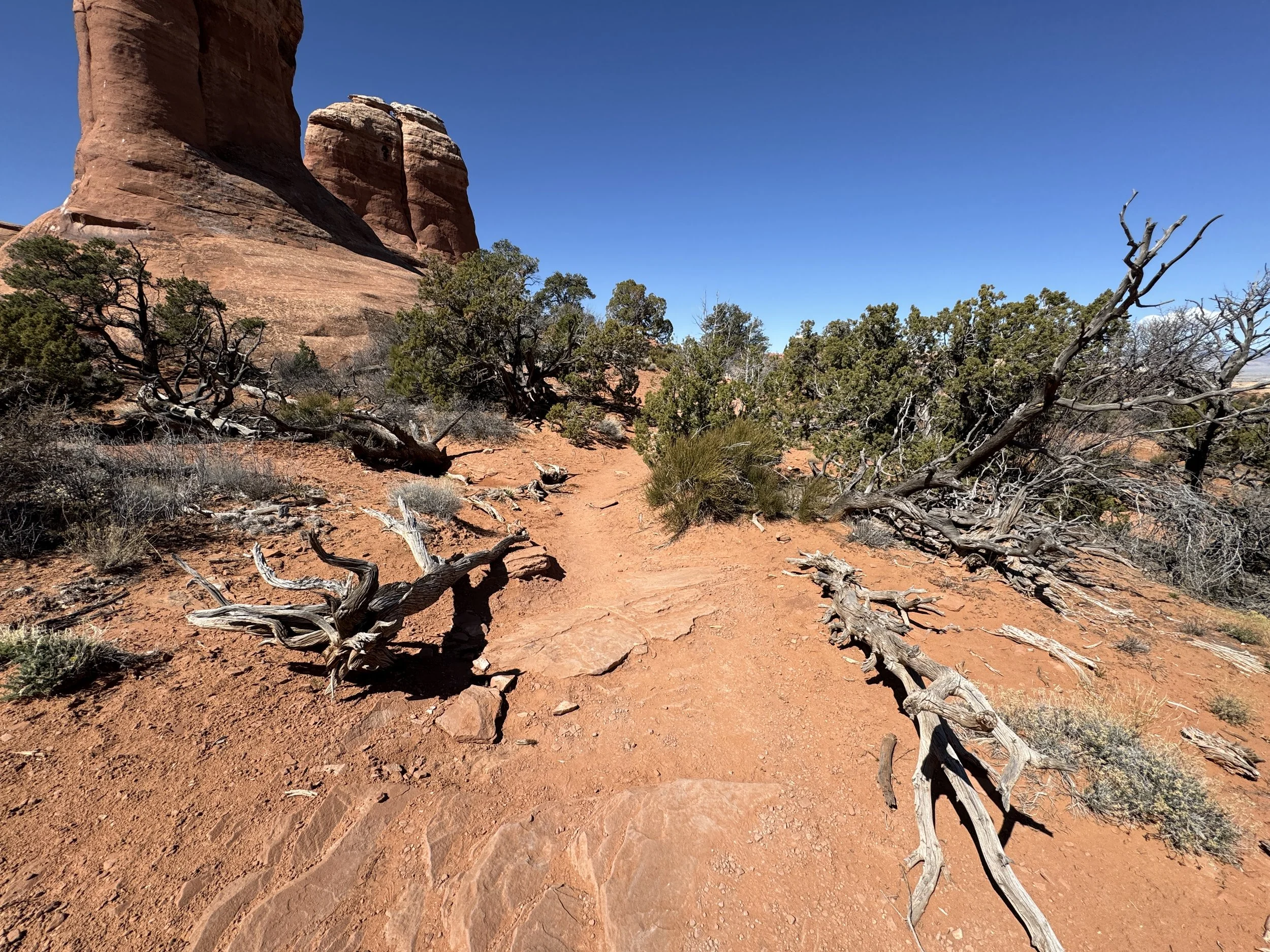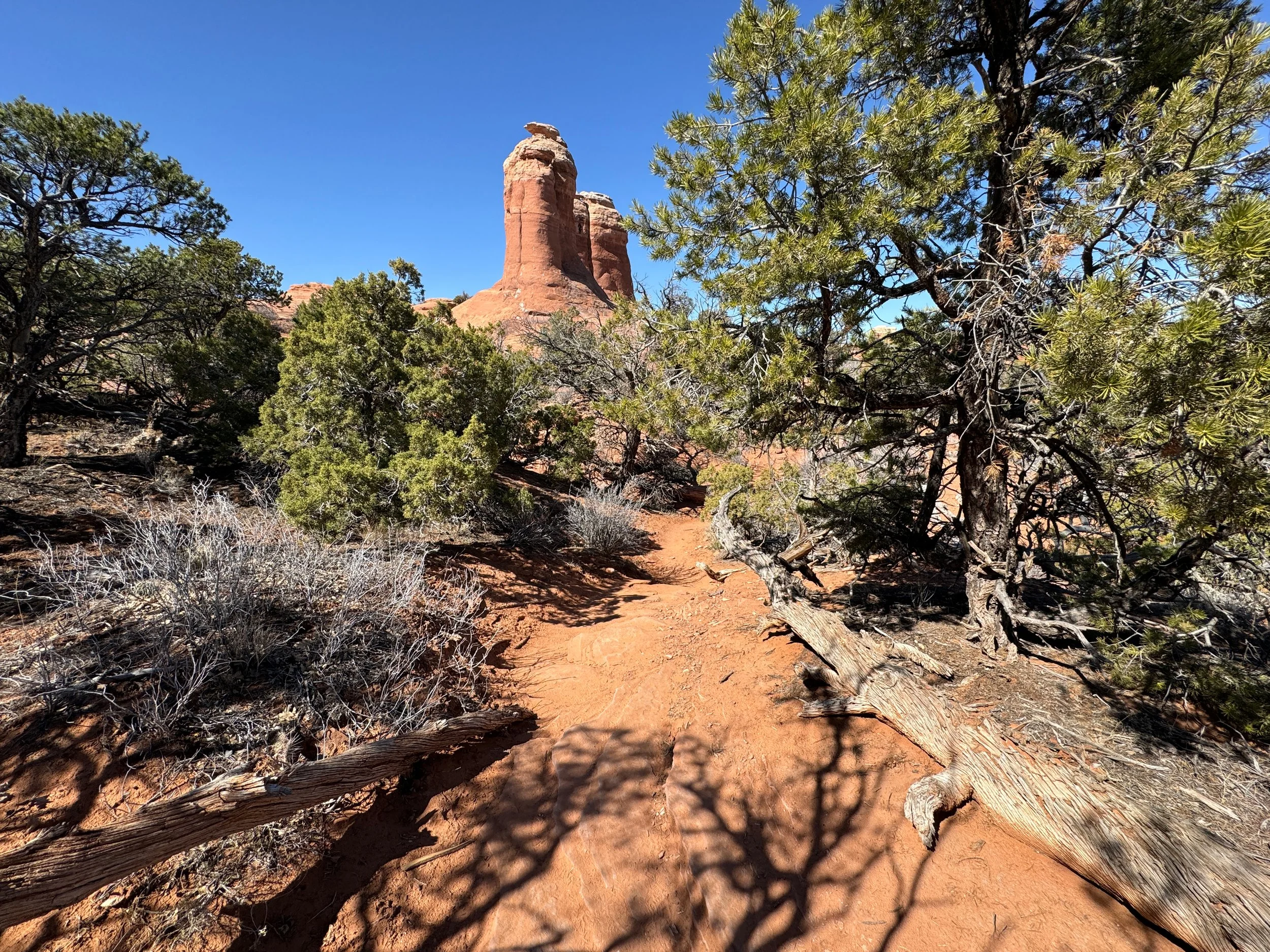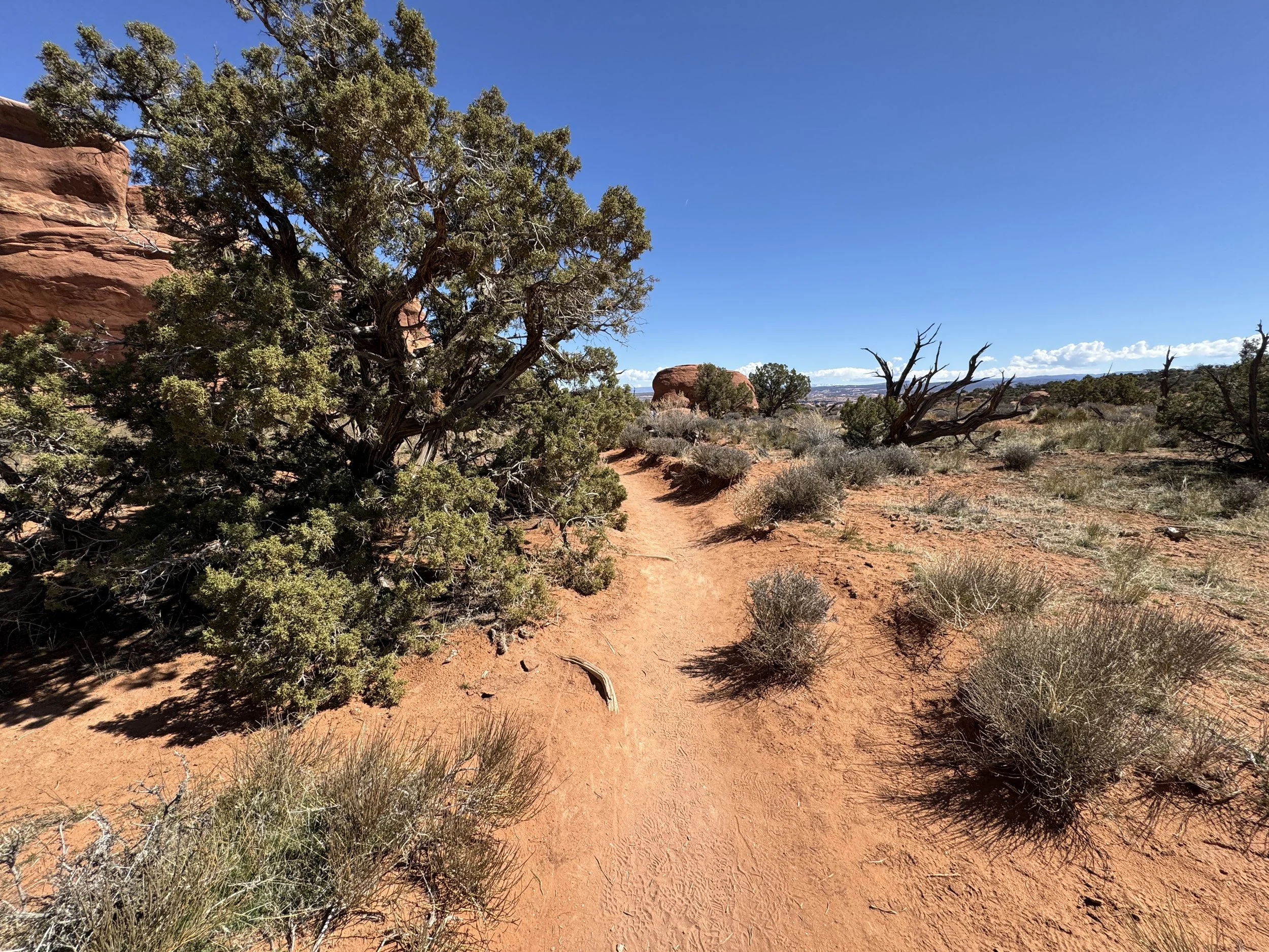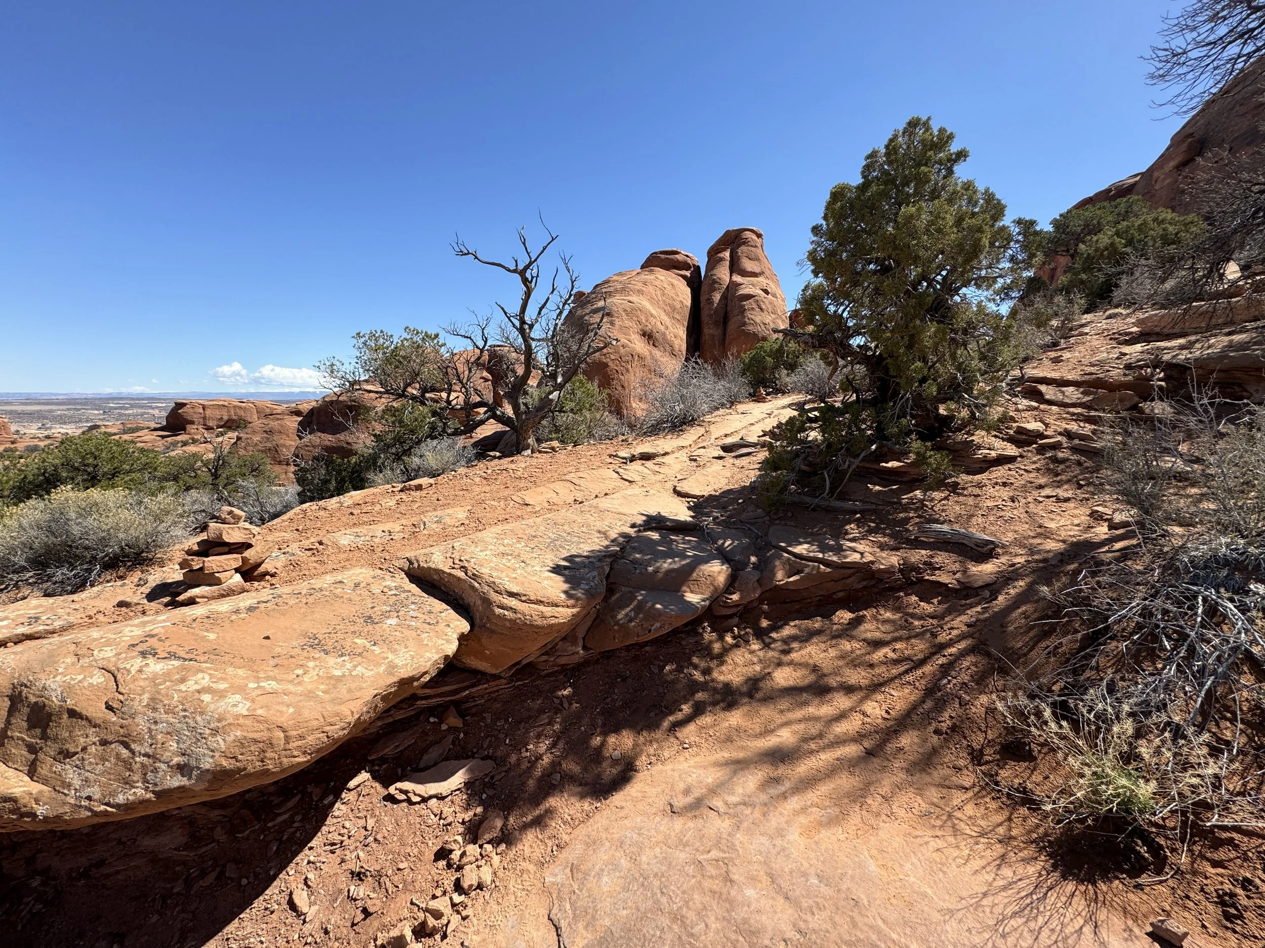 On the east side of the Broken Arch Loop, the Utah Junipers and Piñon Pines are some of the only places to find shade from the hot summer sun.