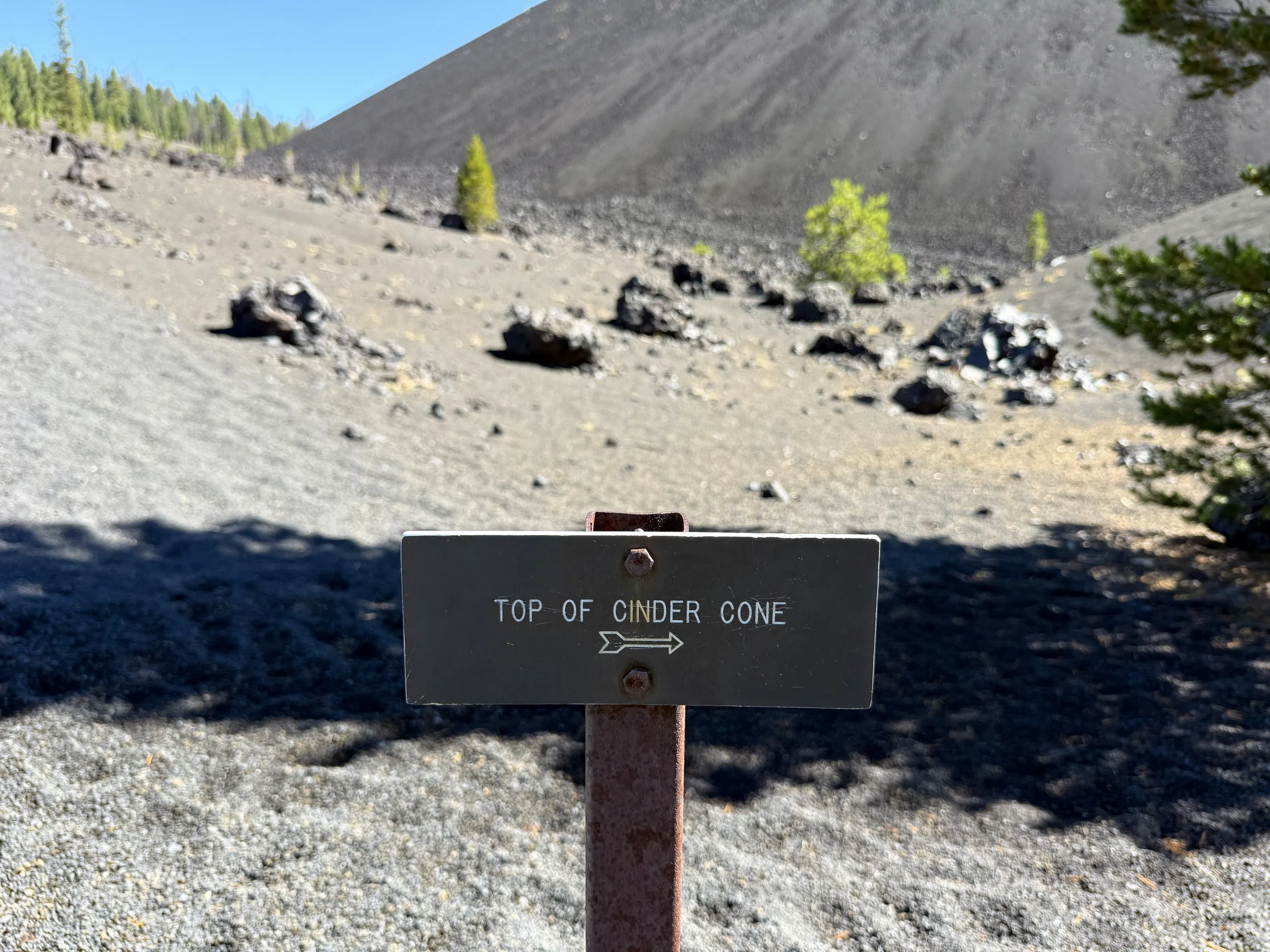 The 1.2-mile (1.9 km) distance on the sign is only the distance to the base of the Cinder Cone, not the top, or the loop around the back side.