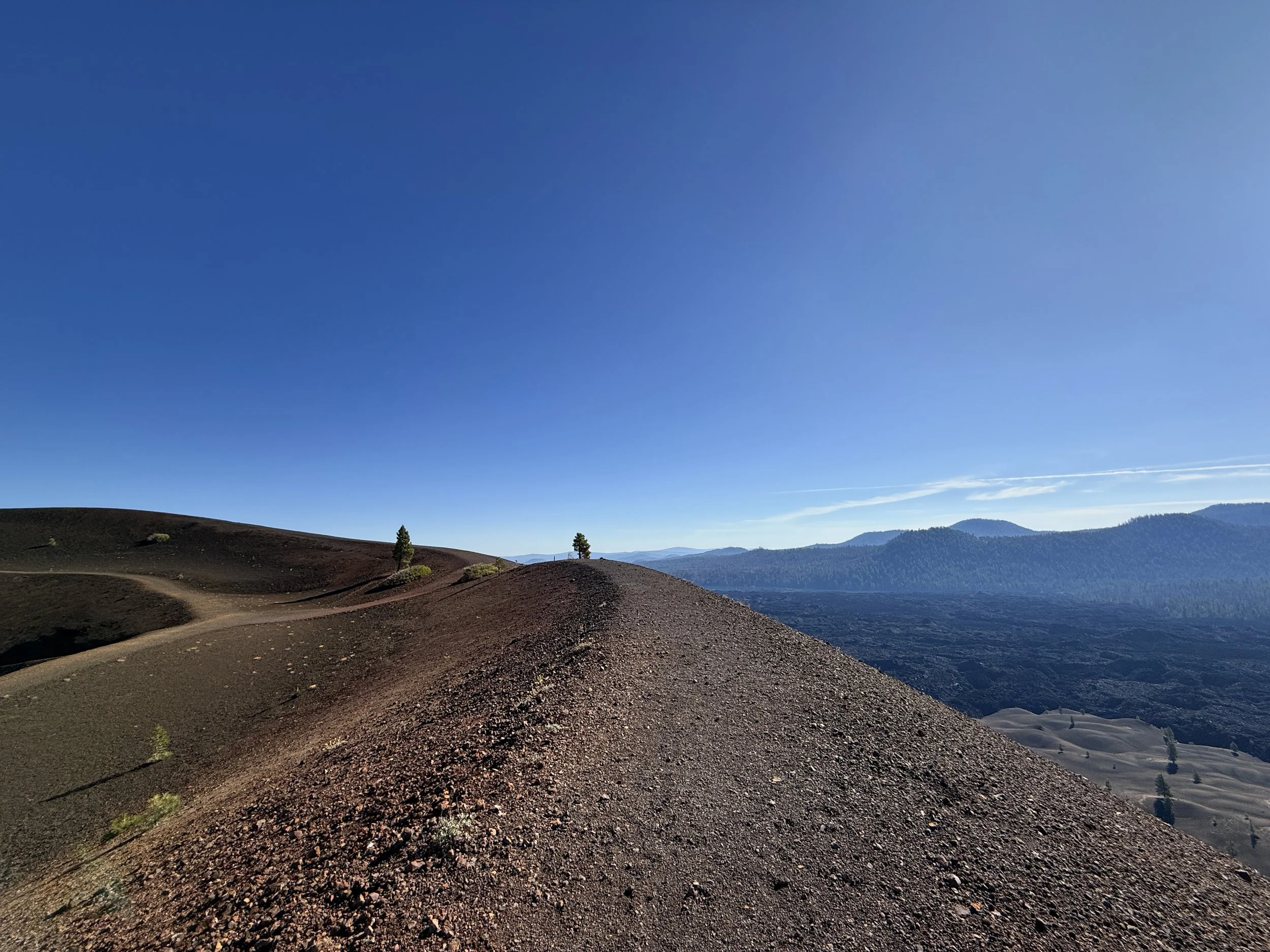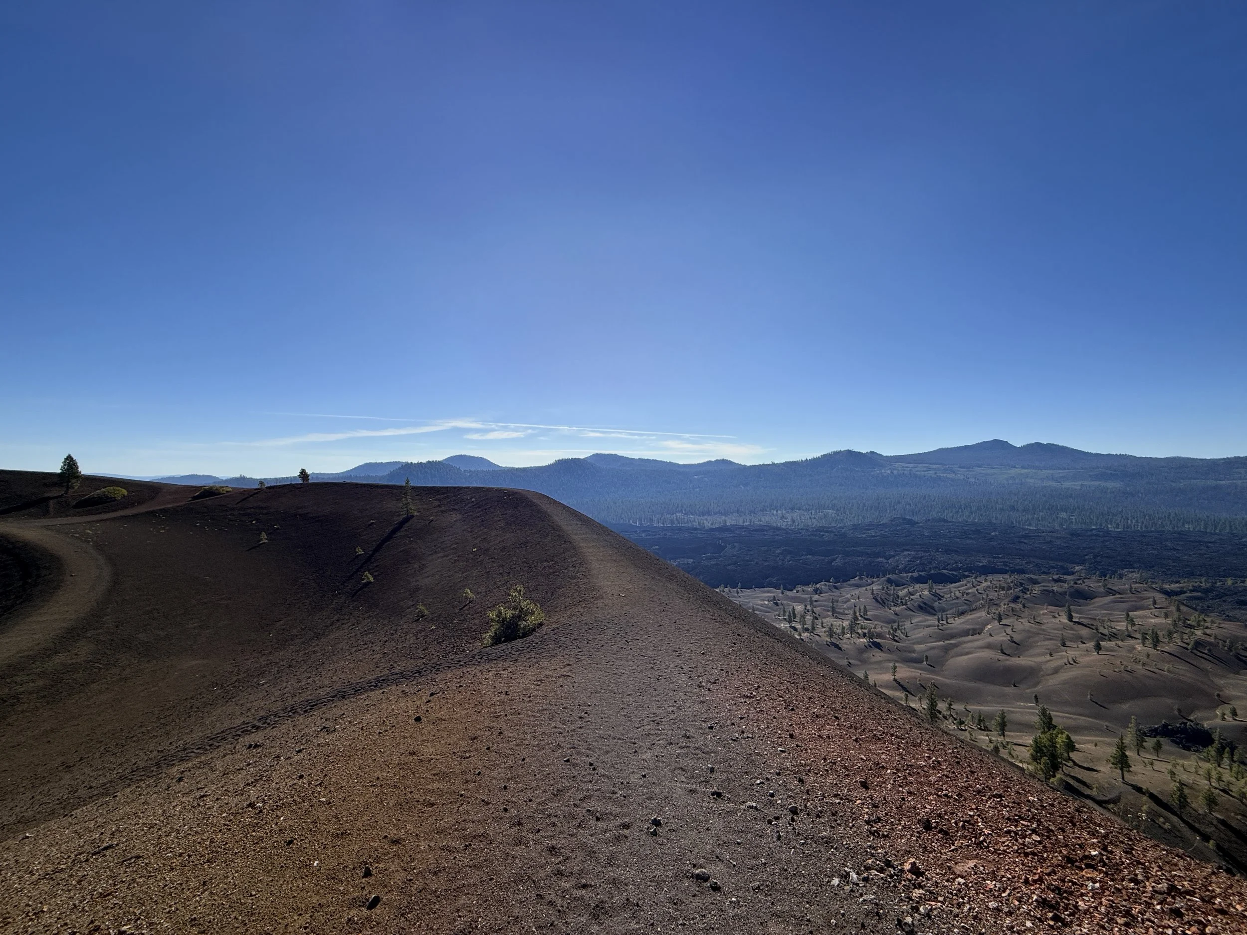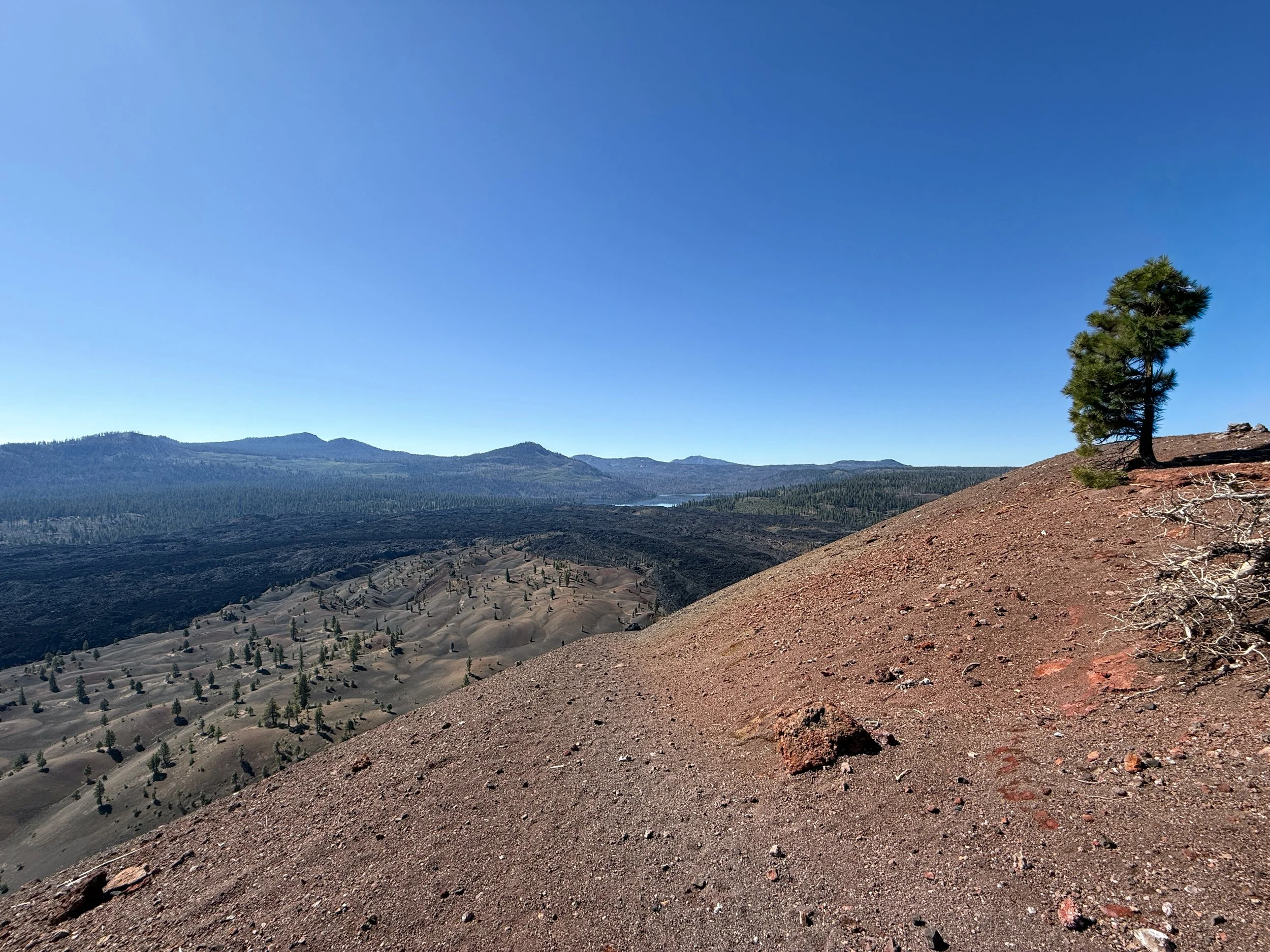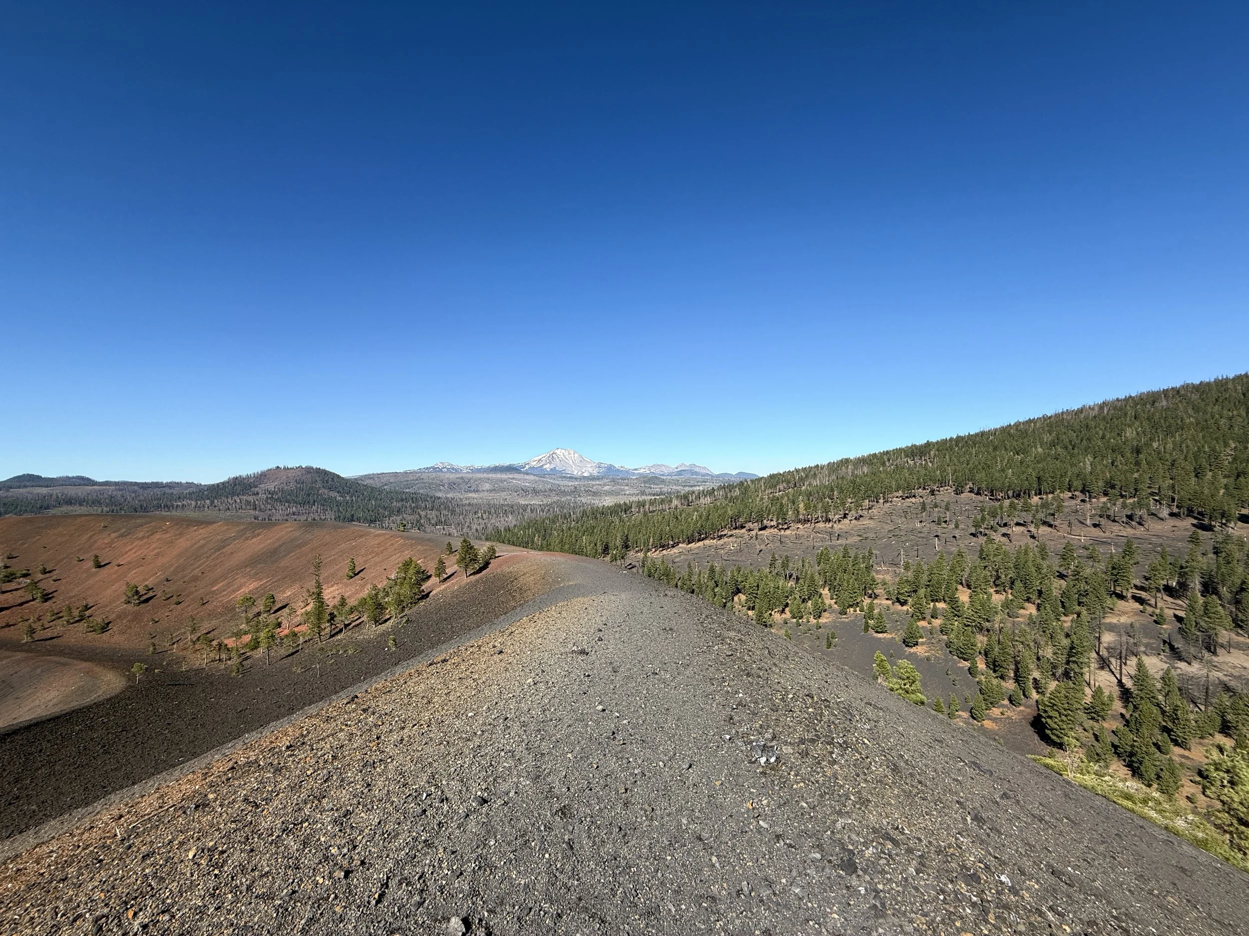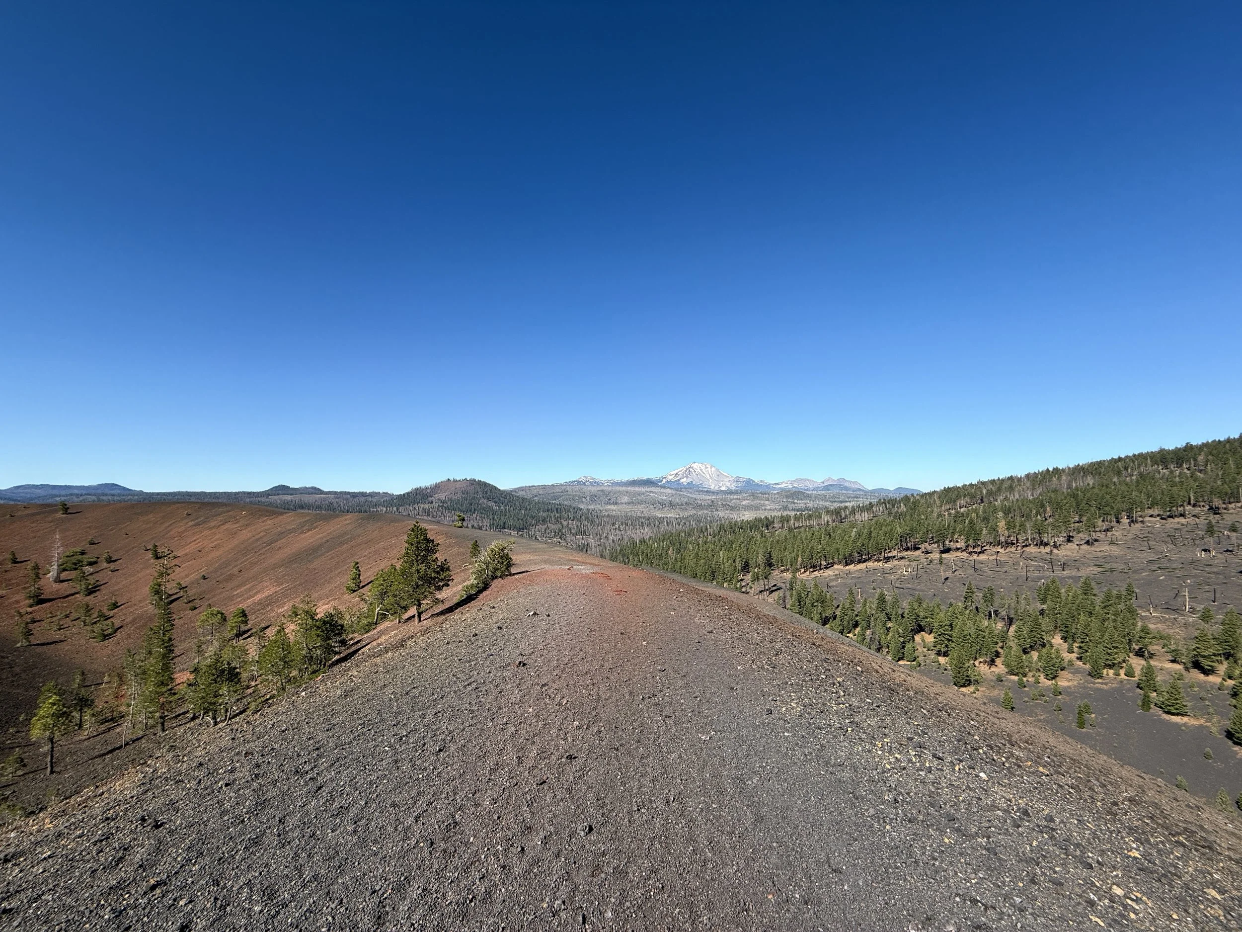 Just before the Cinder Cone, the trees begin to thin considerably, which is why I recommend hiking the trail in a hooded sun shirt, as there’s essentially no shade until the return hike at the very end.