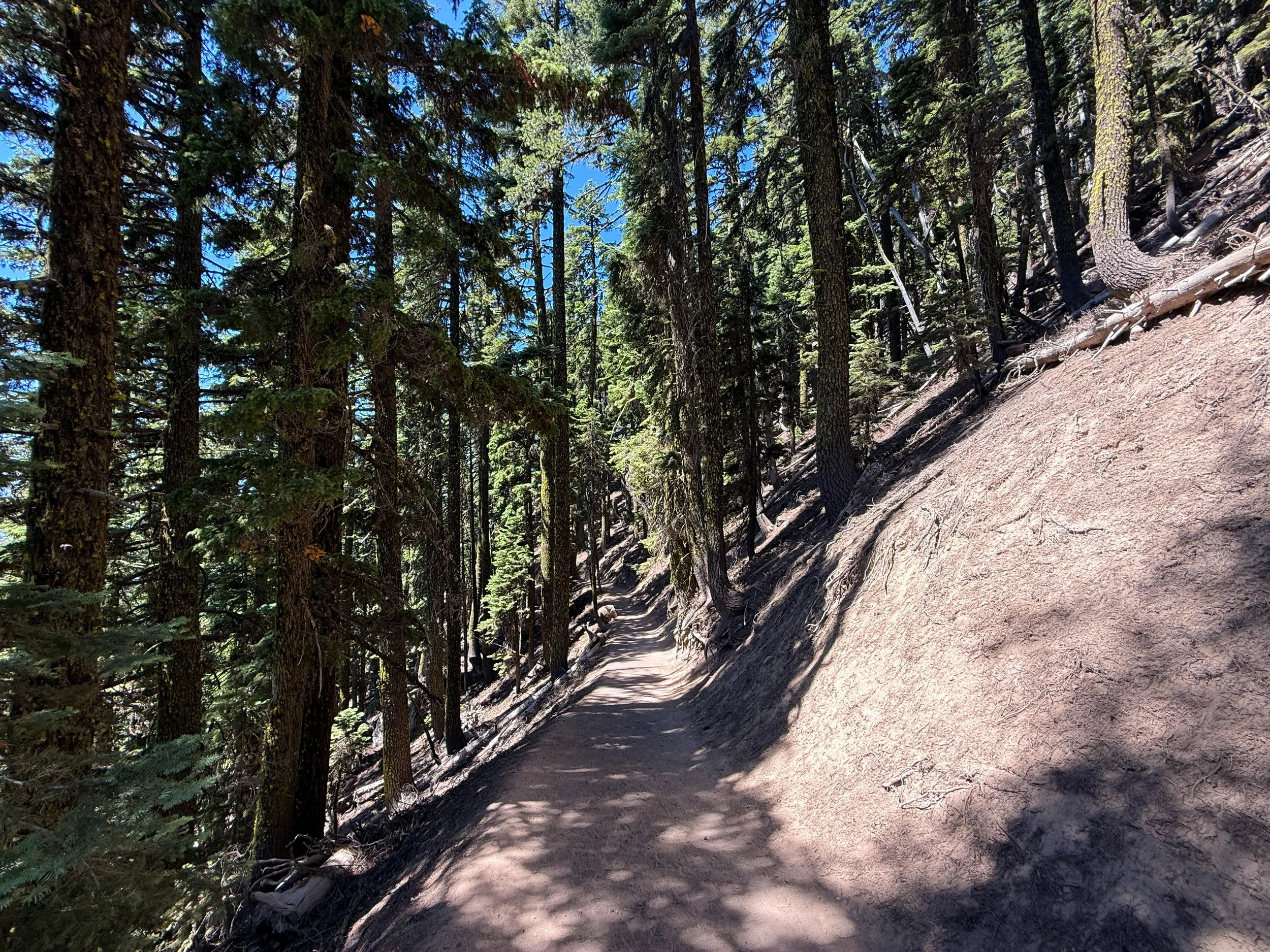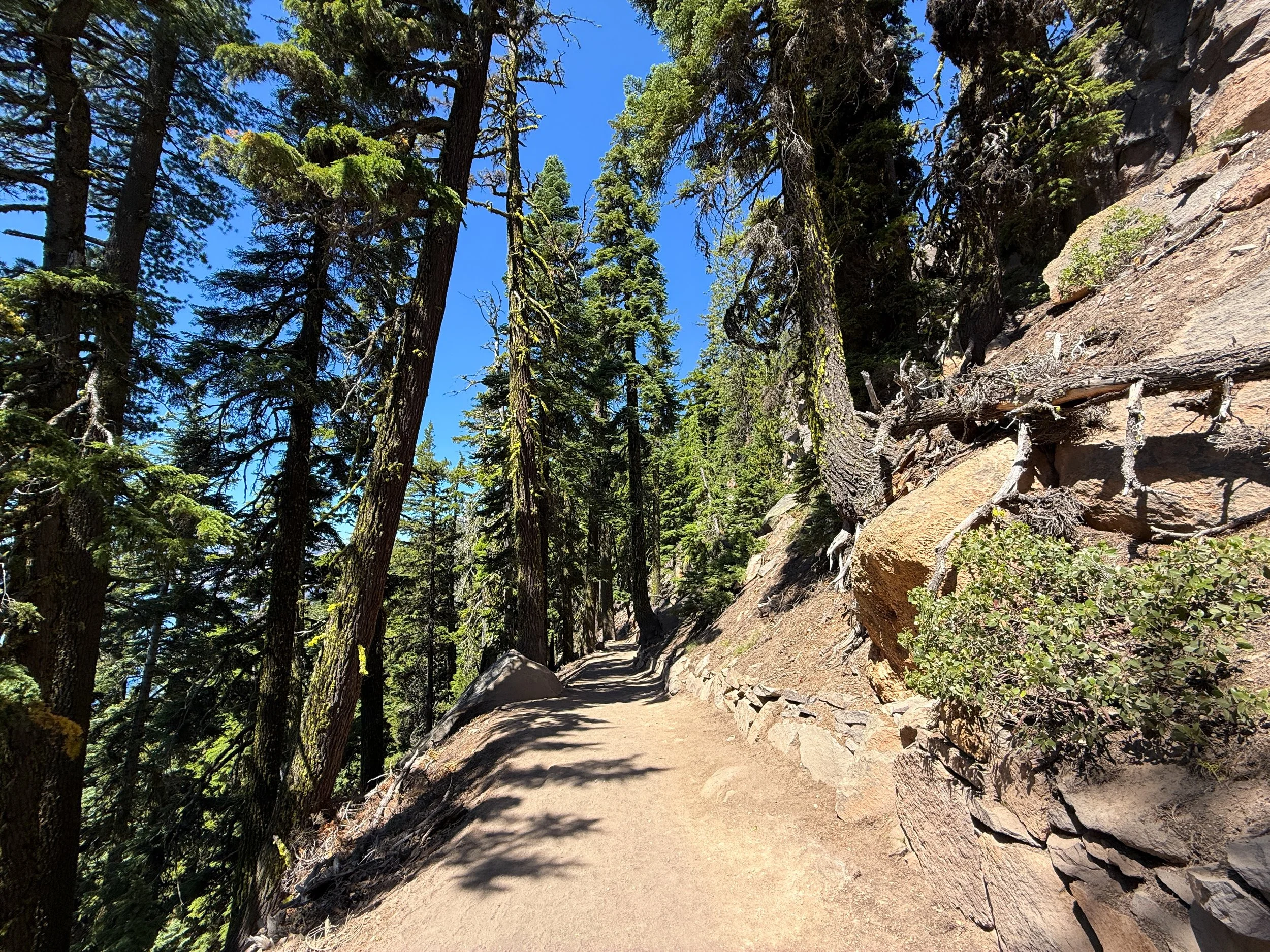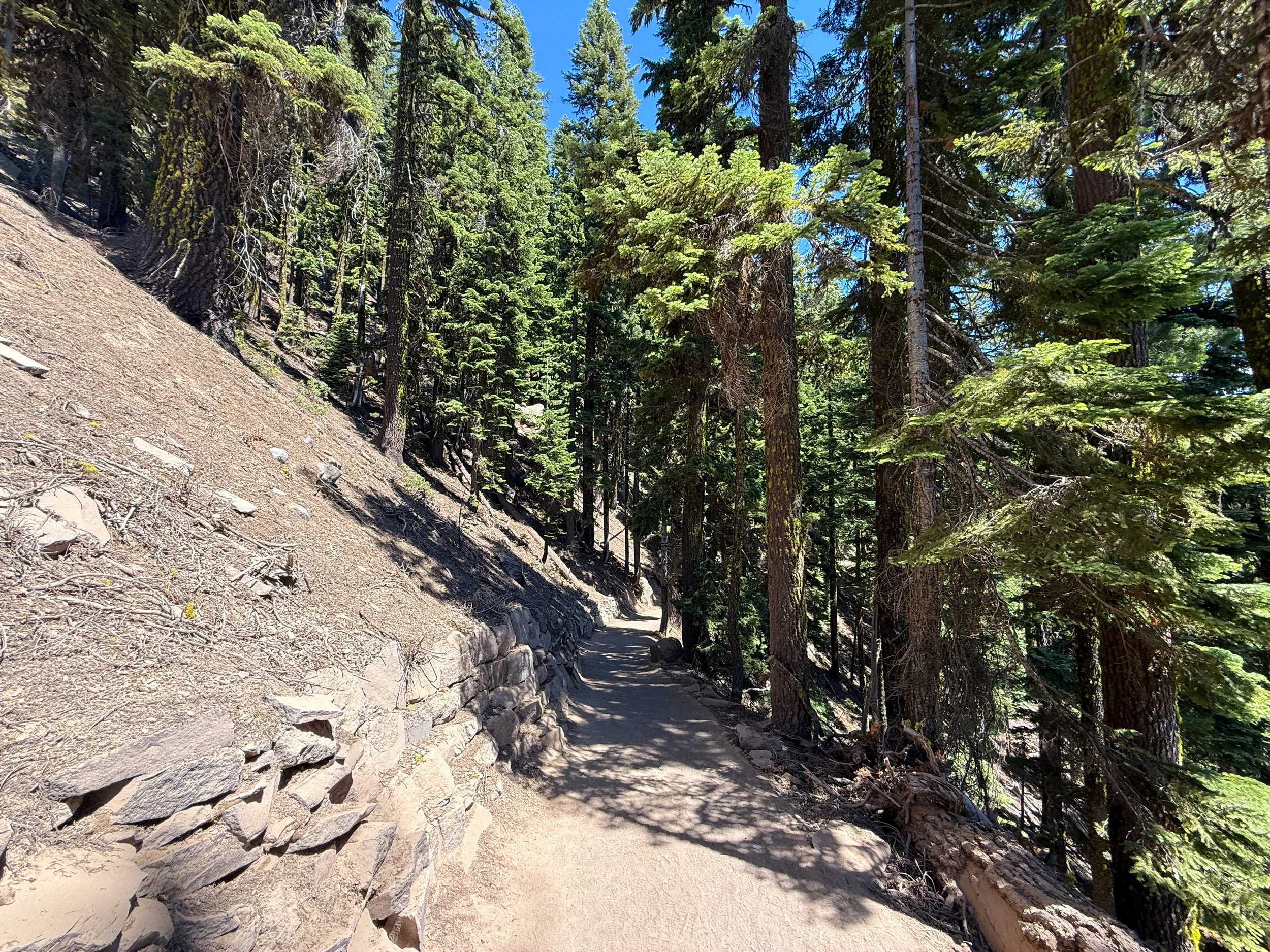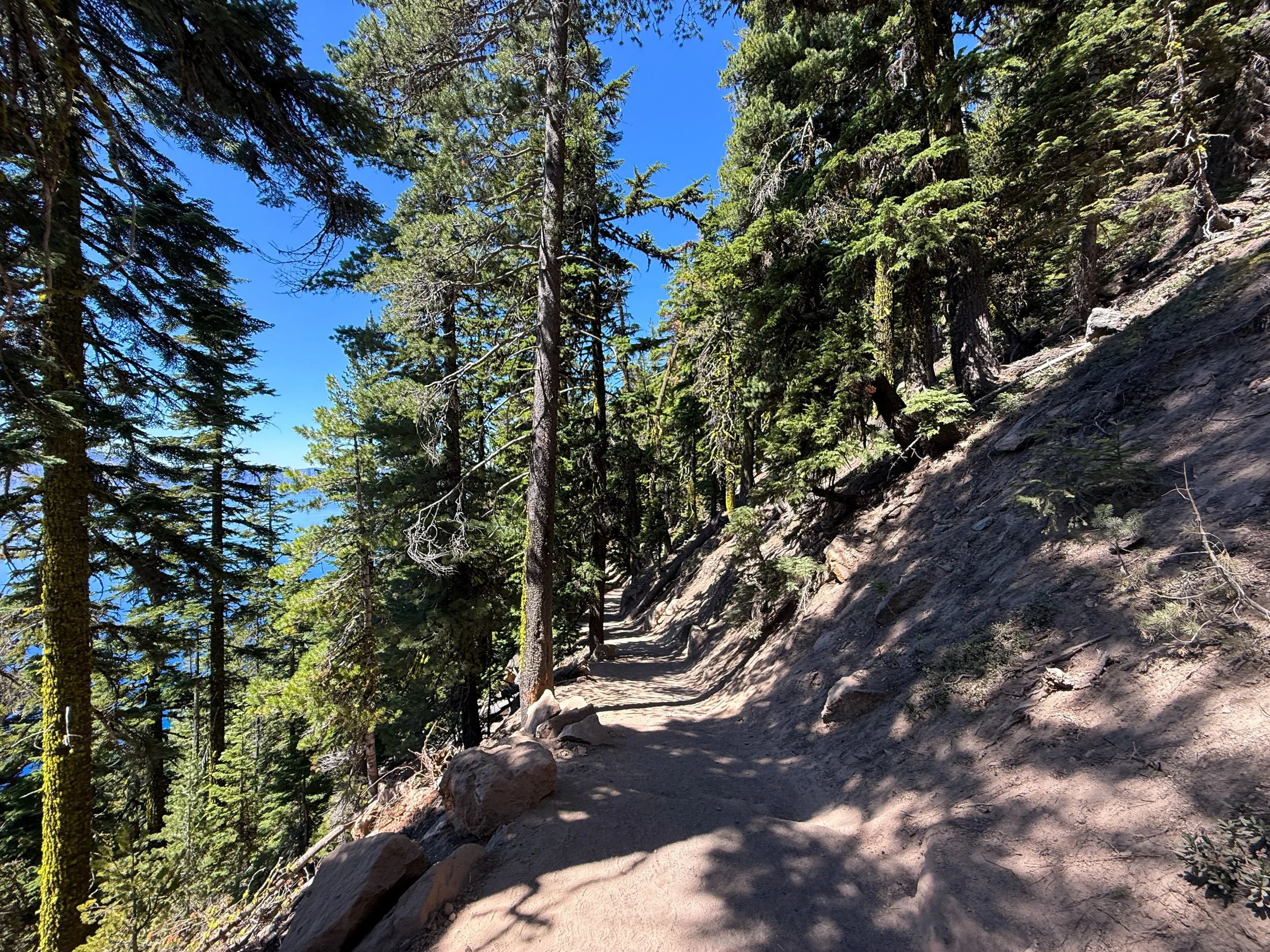 The final stretch down to Crater Lake is the steepest part of the entire Cleetwood Cove Trail.