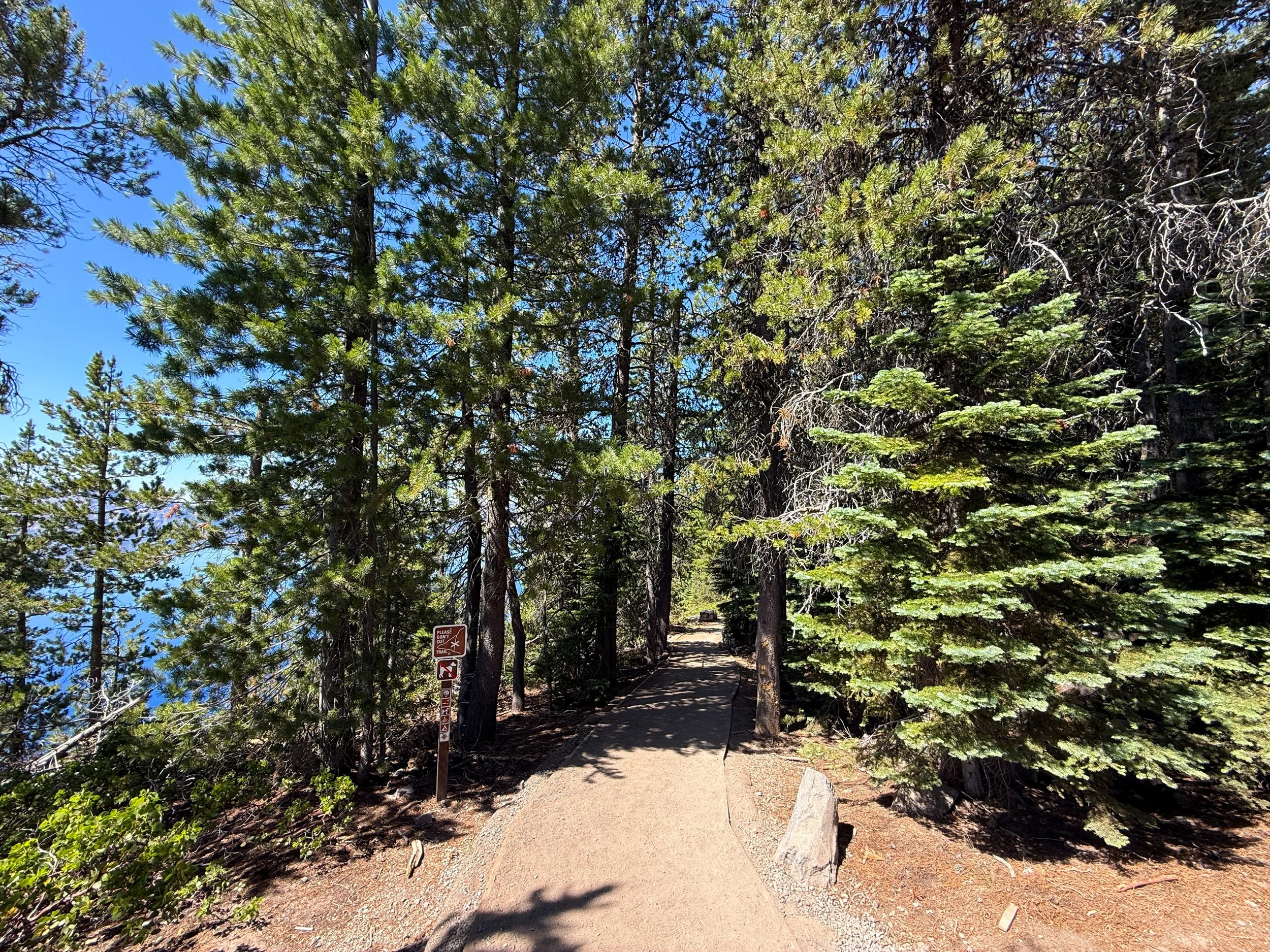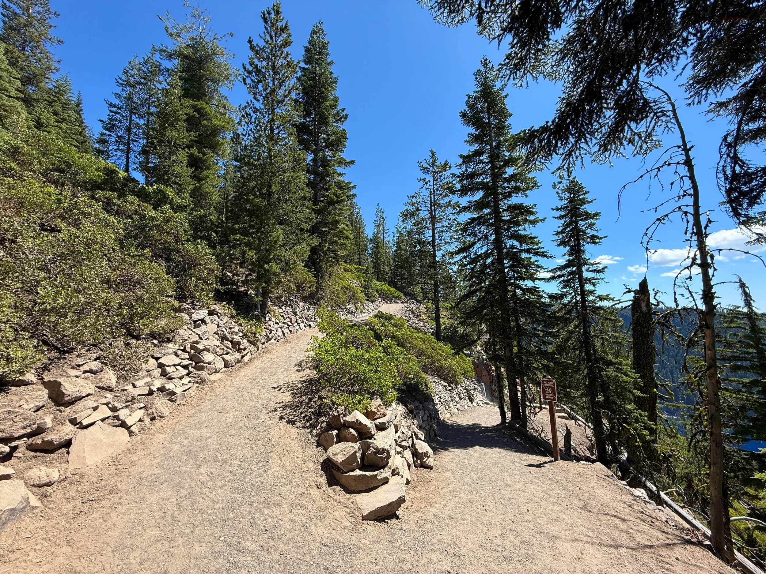 Shortly before the Cleetwood Cove Trail reaches Crater Lake, the trail descends three more shorter switchbacks before reaching the shoreline.