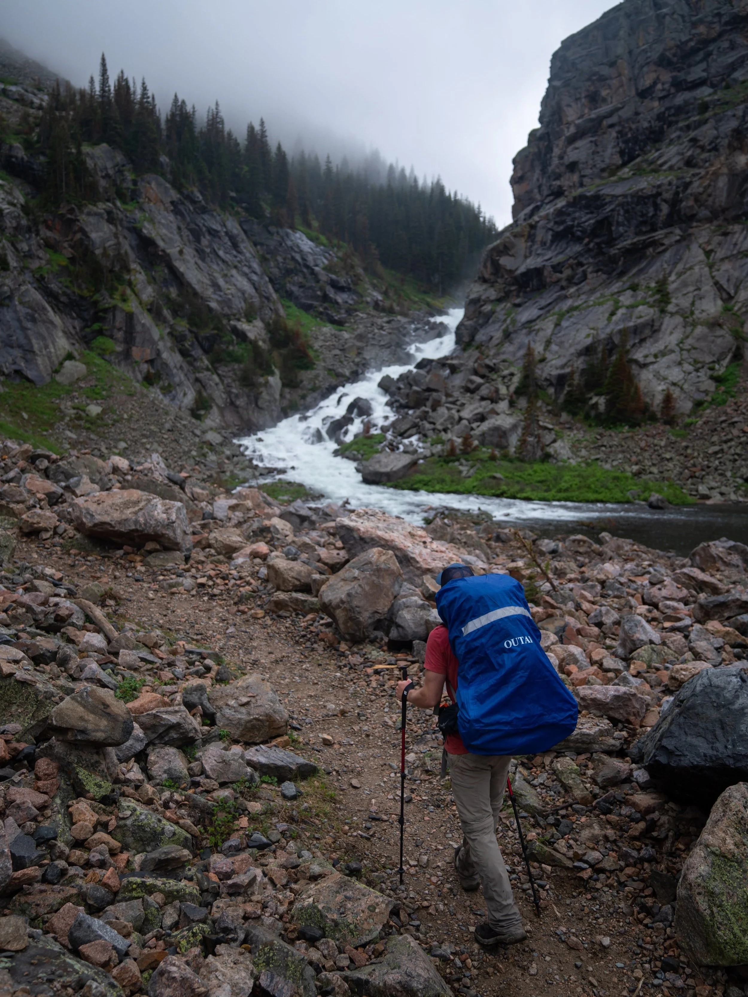By this, I mean that the higher you hike up East Rosebud to Elk Lake and beyond, the more the canyon you’re in narrows until you’re surrounded by towering granite walls on both sides!