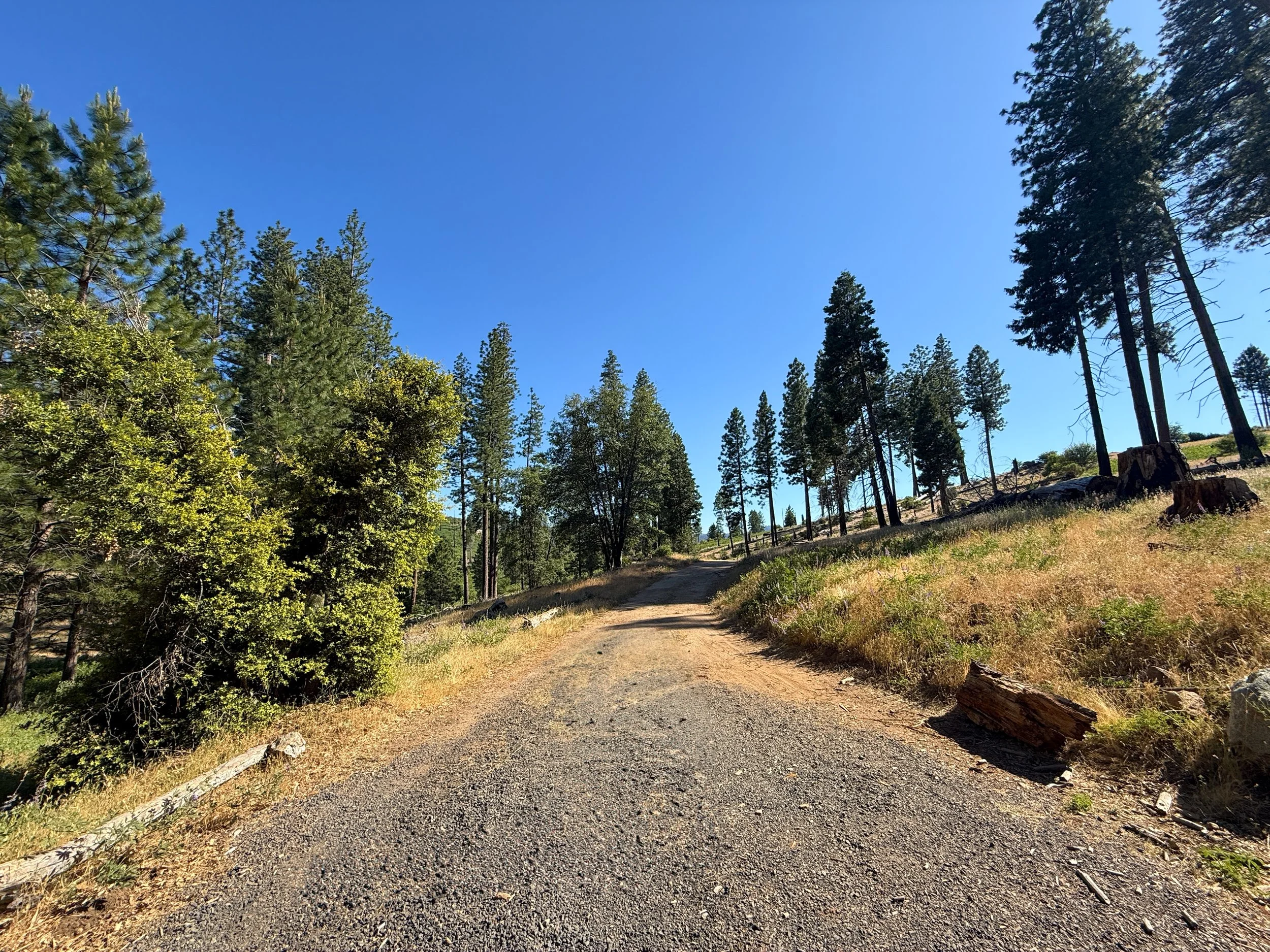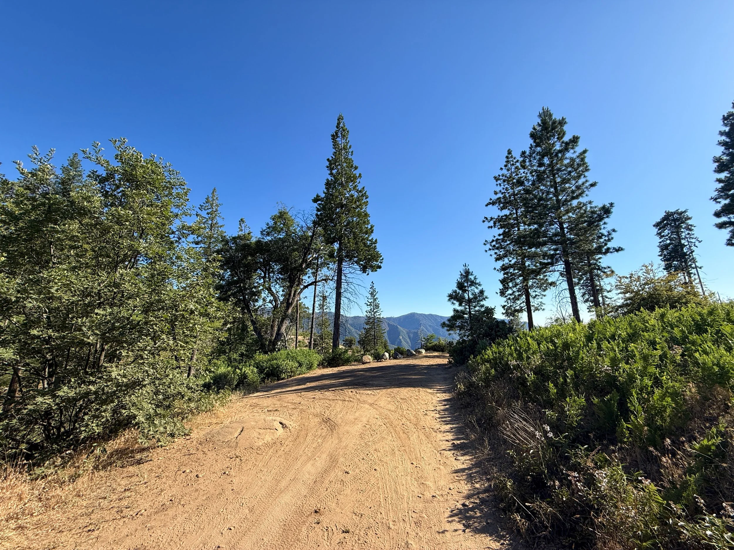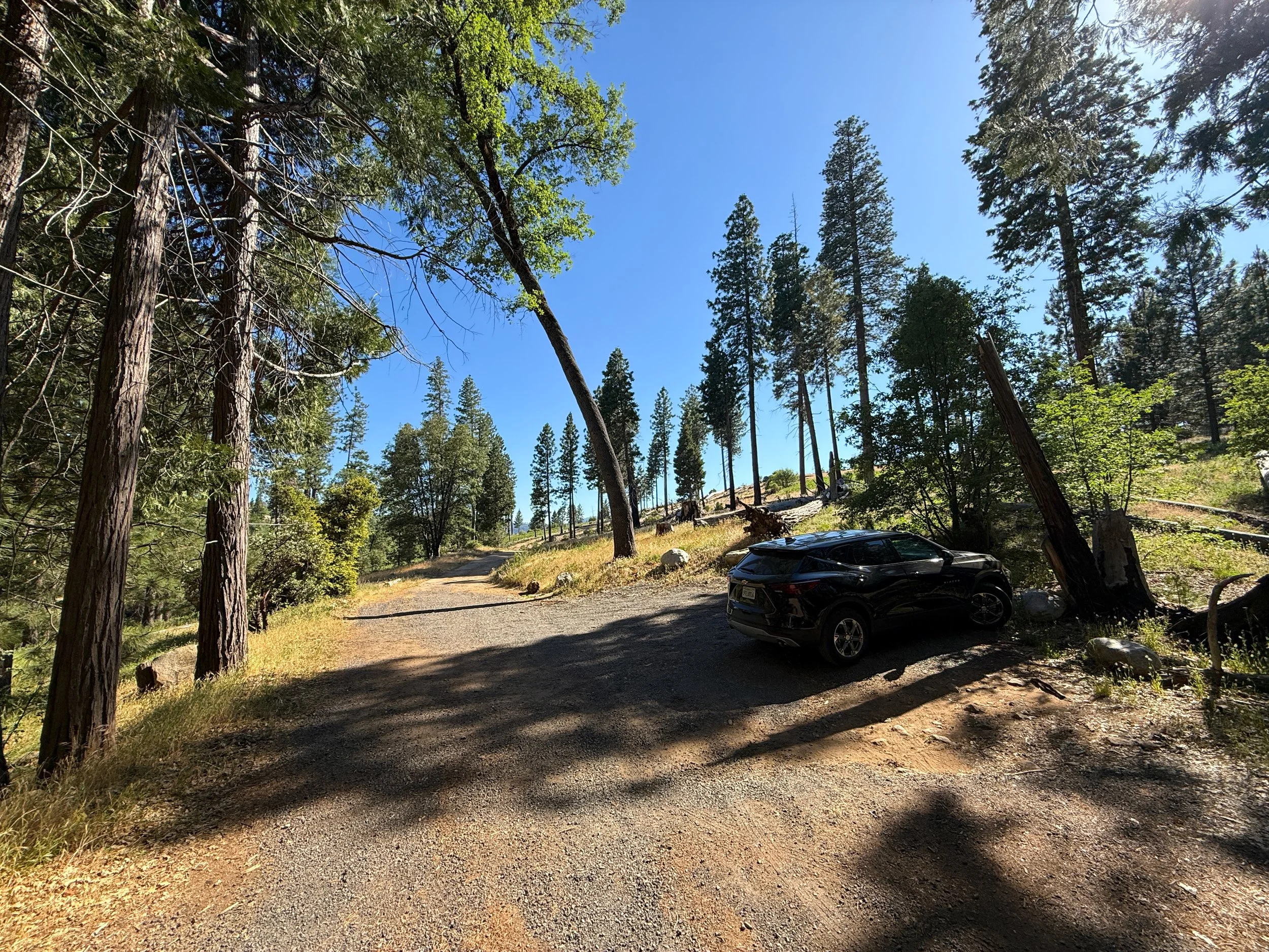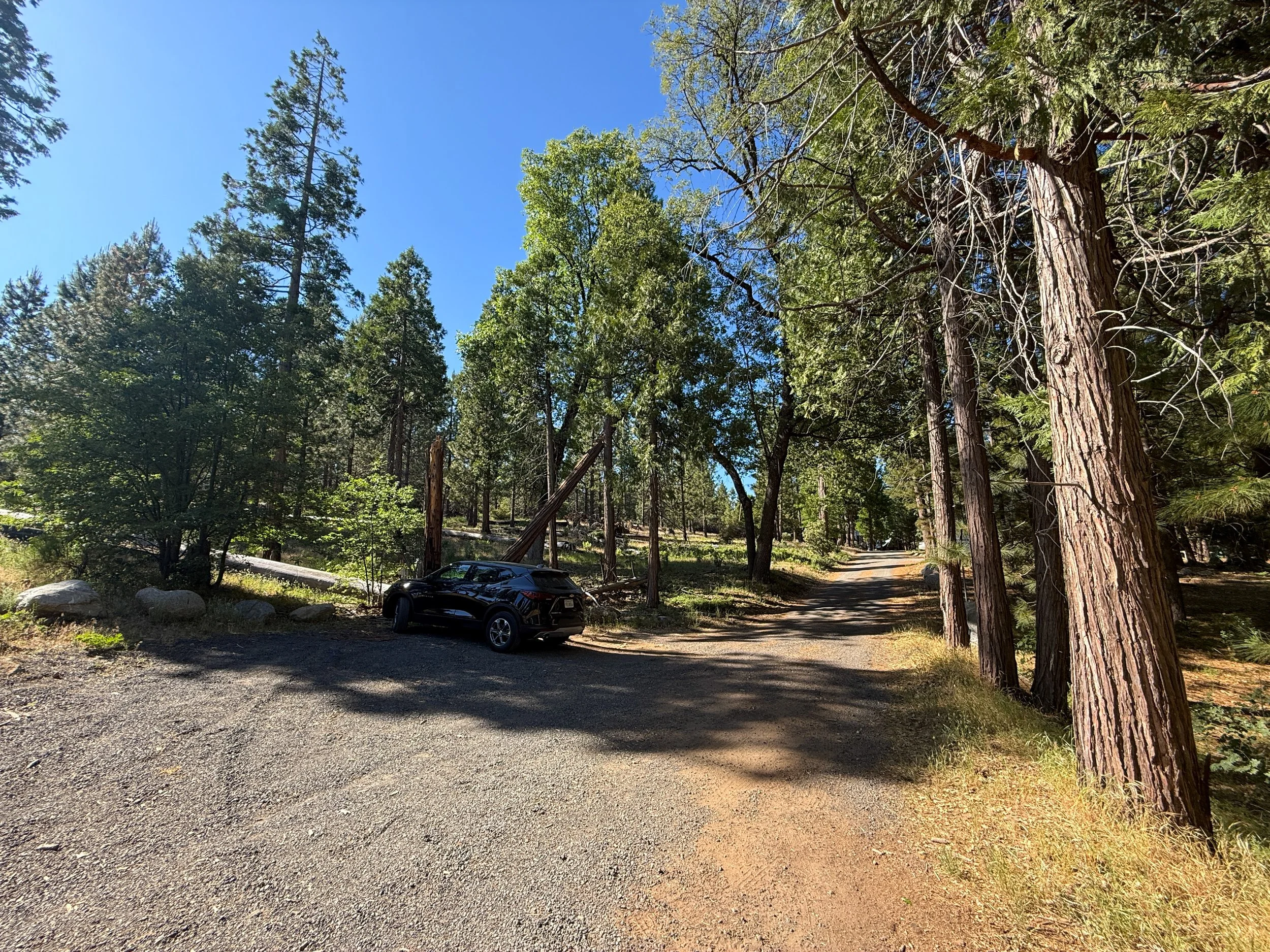 Parking for the Foresta Falls Trail is located directly alongside Foresta Road, where the gravel road starts to leave the private community.