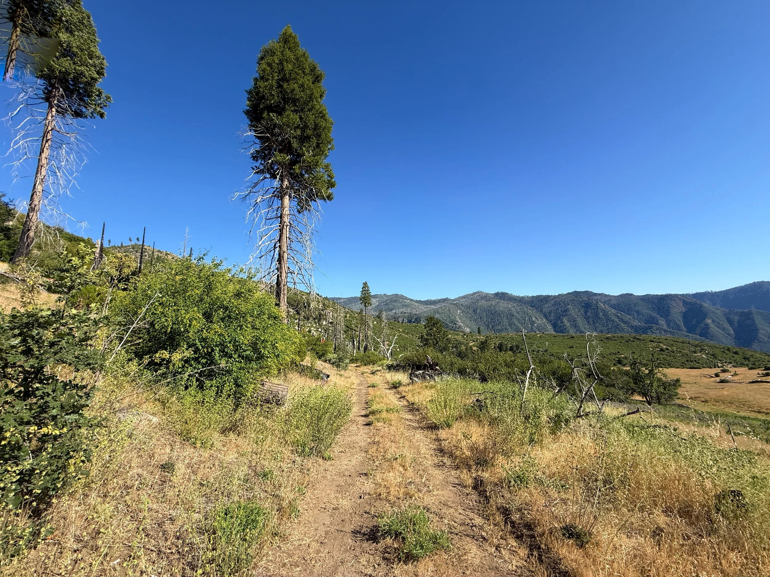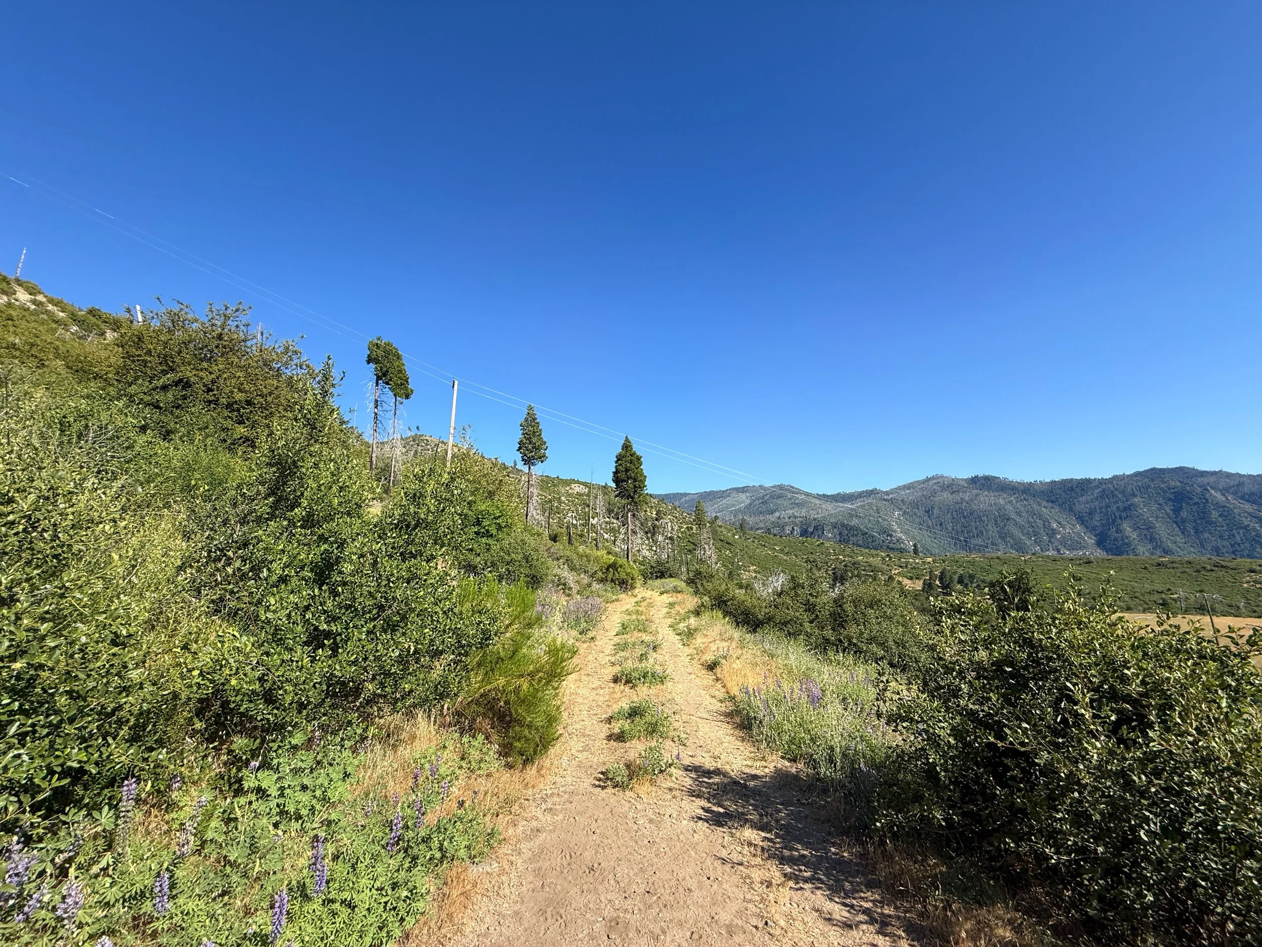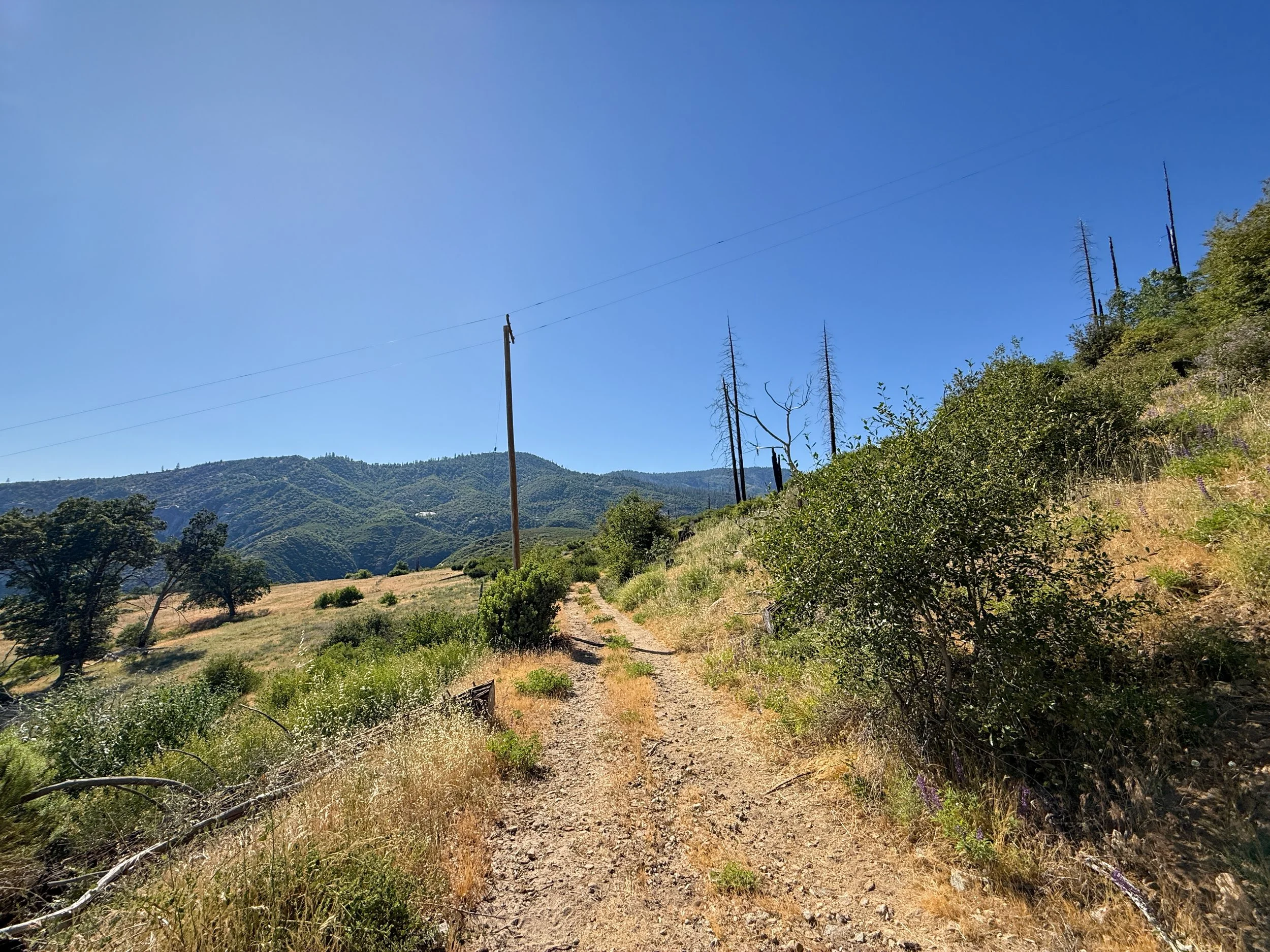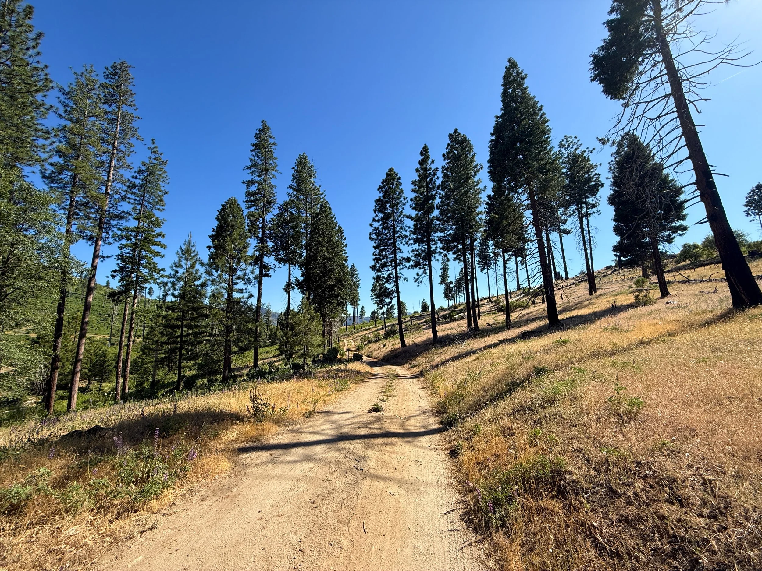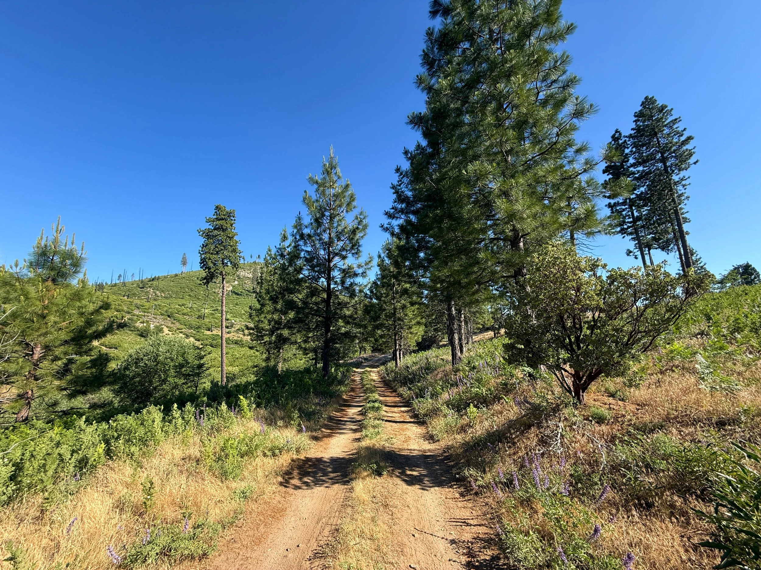 Parking for the Foresta Falls Trail is located directly alongside Foresta Road, where the gravel road starts to leave the private community.