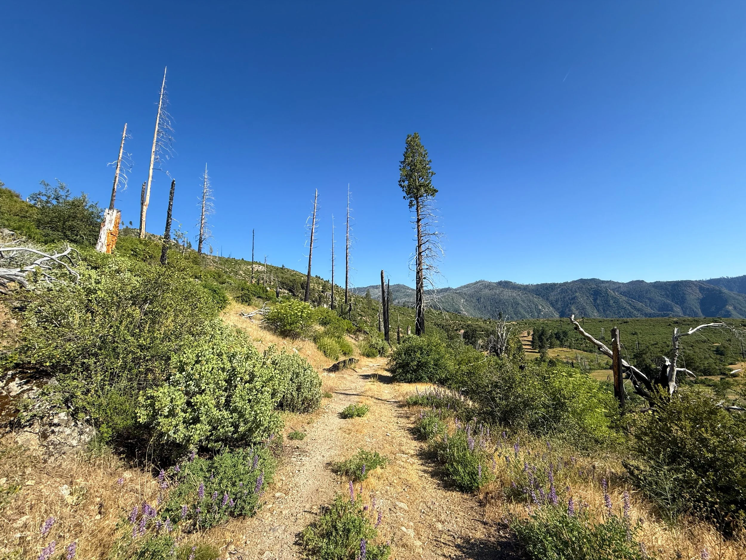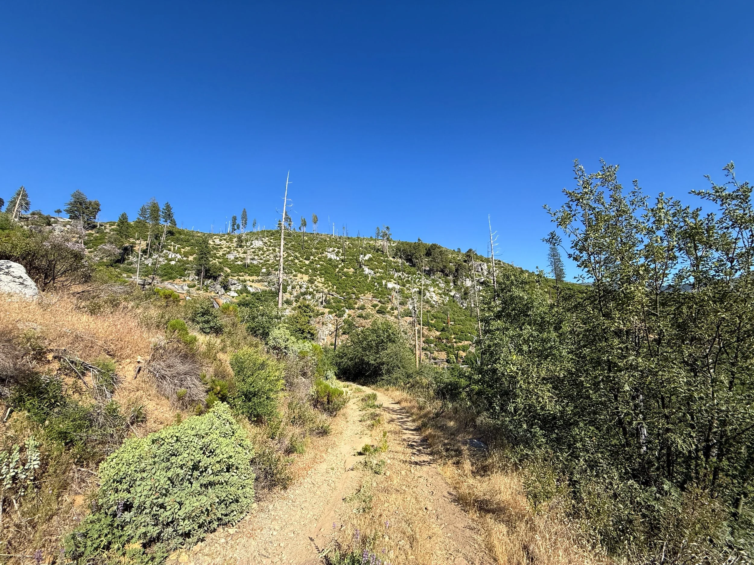 When the Foresta Road turns away from Crane Creek, the trail begins to drop down to a single switchback in the road before turning back toward the waterfall.