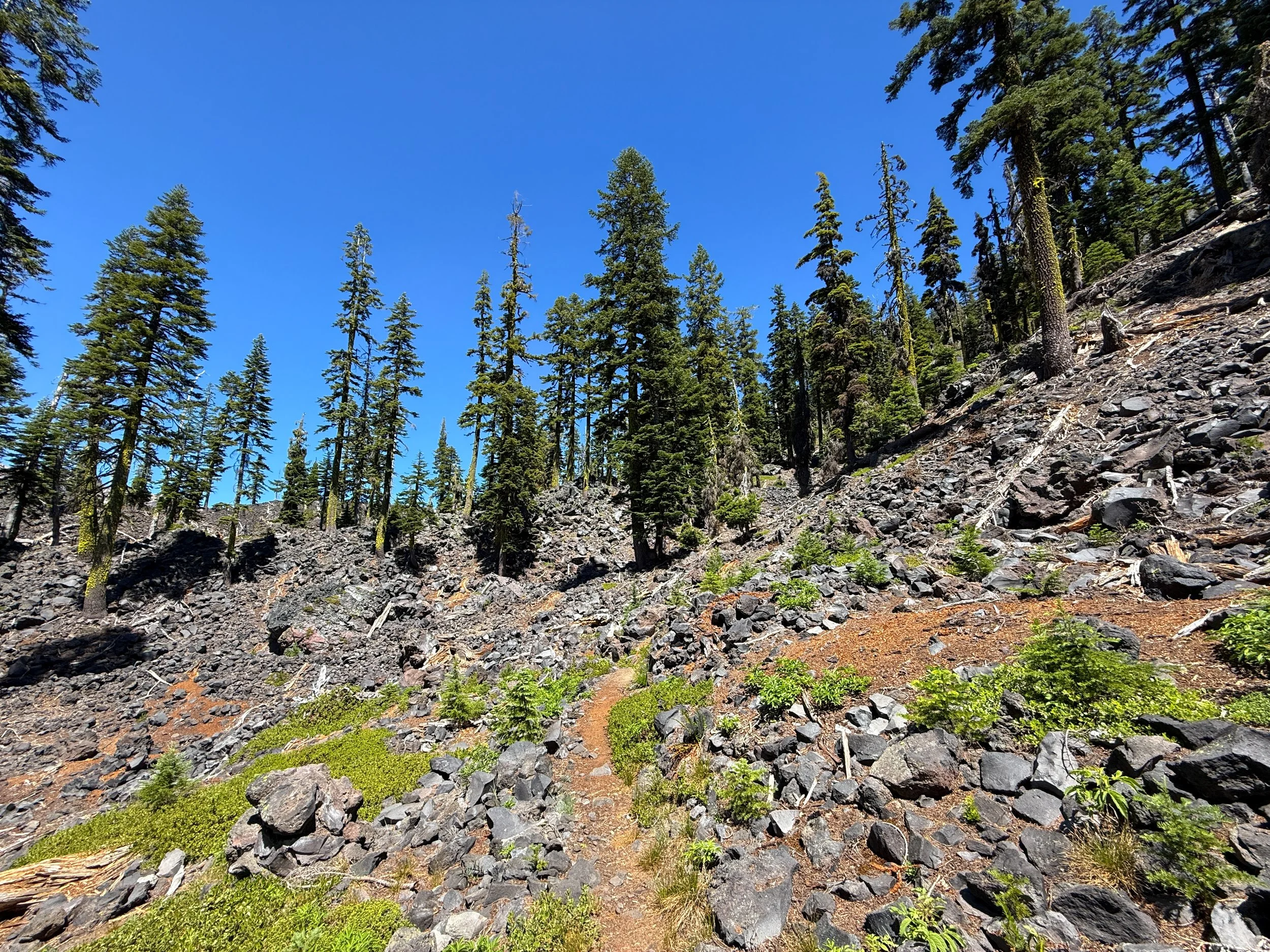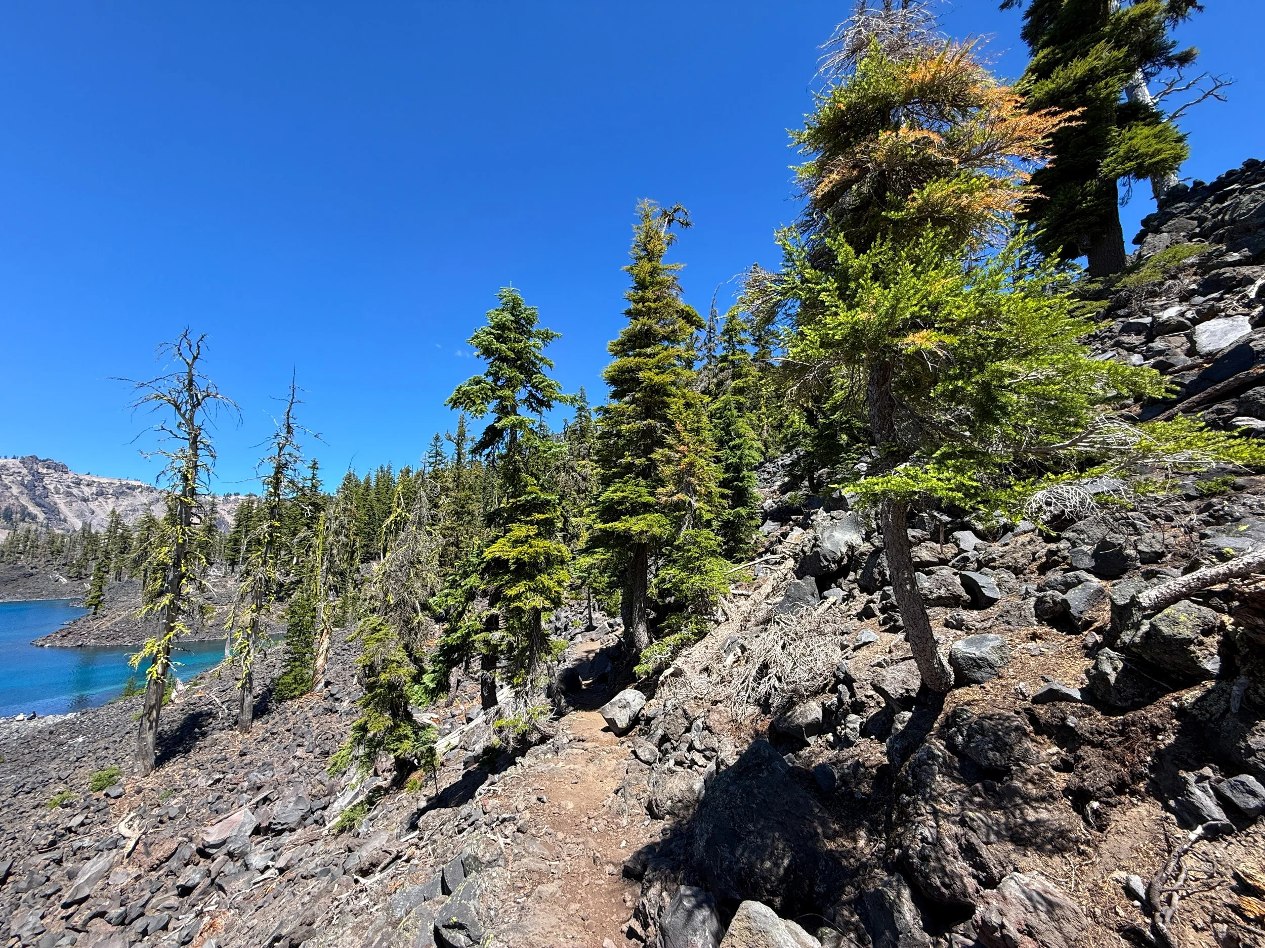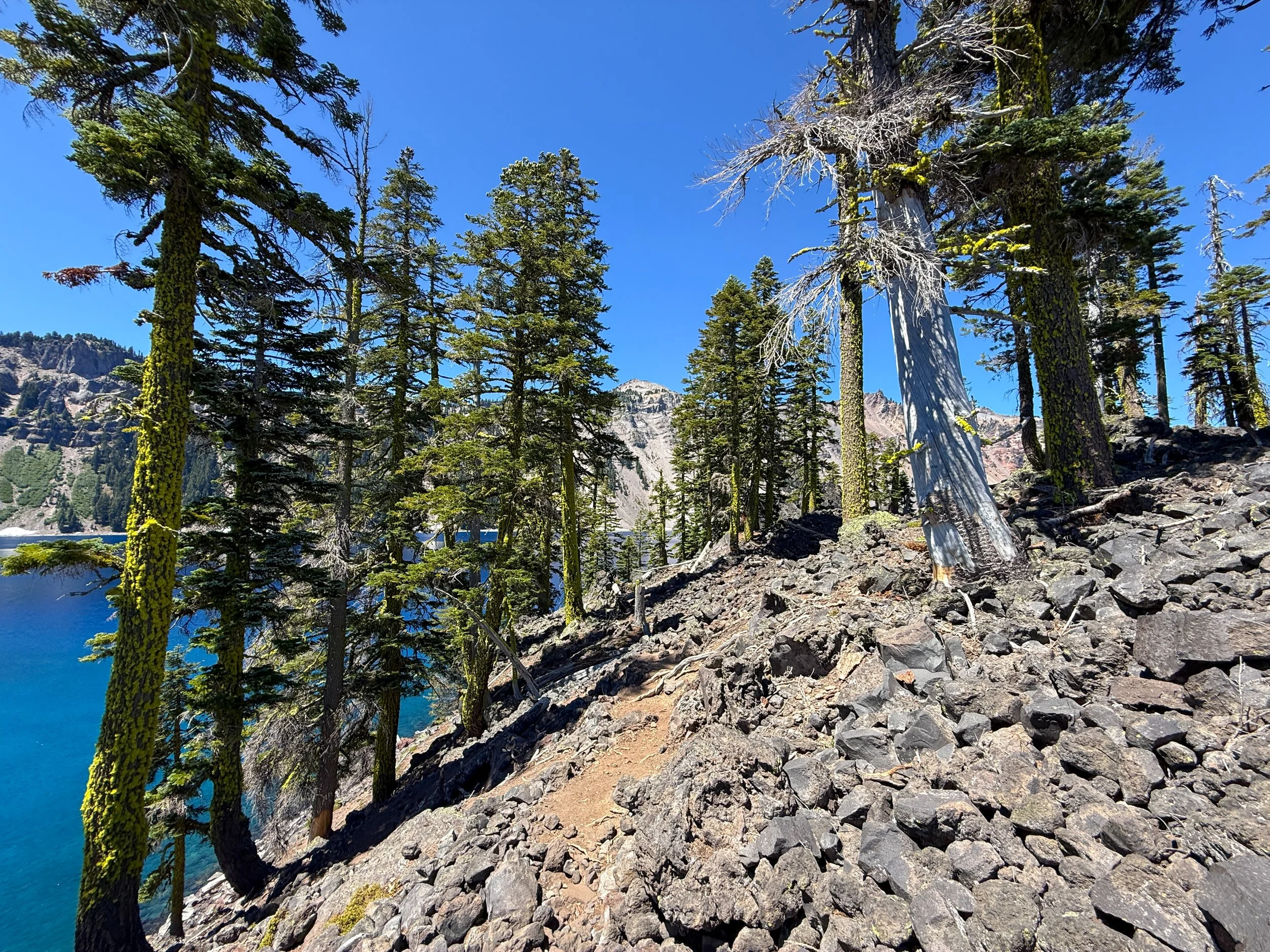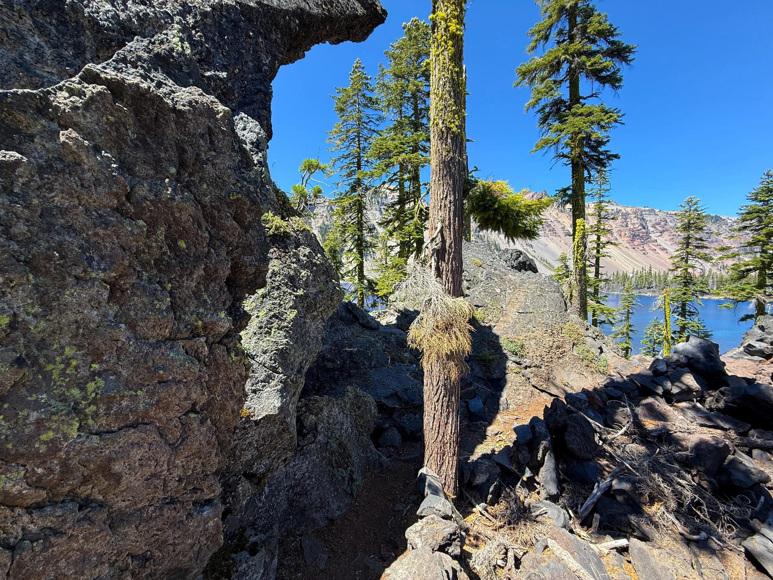 I mention this because the same cannot be said about the Wizard Island Summit Trail, which climbs above all this loose volcanic rock on the switchbacks to the summit.