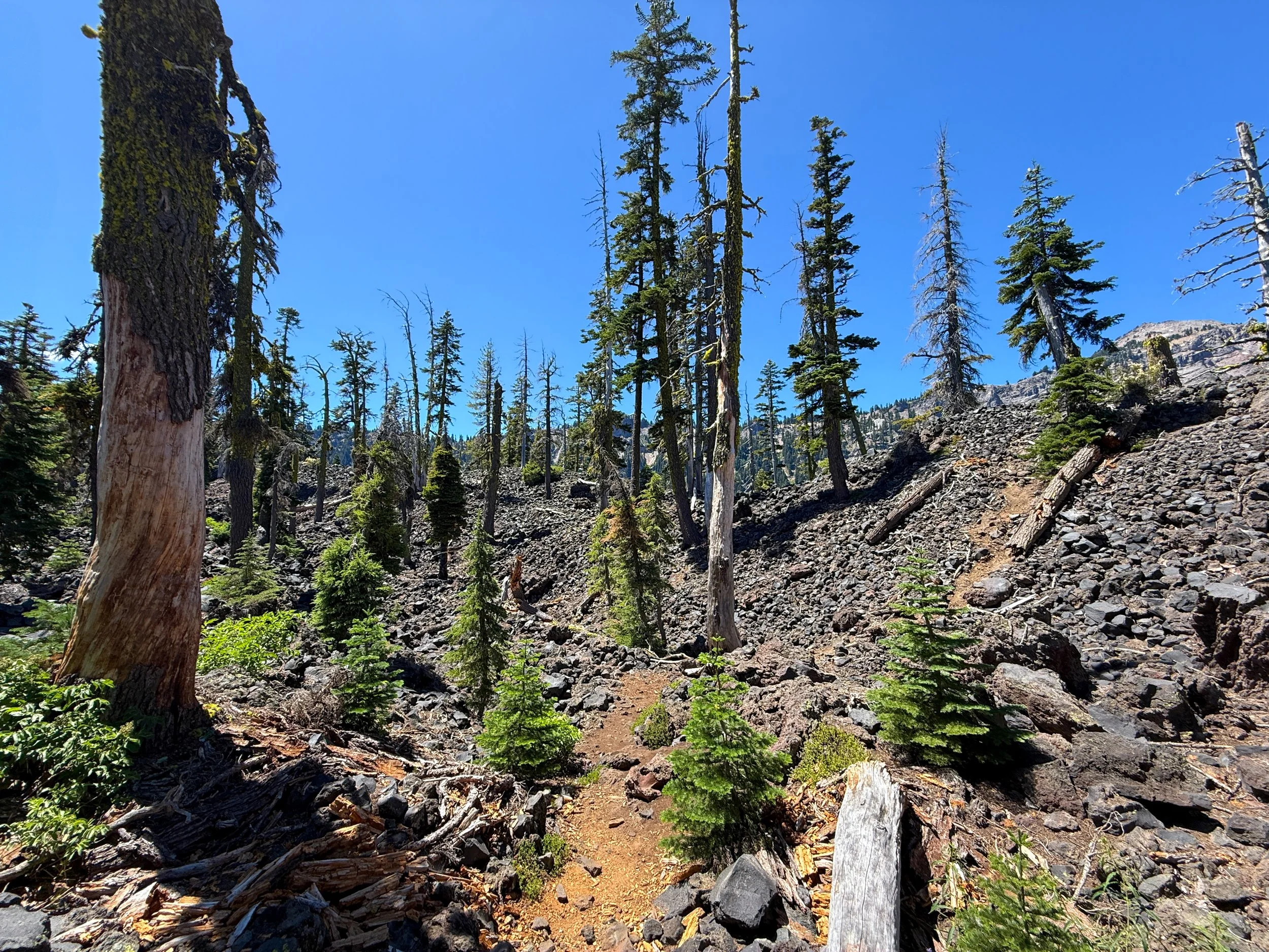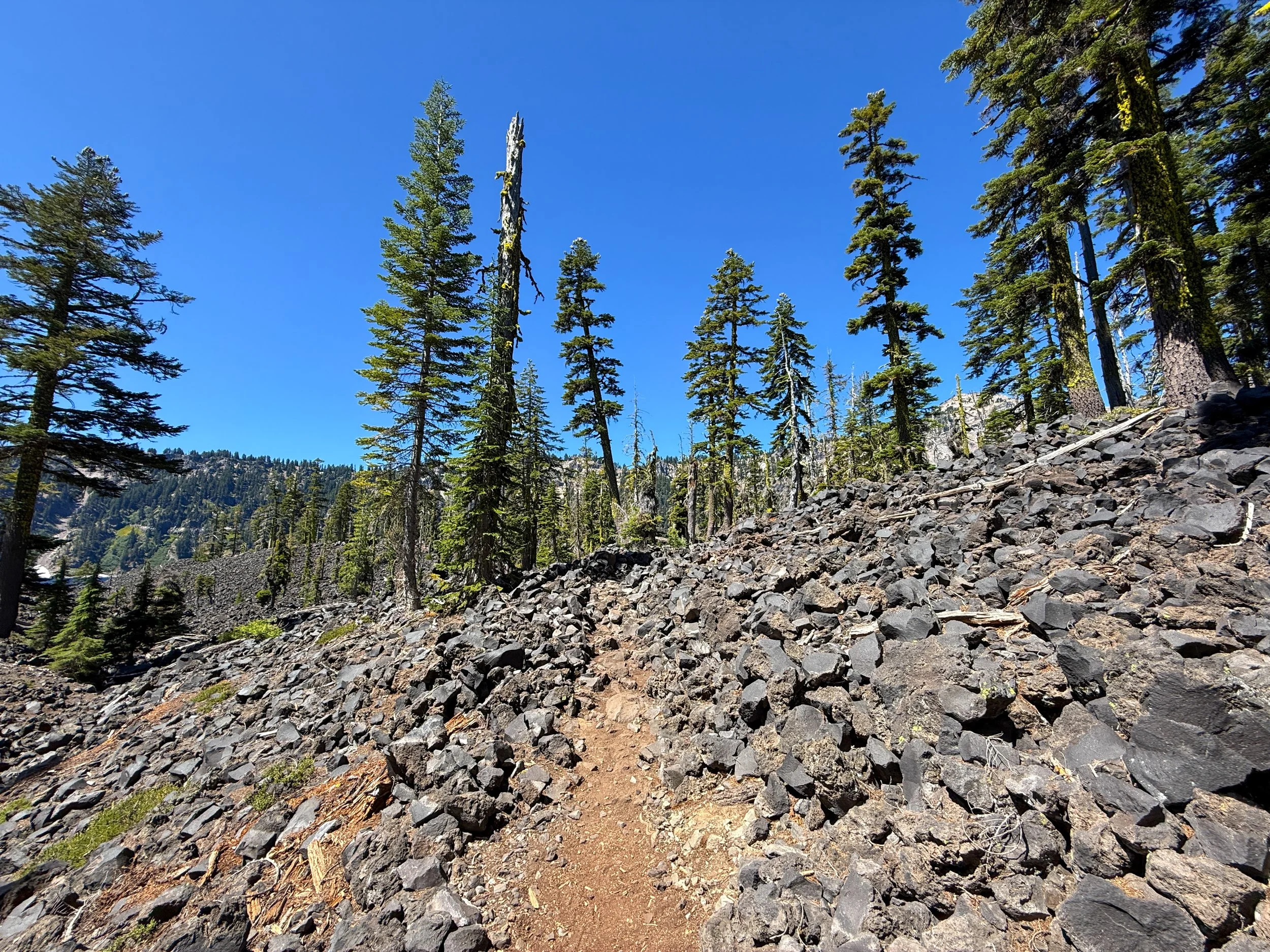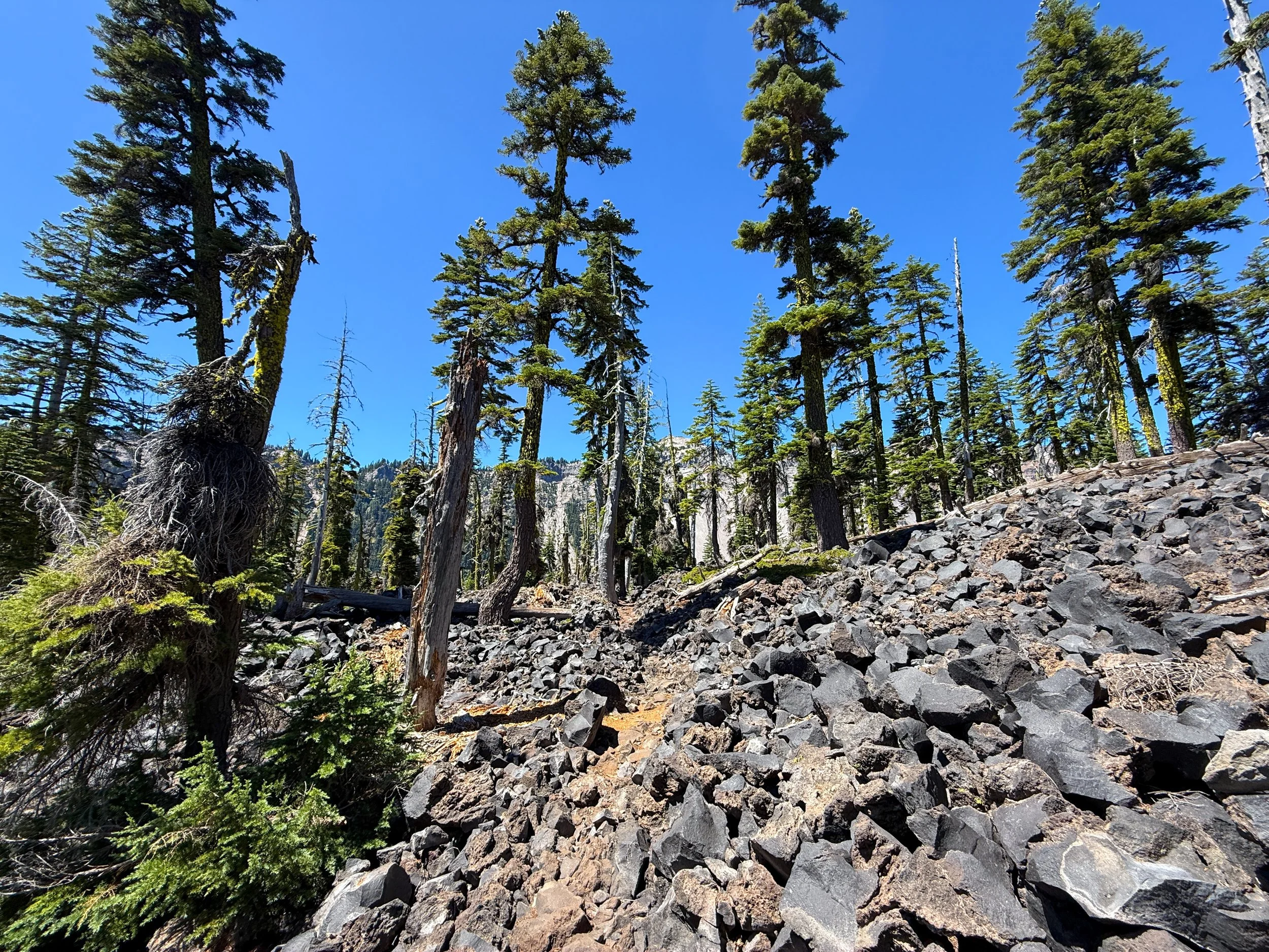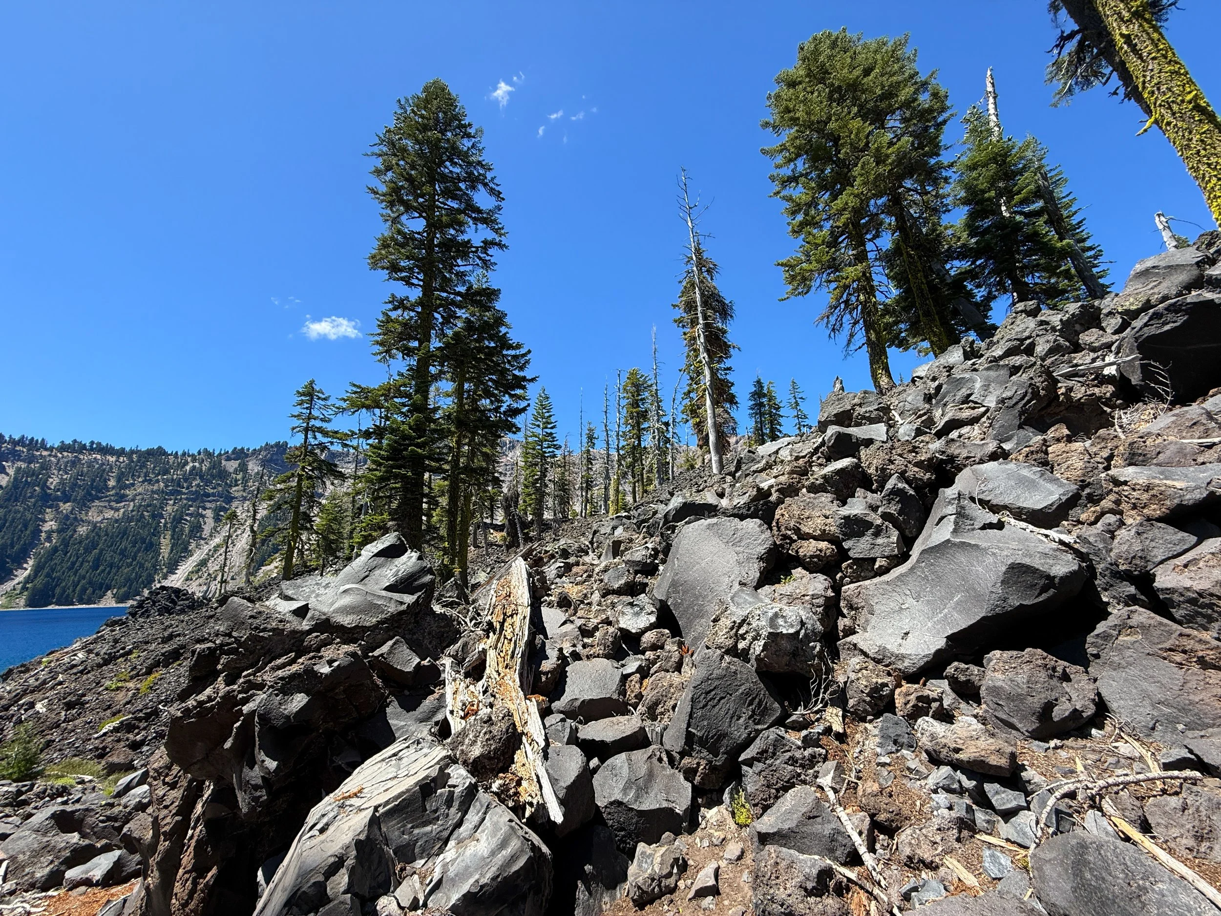 I mention this because the same cannot be said about the Wizard Island Summit Trail, which climbs above all this loose volcanic rock on the switchbacks to the summit.