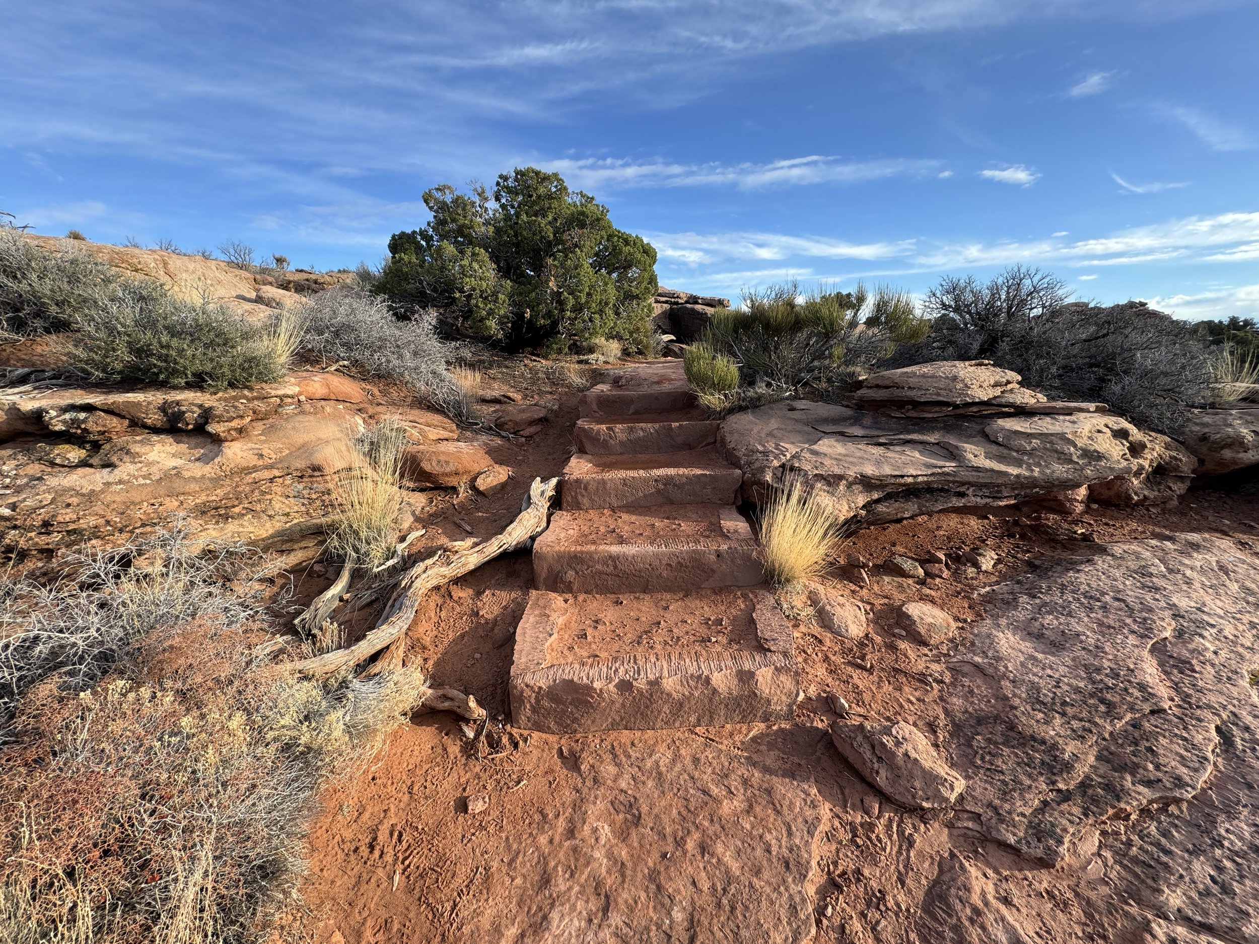 That being said, the exposure off the side of the trail is one of the most extreme of any trail in Canyonlands National Park, which I mention for the sake of hiking with young kids.
