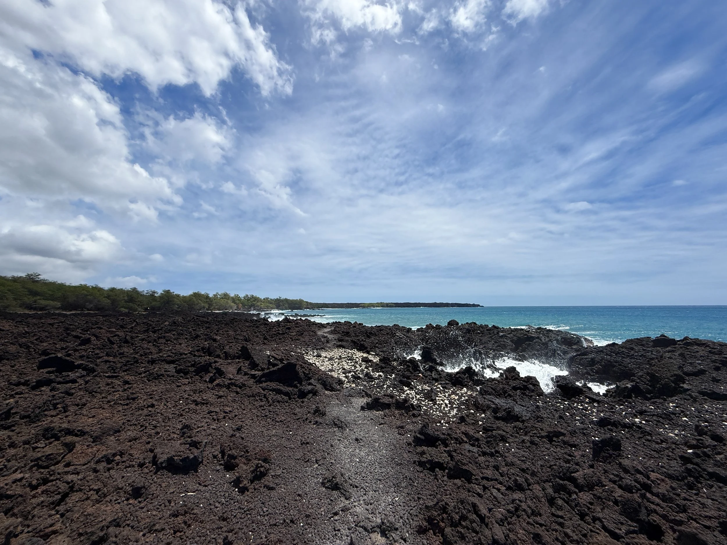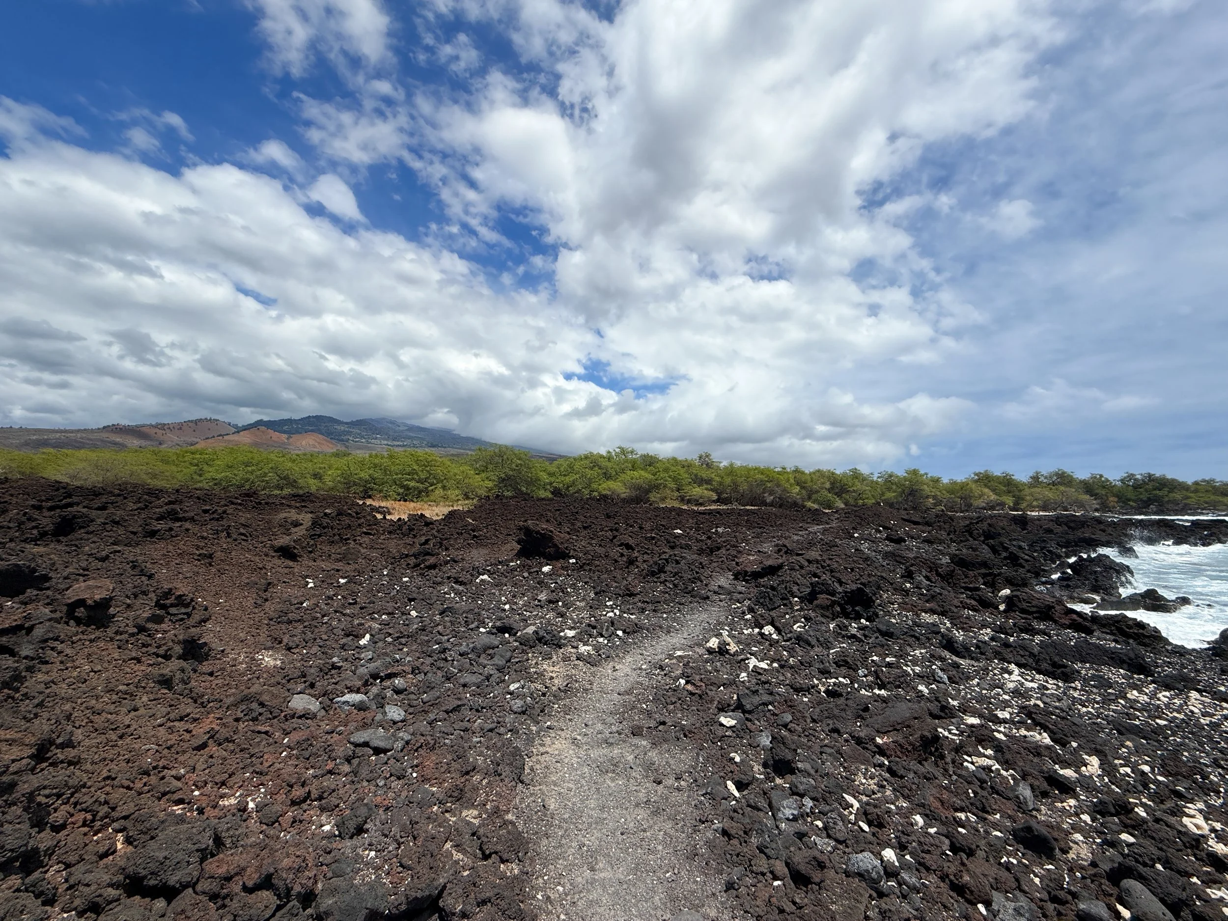 At the beginning of the Waiakapuhi Lava Field, the Hanamanioa Point Light Trail and the Hoapili Trail parallel one another until they reach a short connector between the two, about 0.2 miles (0.3 km) away.