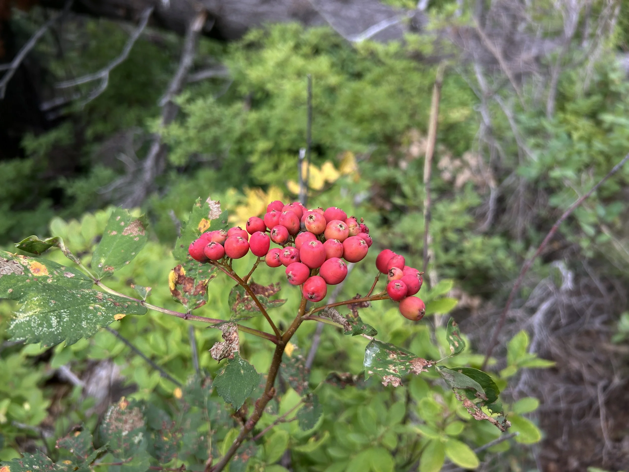You may notice these red American Mountain-ash berries along the trail, and while they are considered edible, I have read that they are not very good to eat raw.