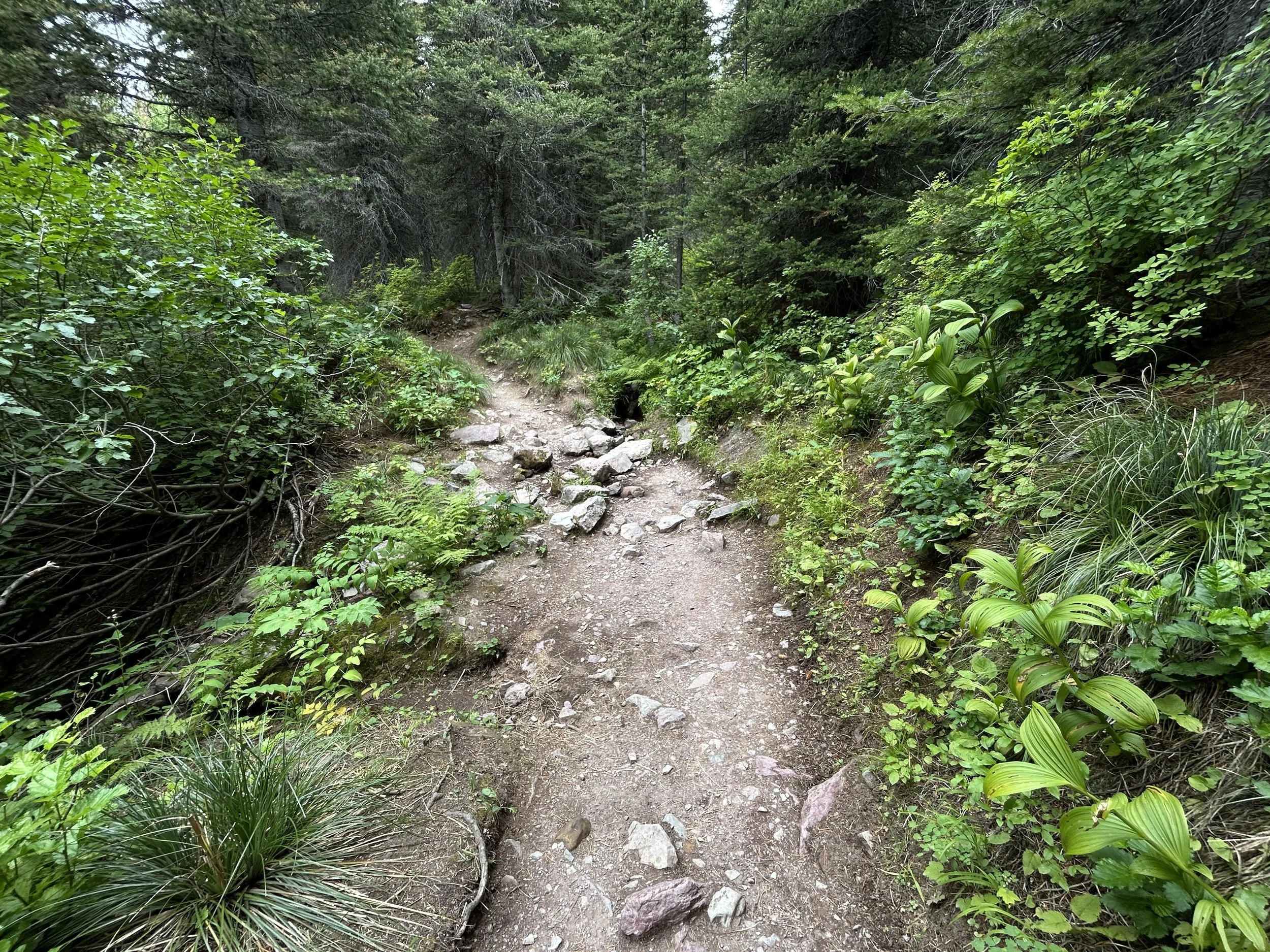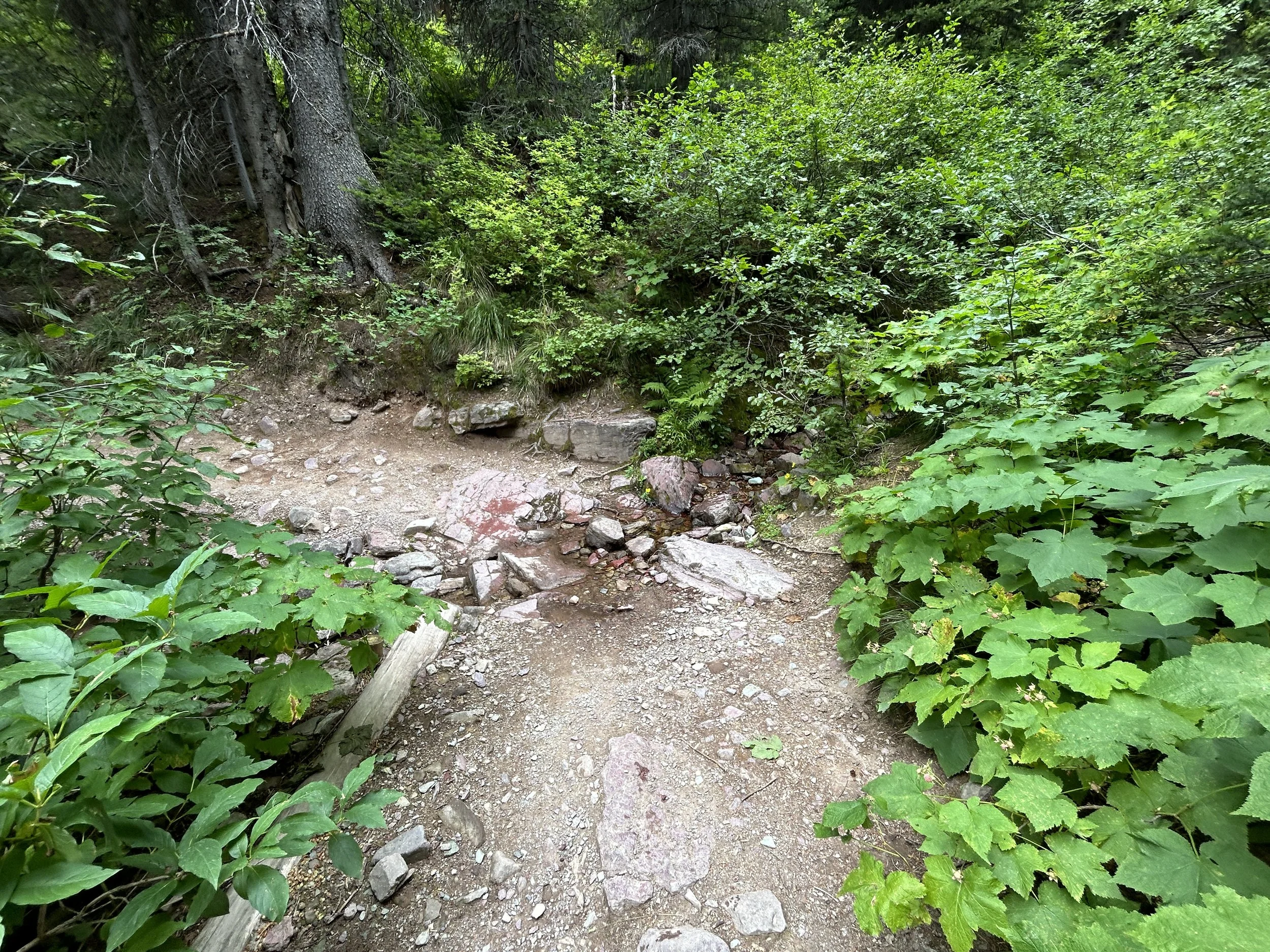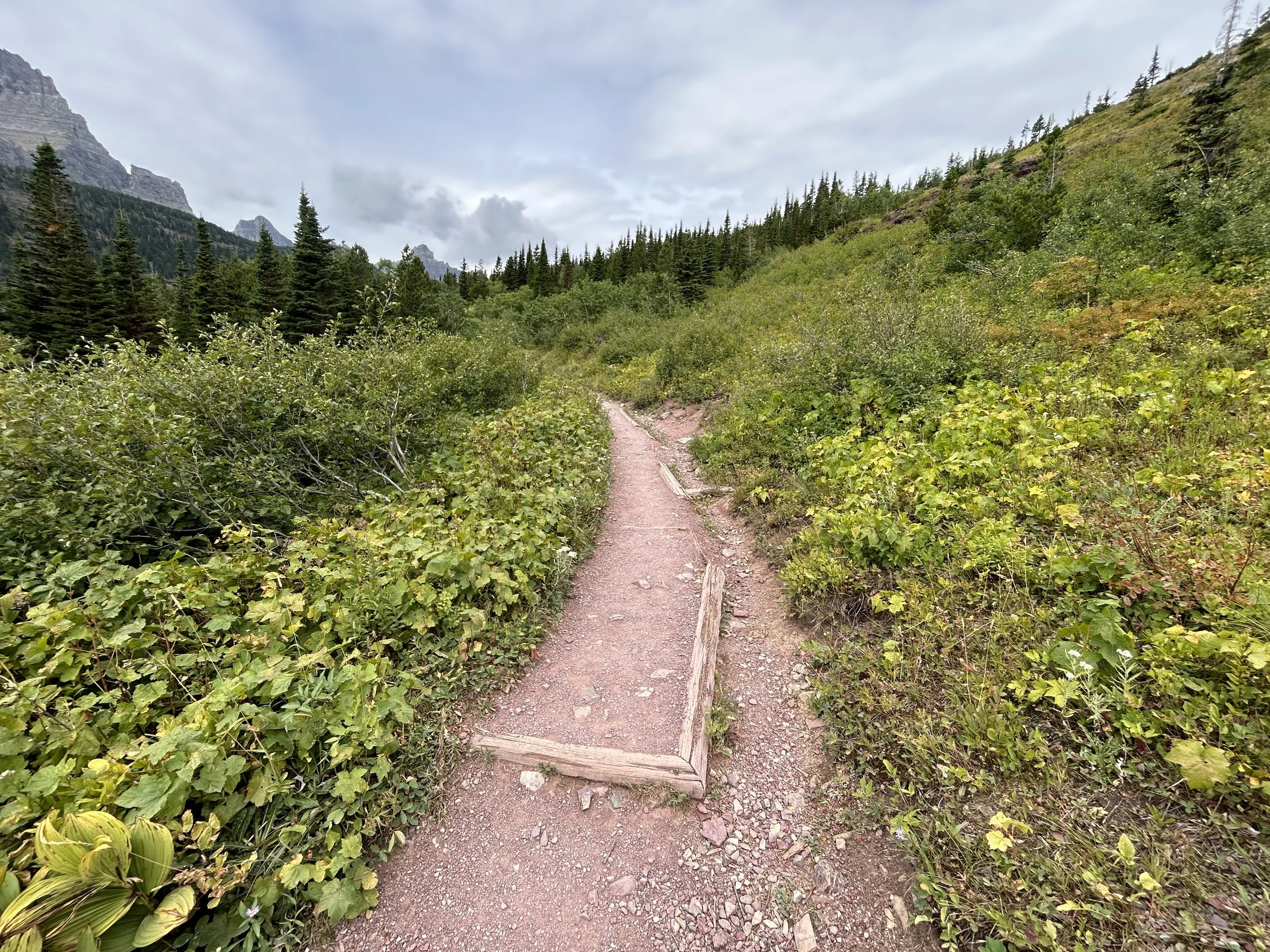 Immediately after beginning the hike, the Iceberg Lake Trail splits with the Swiftcurrent Pass Trail.