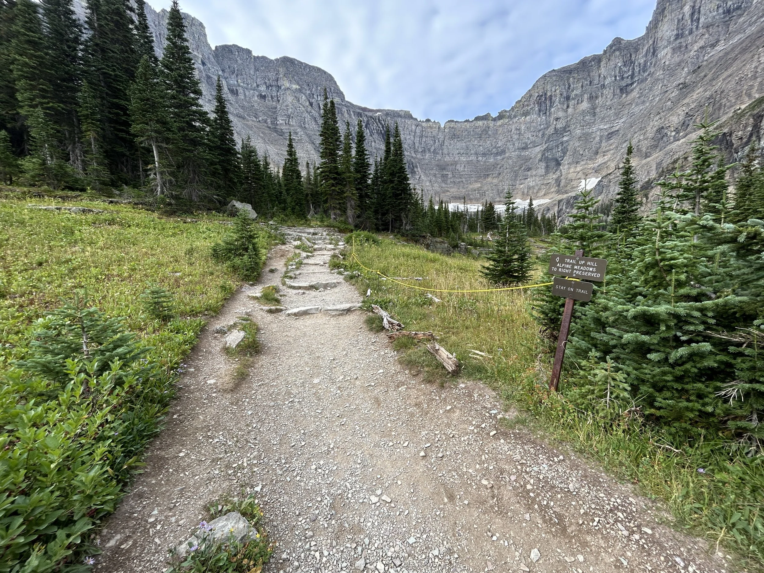 Please don’t leave the trail, as Iceberg Lake itself is much more stunning, which is only a few minutes ahead from this restoration area.