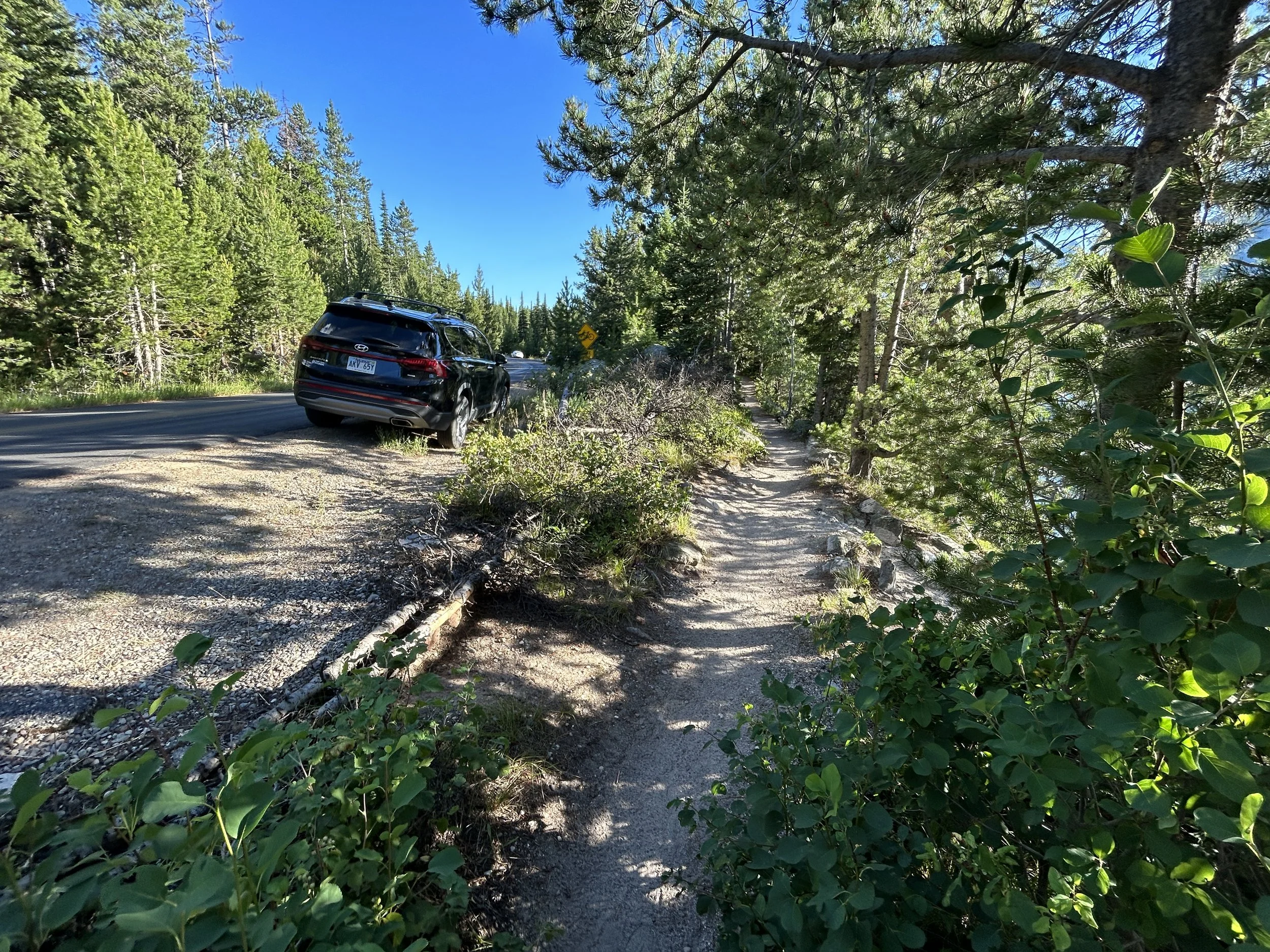 I say this because the parking lot at the Jenny Lake Visitor Center, along with other trailheads, will fill up completely between 9-10 a.m. during the busy summer season, which can require visitors to park up to 0.5 miles (0.8 km) away from the trailhead.