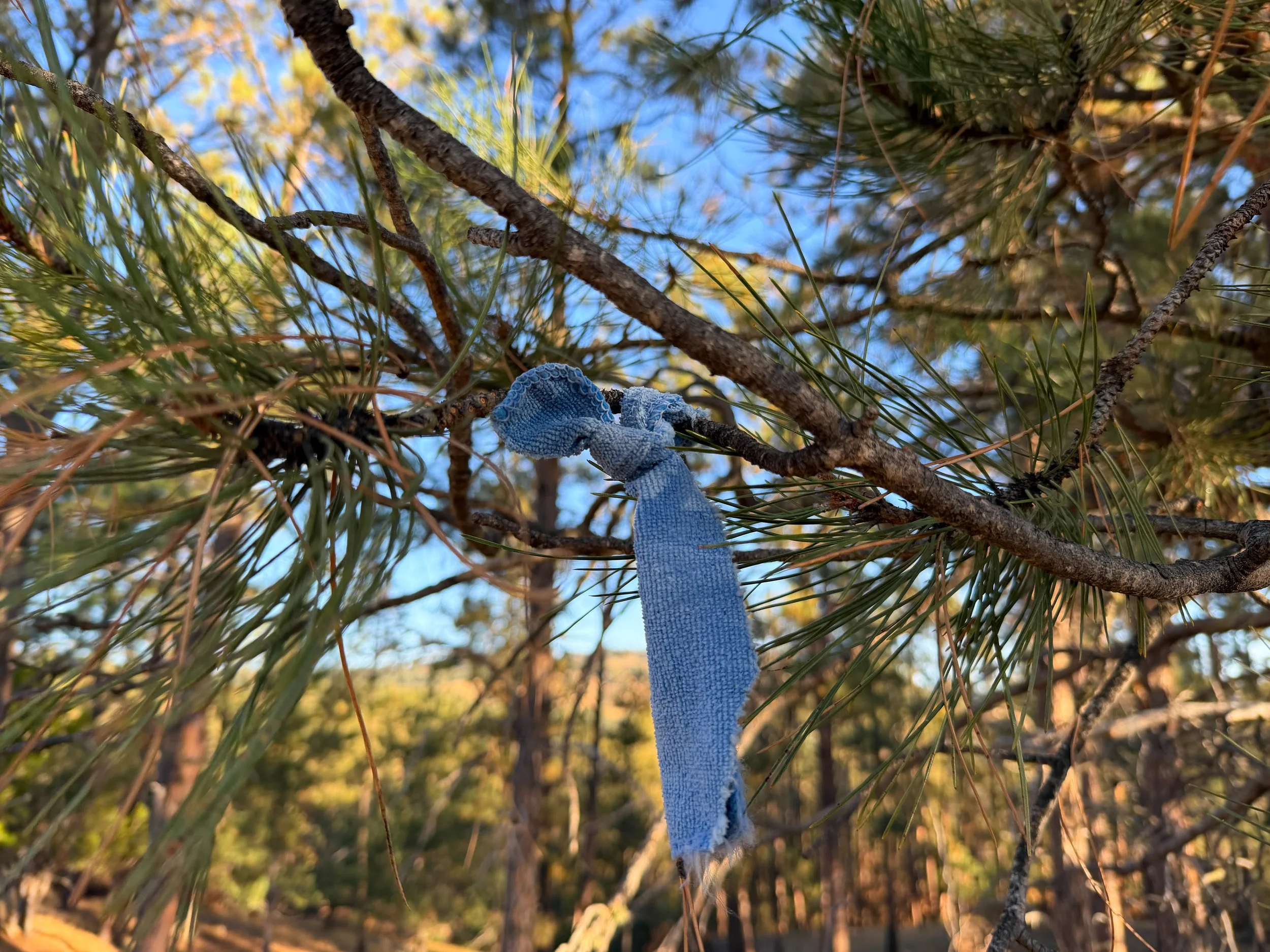 These are prayer bundles, and they can commonly be seen on the Ponderosa Pines and Aspens throughout Devils Tower.