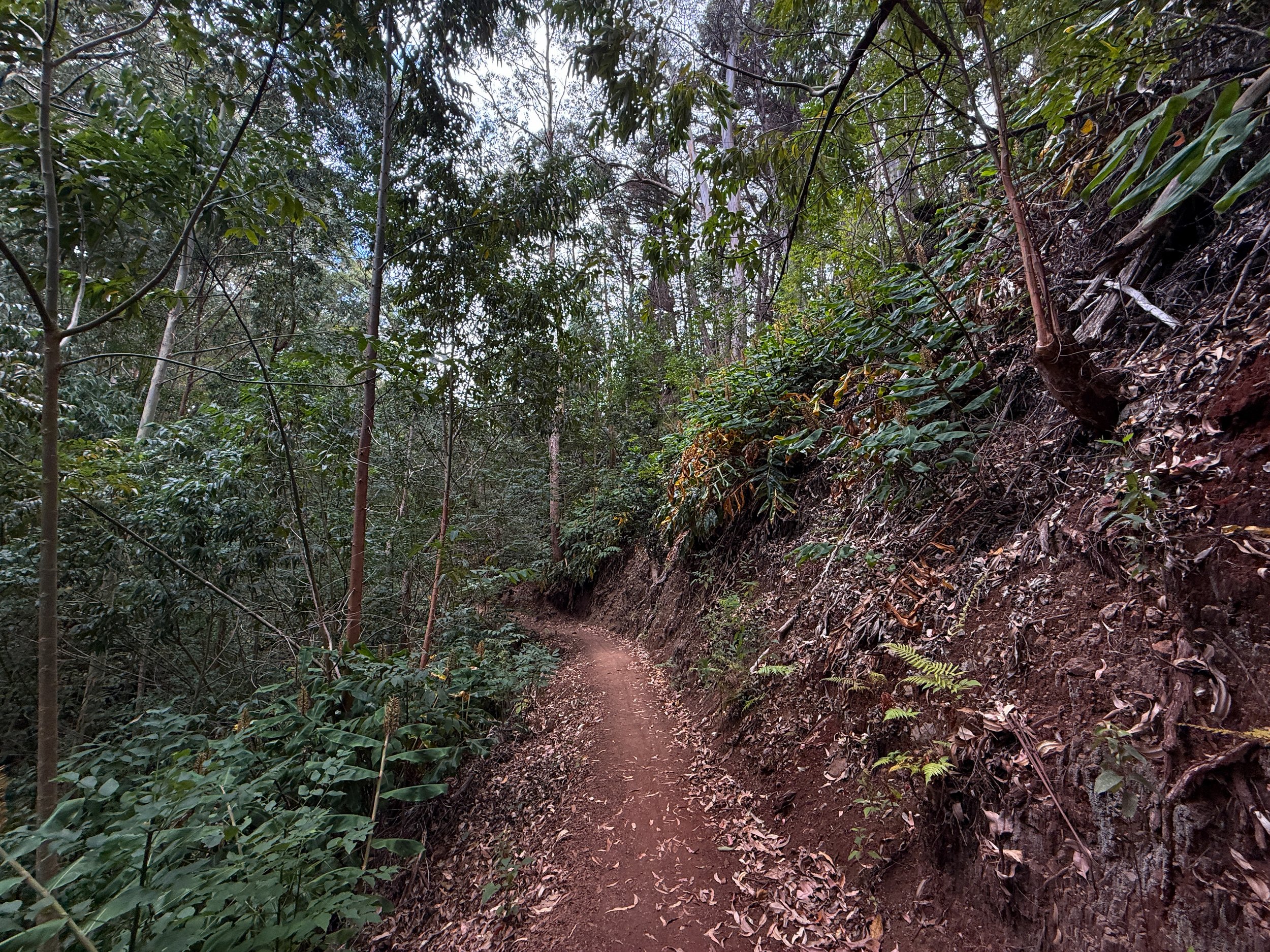 Shortly after the Pineapple Express Trail, the Kahakapao Loop Trail reaches the Akamai Track and several other side trails, which are easier to understand when looking at a detailed map of the Makawao Forest Reserve.