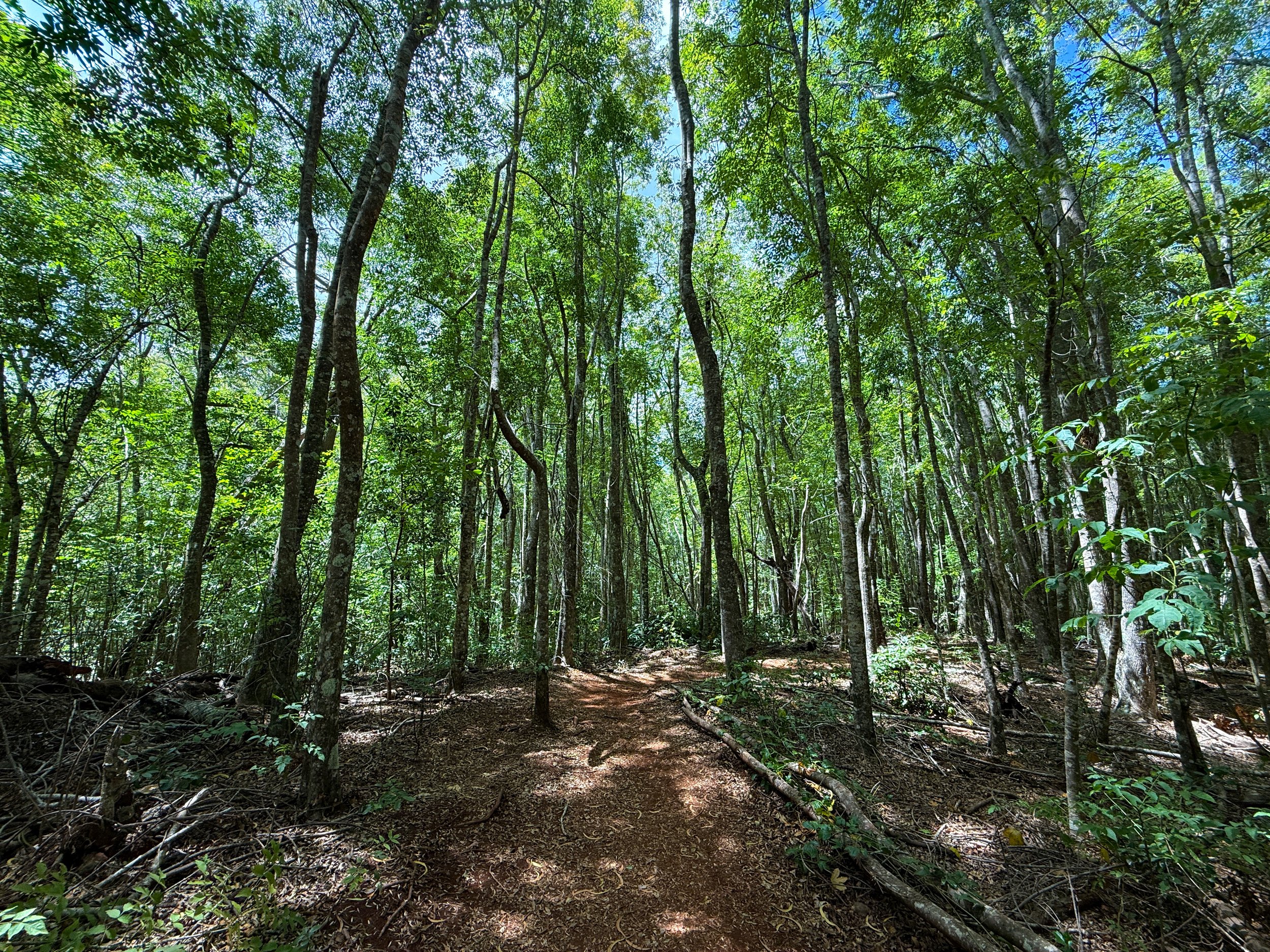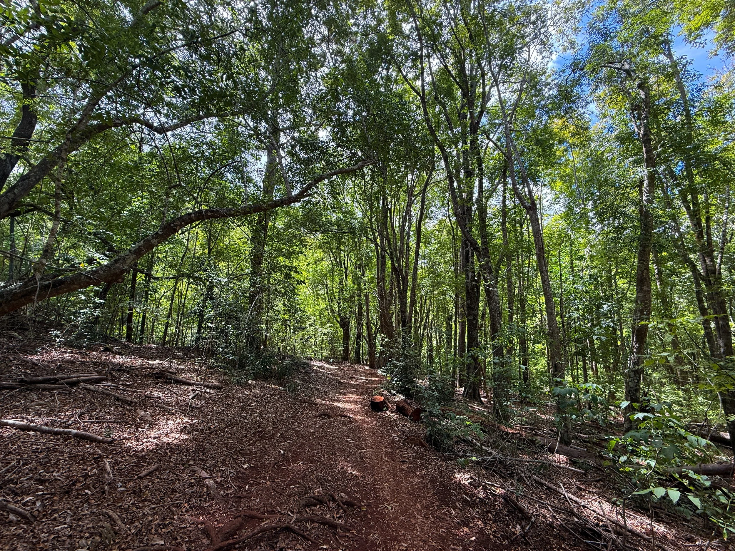 The trail that can be seen through the trees is Paʻahao Road.