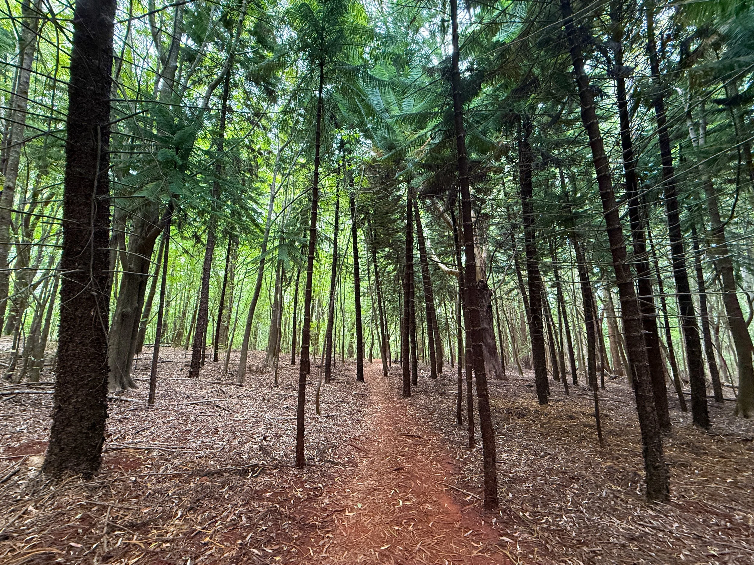 As the Kupukupu Ferns begin to fade, the next most beautiful section on the Kahakapao Loop is the Cook Pine forest just a short distance ahead.
