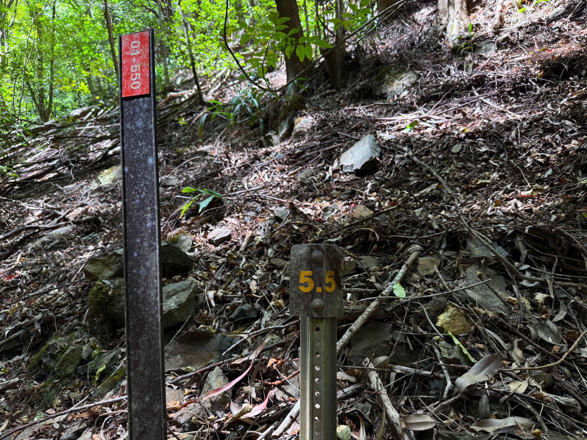 Since I decided to go right on the West Kahakapao Loop first, the mile markers start high and count down, meaning there are roughly 5.5 miles (8.9 km) from this point to the start of the loop shown above.