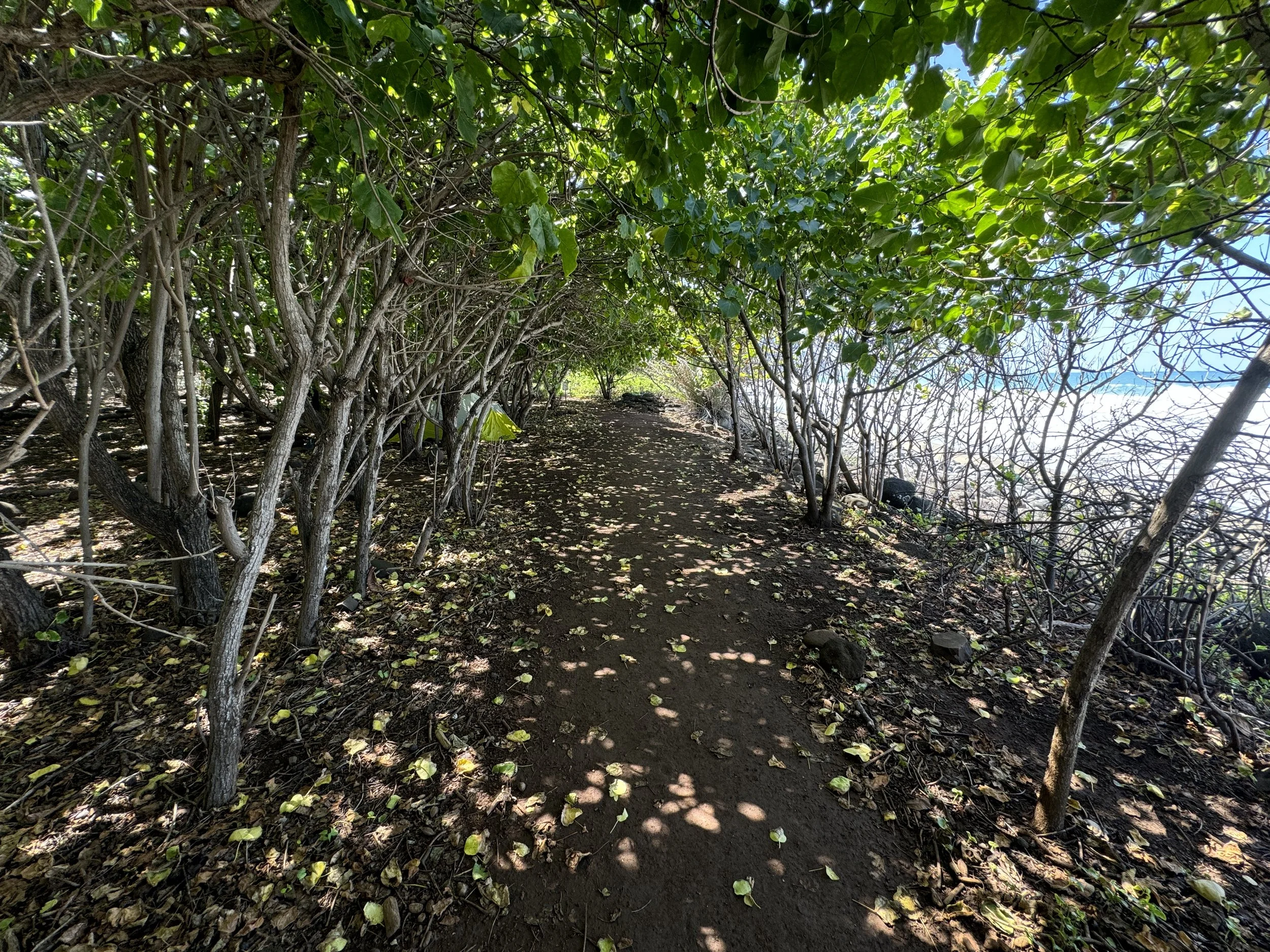 Just prior to the campsites at Kalalau Beach, the trail will split, with one path paralleling the coastline and the other passing through the forest.