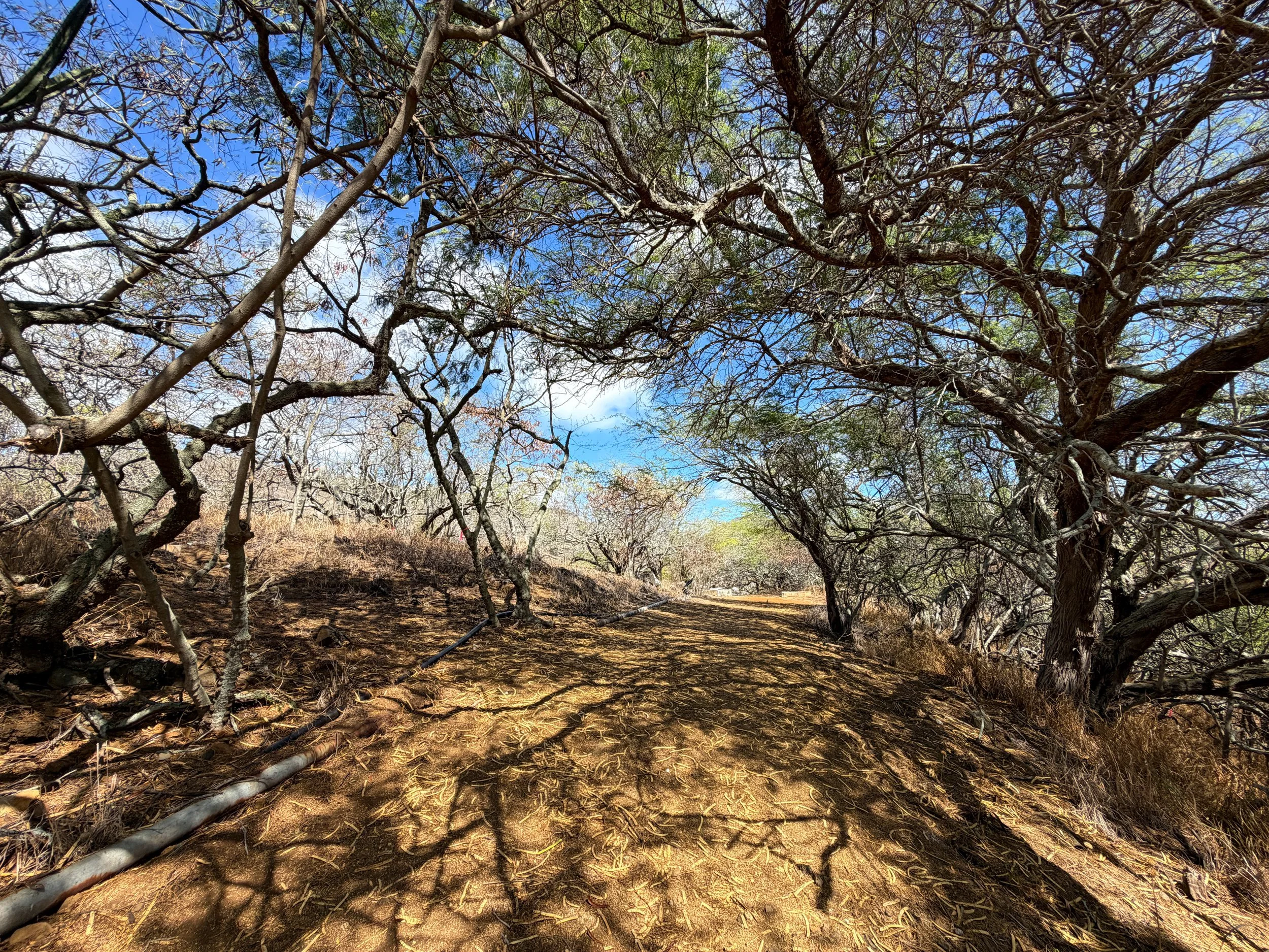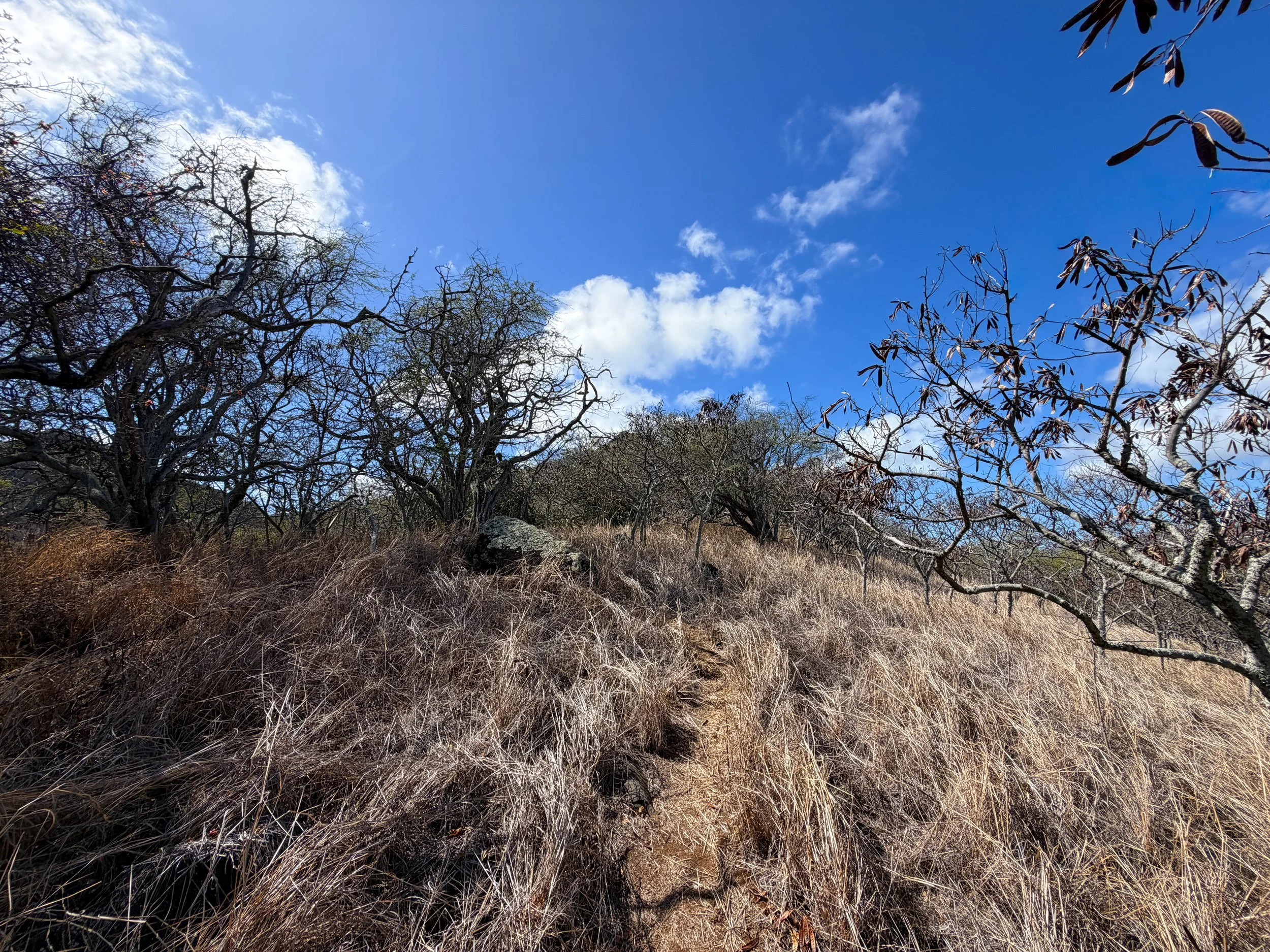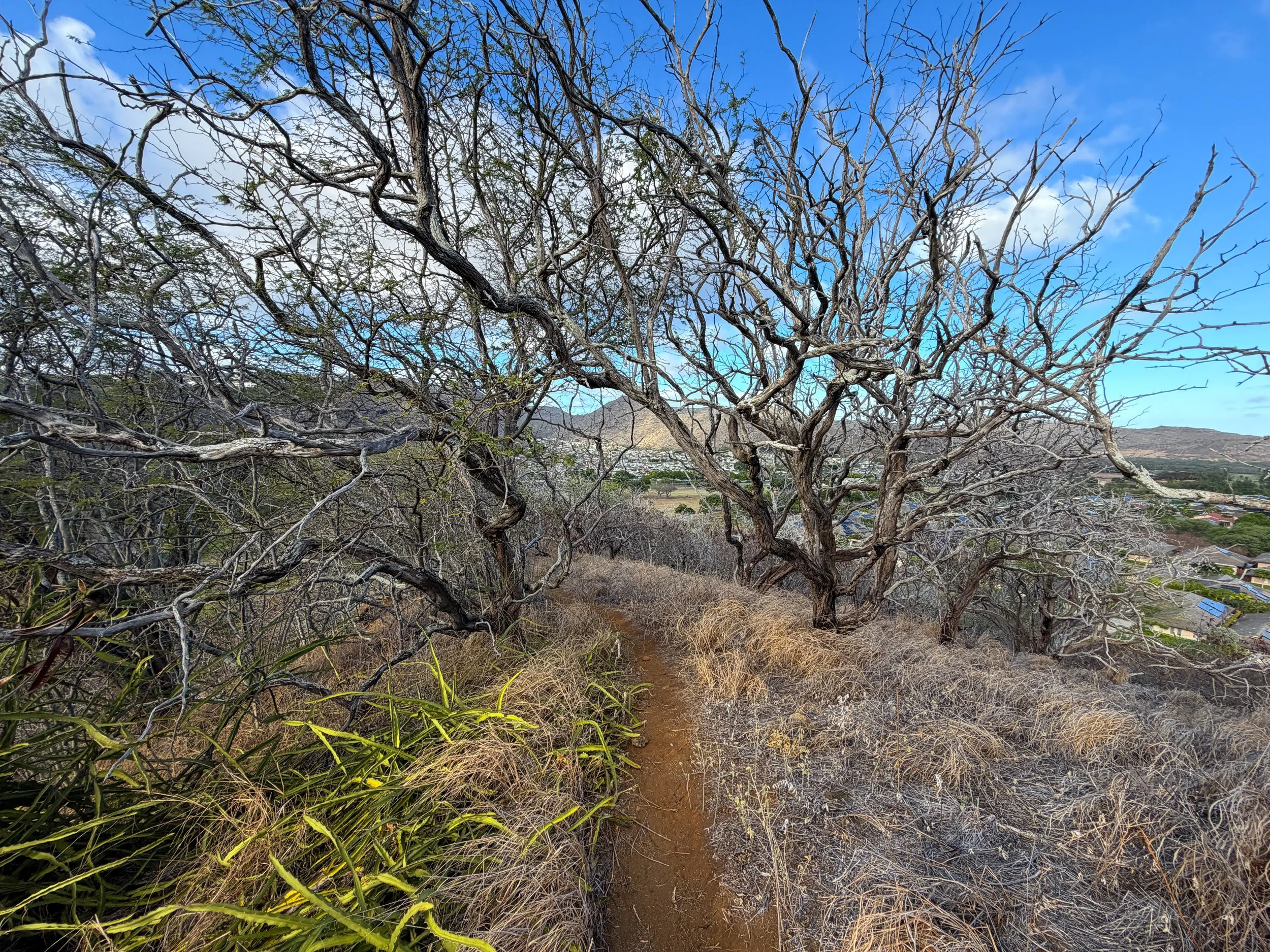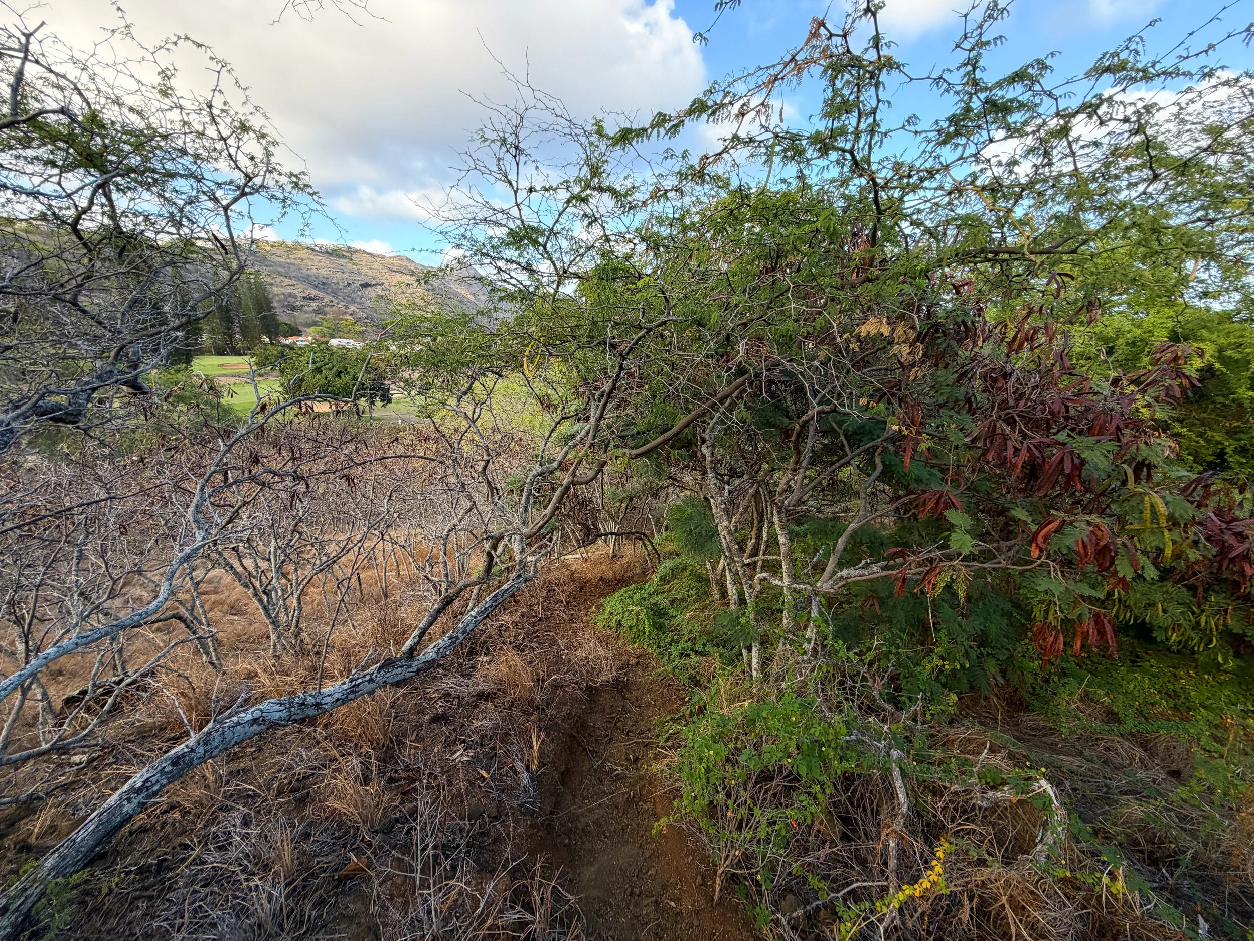 Outside the Koko Crater Botanical Garden Loop on the inside of Koko Crater, the vast majority of the landscape is dominated by invasive grasses and Koa Haole trees.