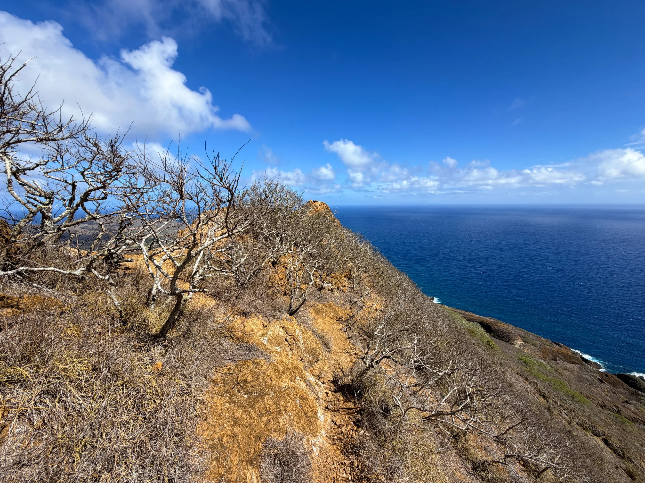 The cliff on the ridge straight ahead is the second-to-last place where the Koko Crater Rim Trail leaves the ridgeline.