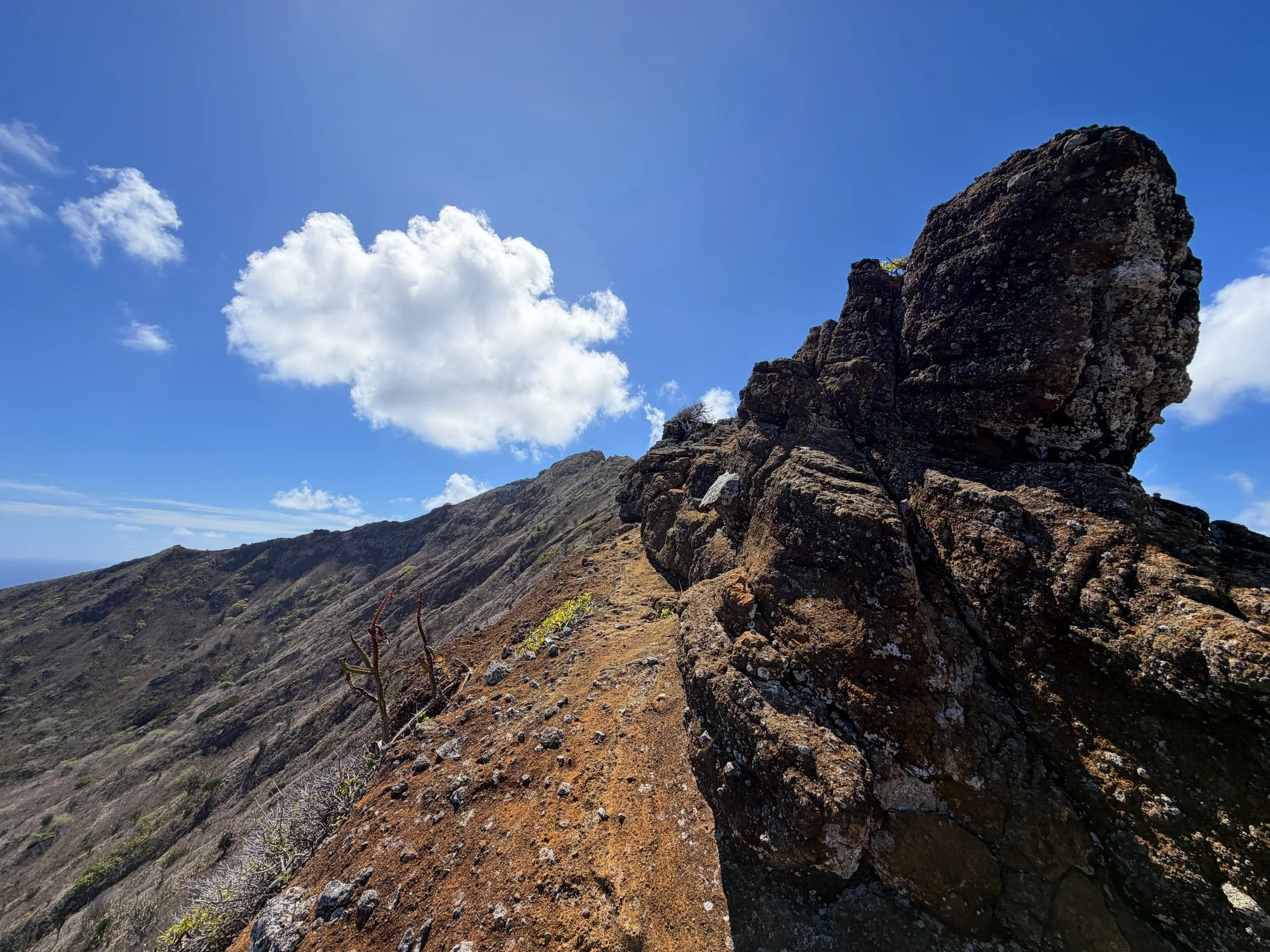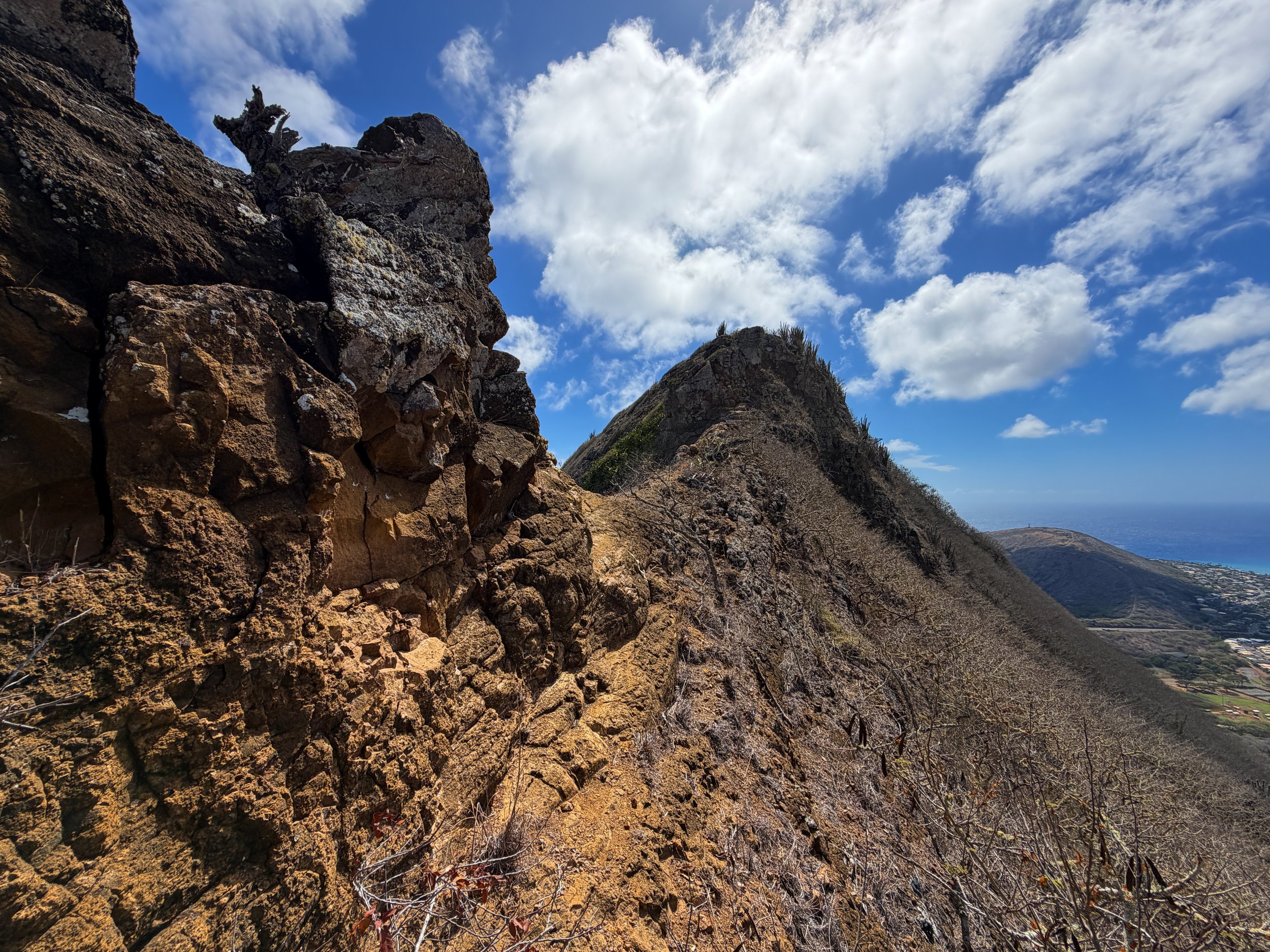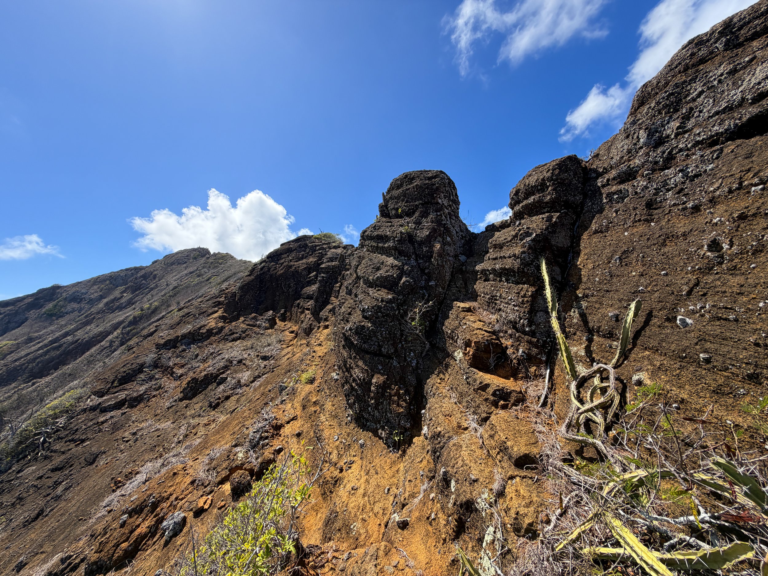 After the first scramble, the Koko Crater Rim Trail follows the ridgeline for a short distance, but this doesn’t last long as there are a few areas ahead where the easiest path is off to one side or the other.