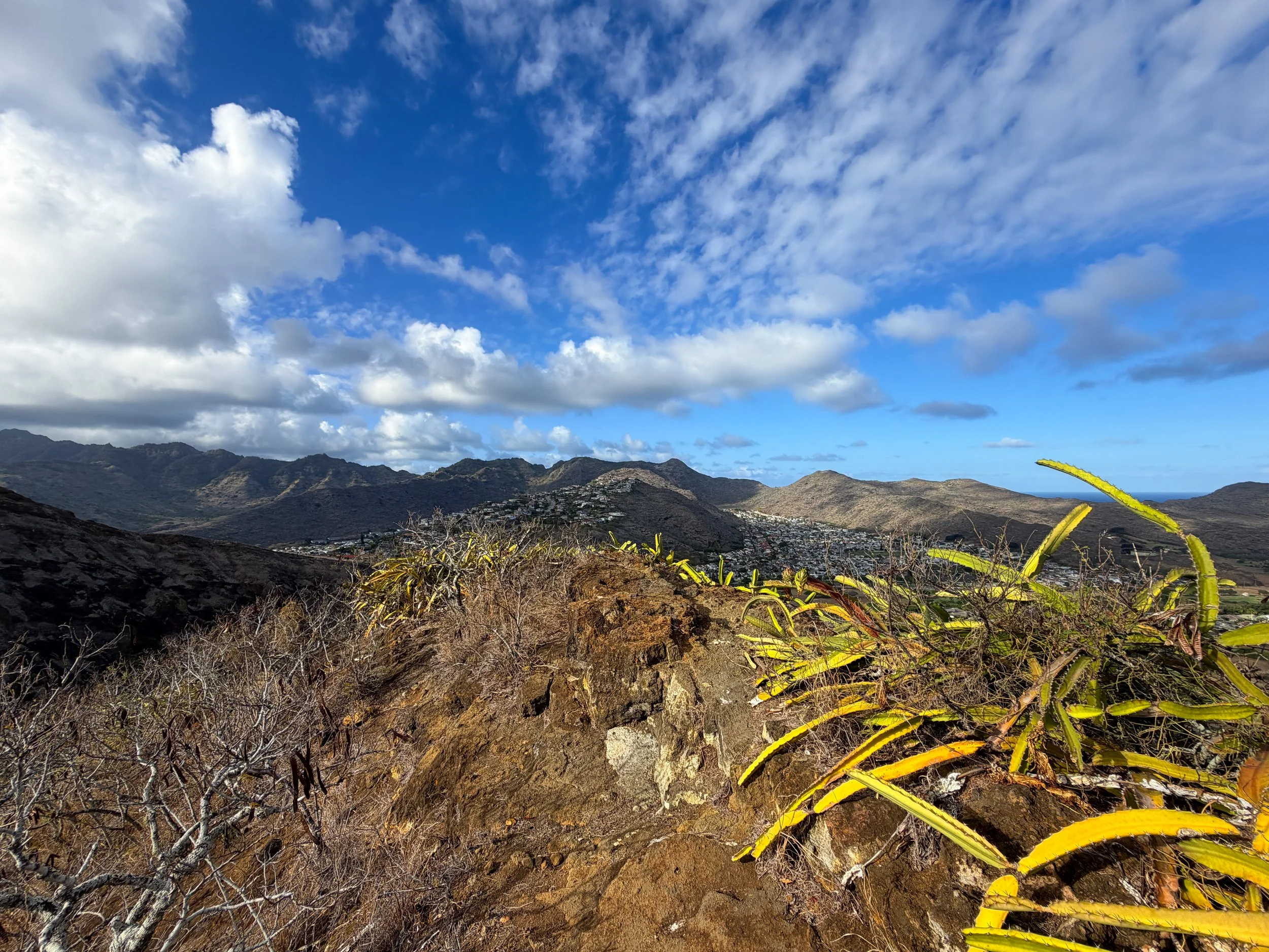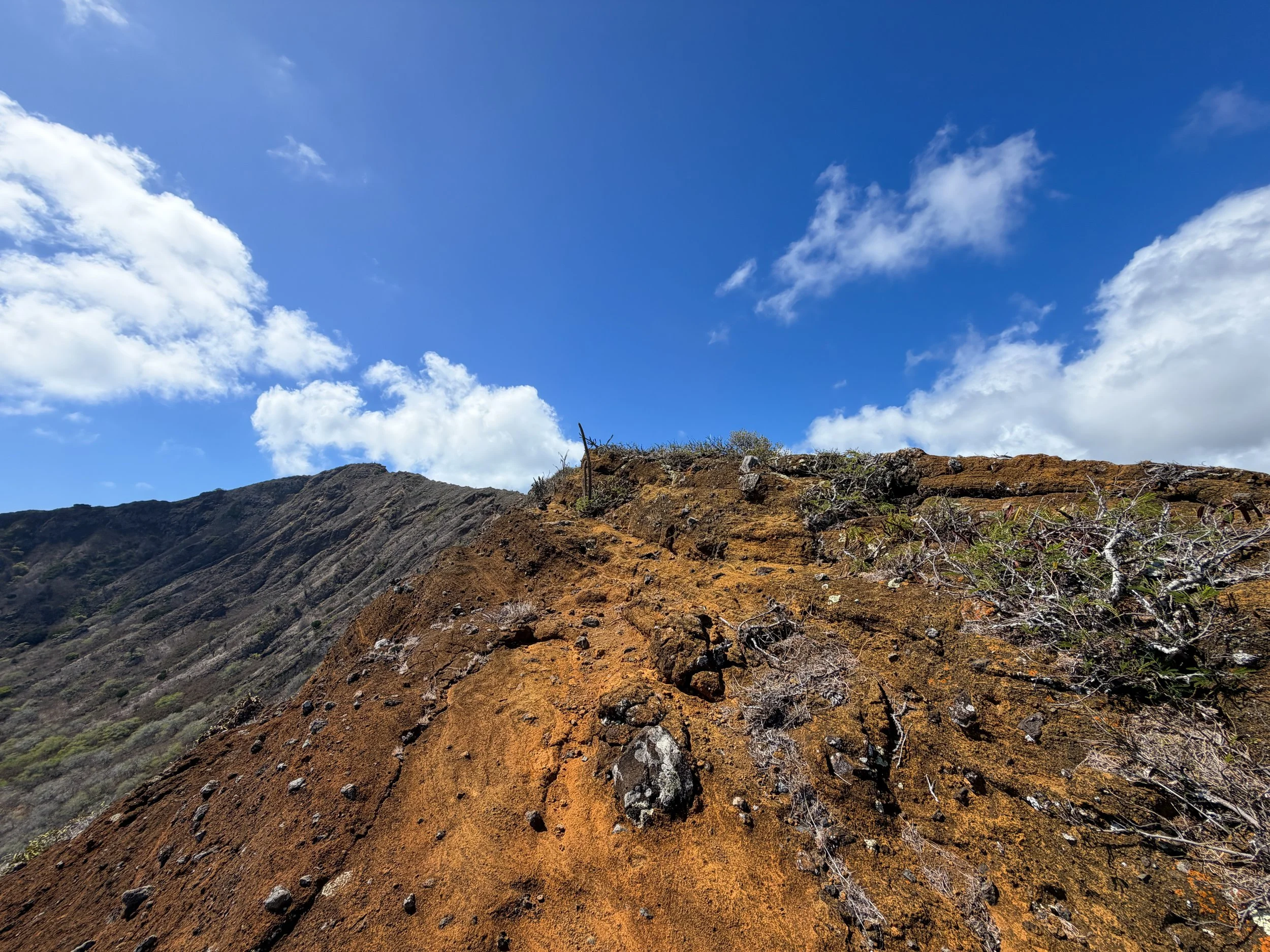 By this I mean that, compared to the Koko Crater Stairs, the Koko Crater Rim is an easier hike to the summit in terms of cardio, but harder in terms of terrain. This is because the trail follows a fairly gradual slope for 'most' of the loop around Koko Crater, but on the north side specifically, there is quite a bit of Class 2/ 3 scrambling required to reach the summit—not to mention, it can become Class 4 if you get off route.