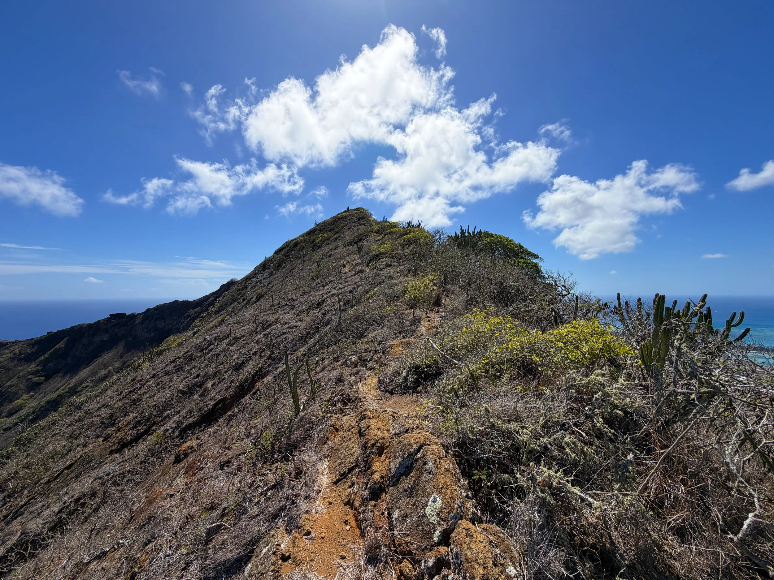 That said, the Koko Crater Rim from this point to the summit becomes much easier to navigate, even though there are a few final sections to scramble before reaching Puʻu Mai.