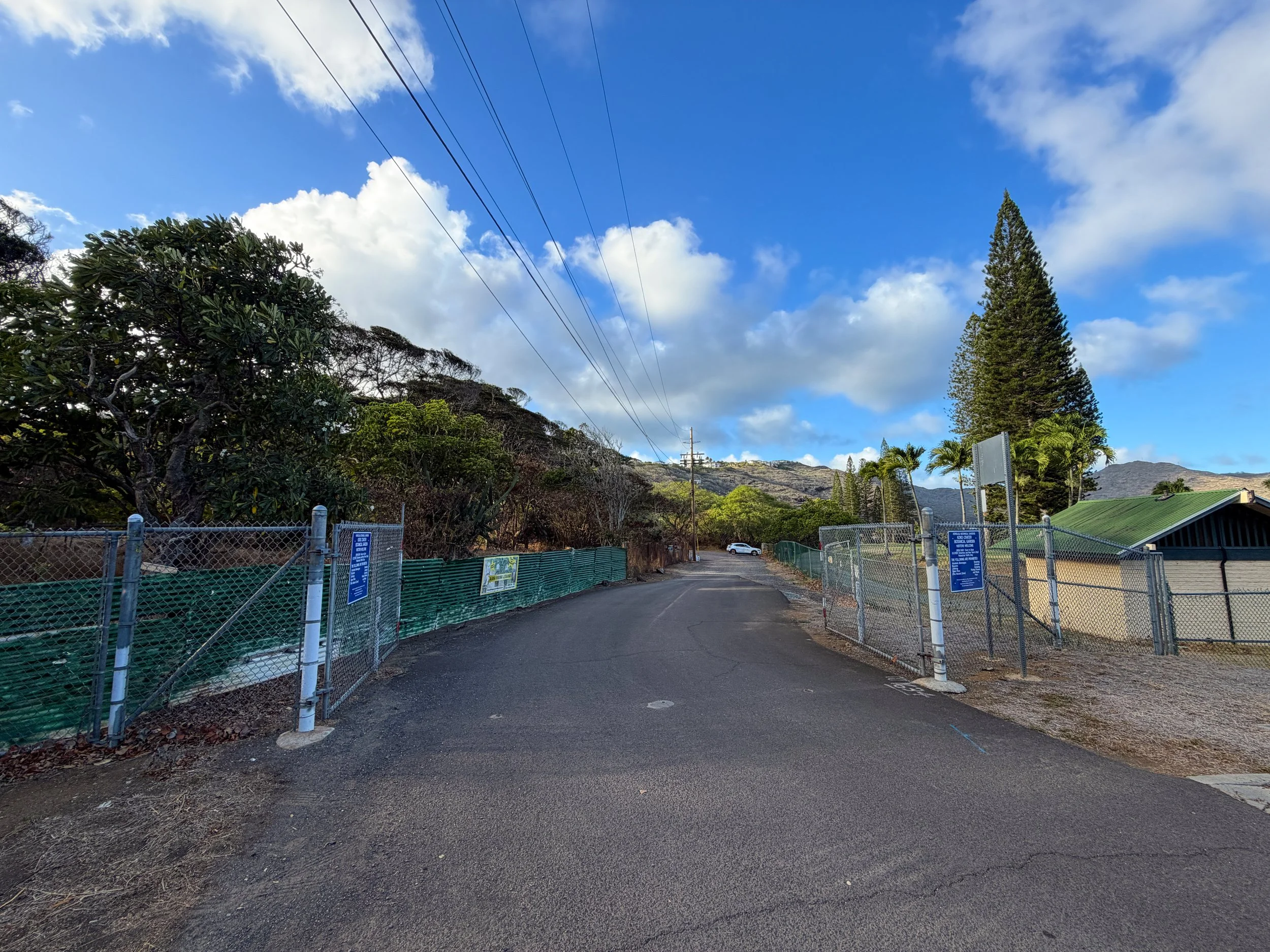 When the Koko Crater Rim Trail breaks out of the trees, go left to walk up the road toward the Koko Crater Botanical Garden.
