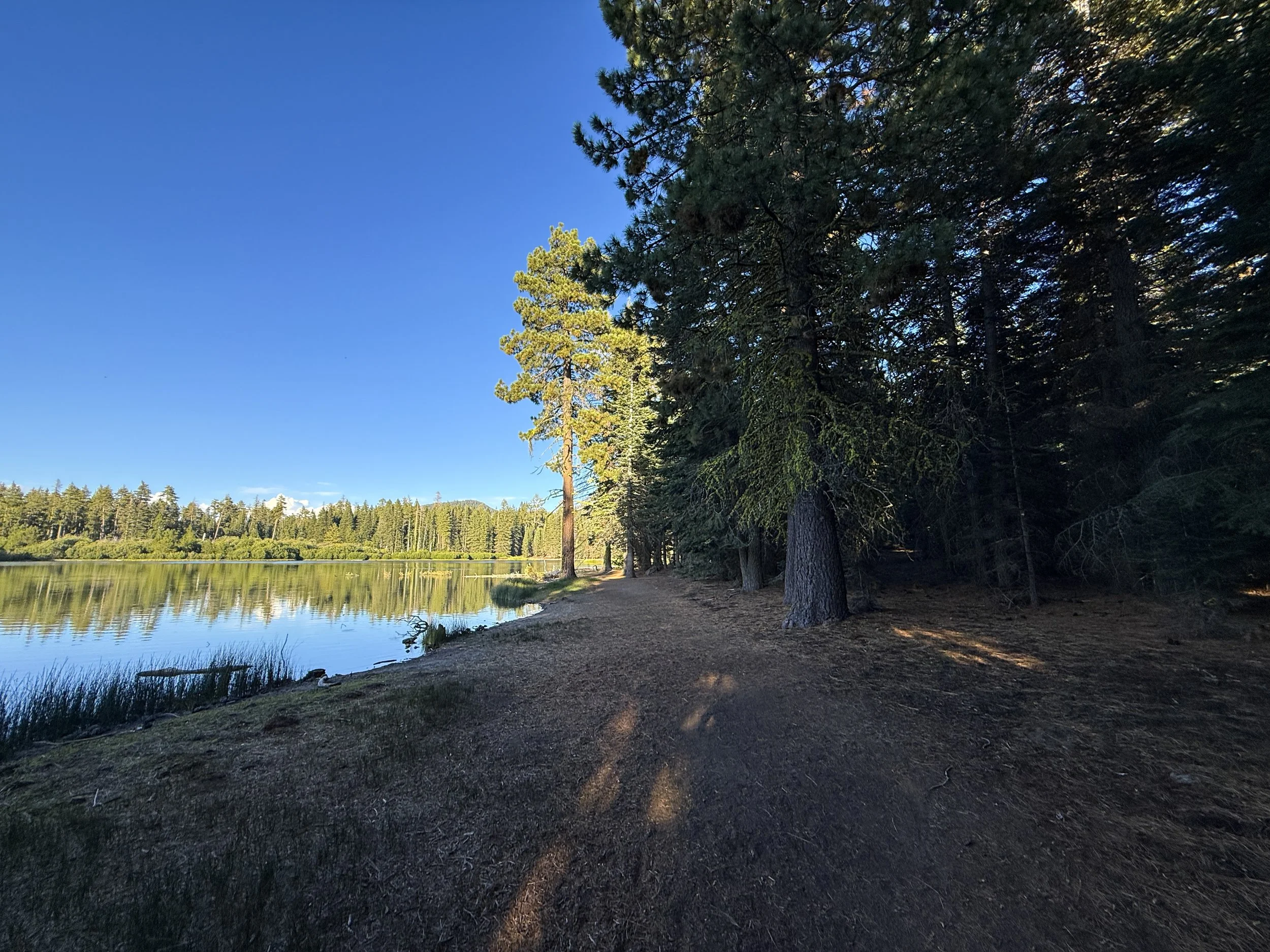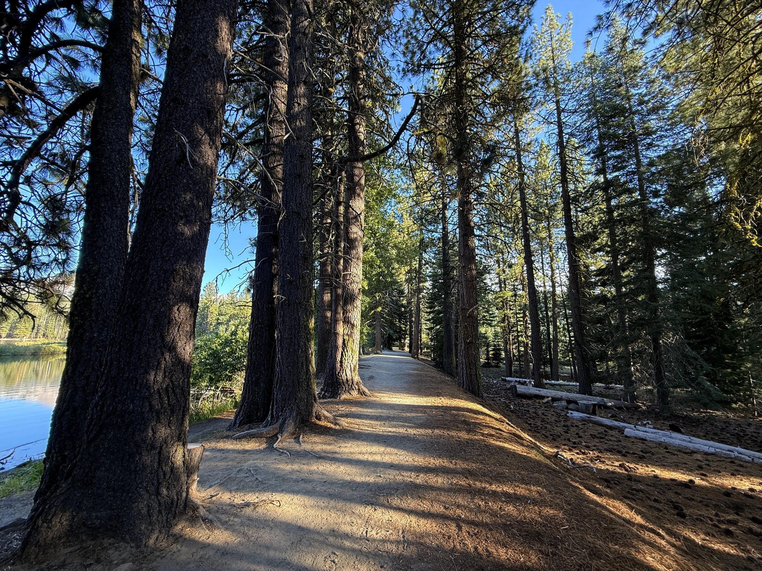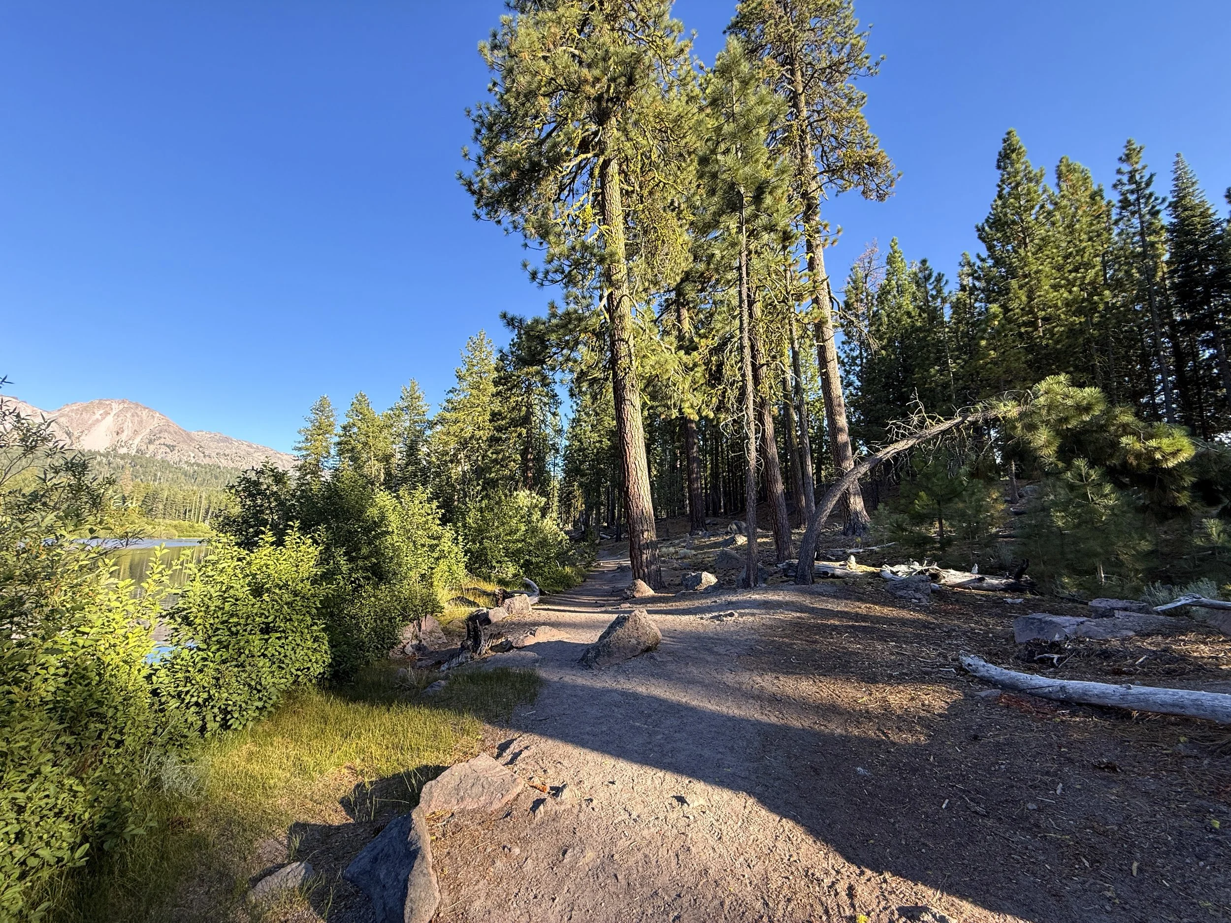 Immediately after leaving the Loomis Ranger Station, the Manzanita Lake Trail splits into the 2.2-mile (3.5 km) loop around the lake.