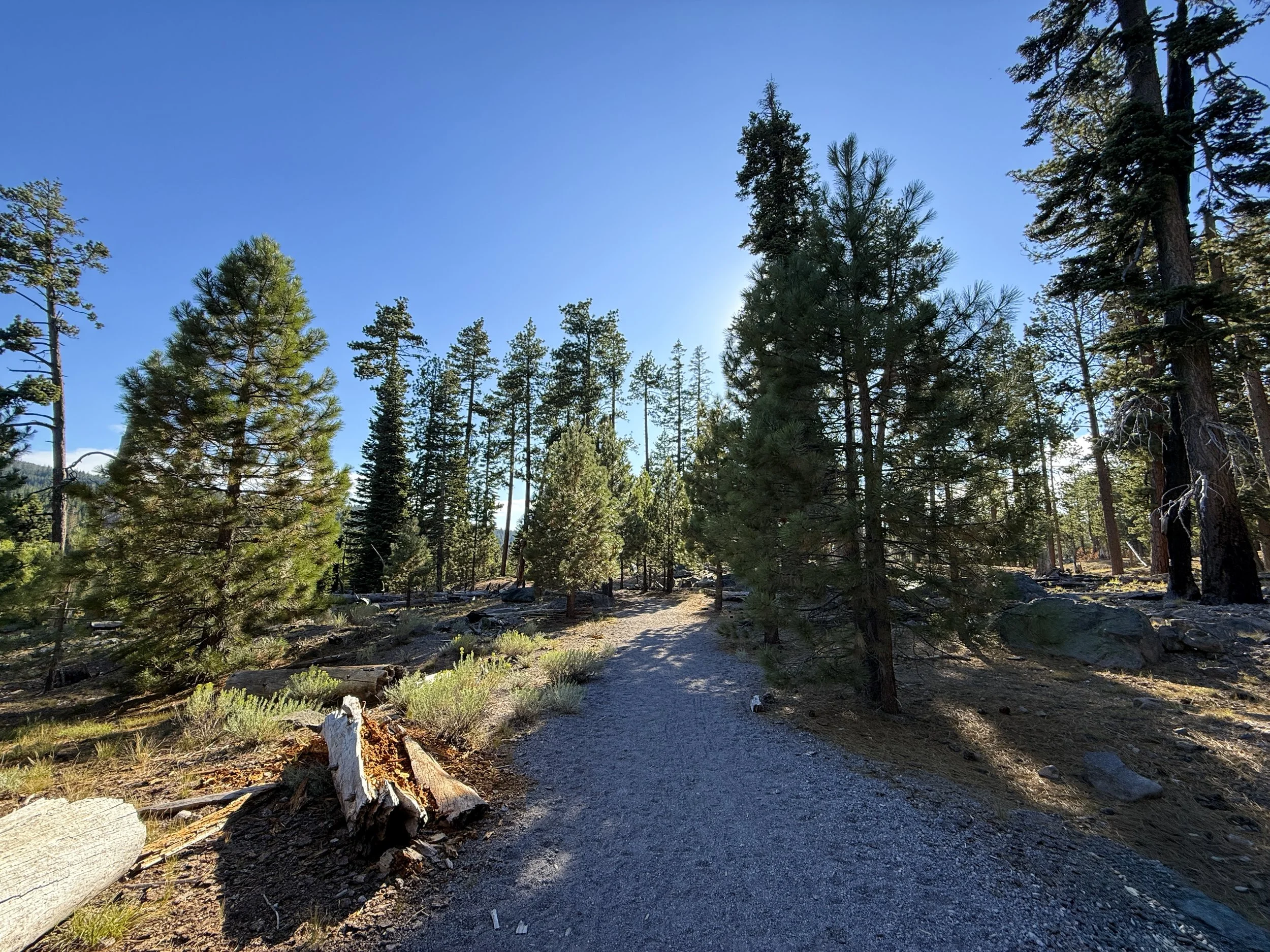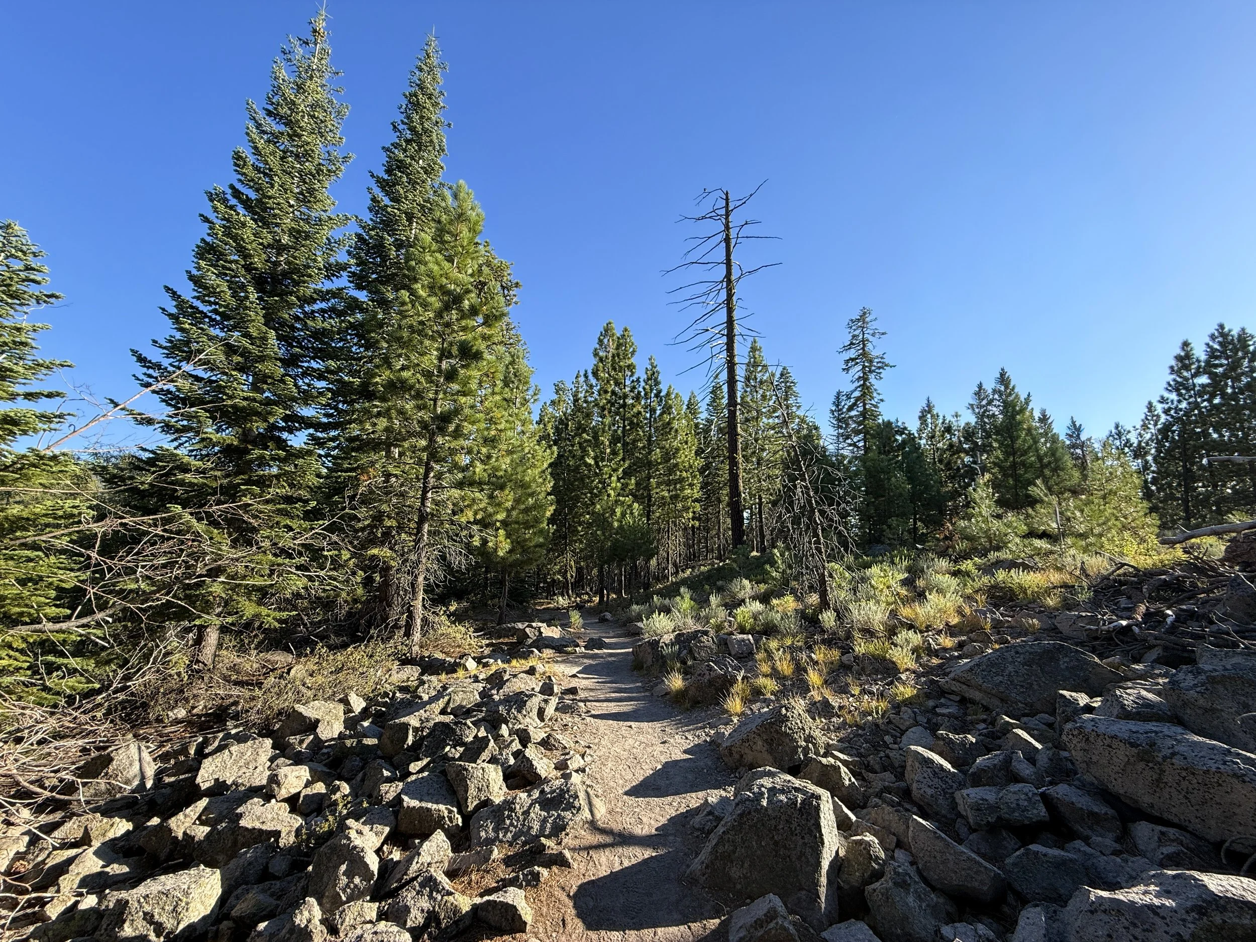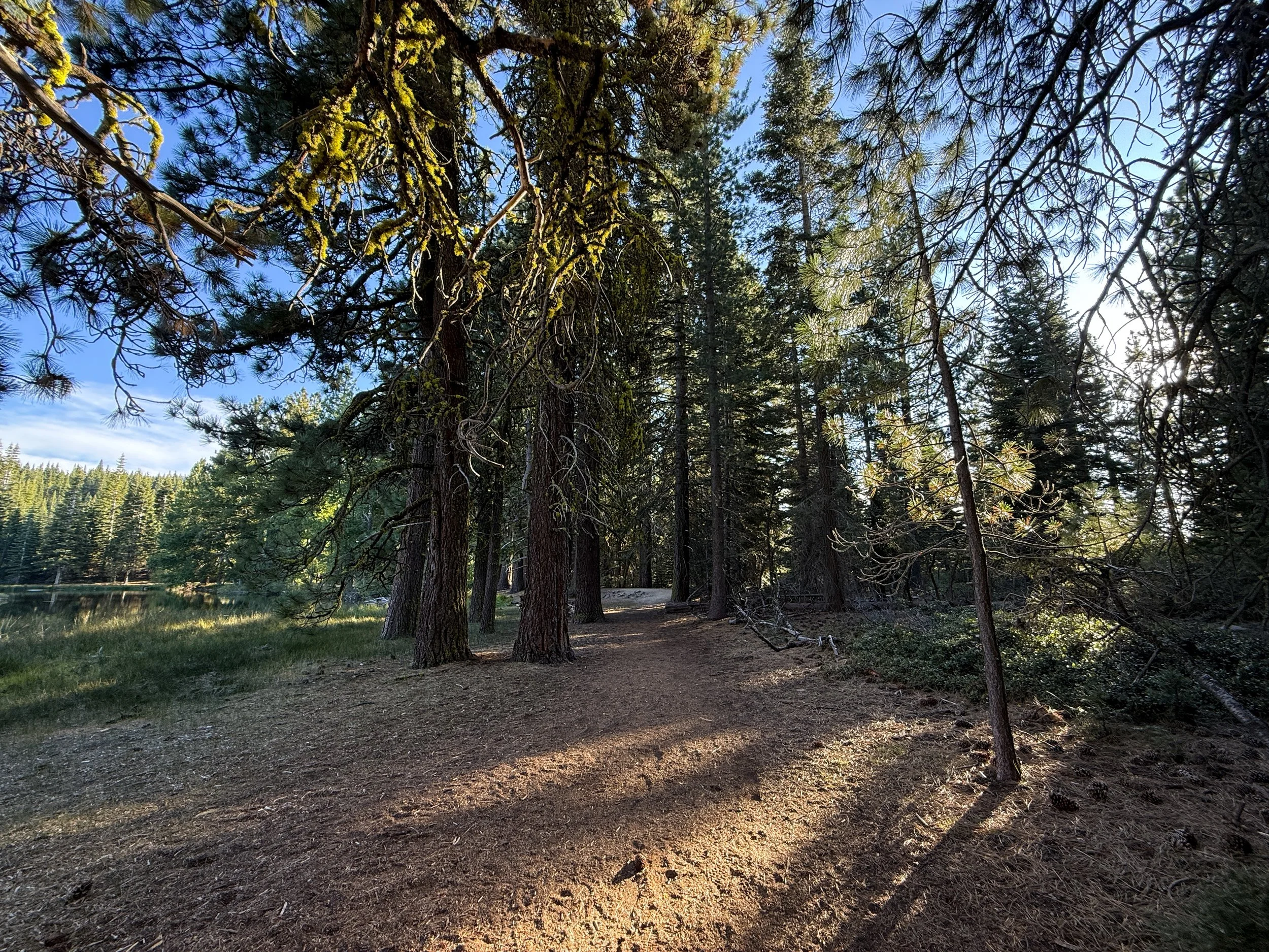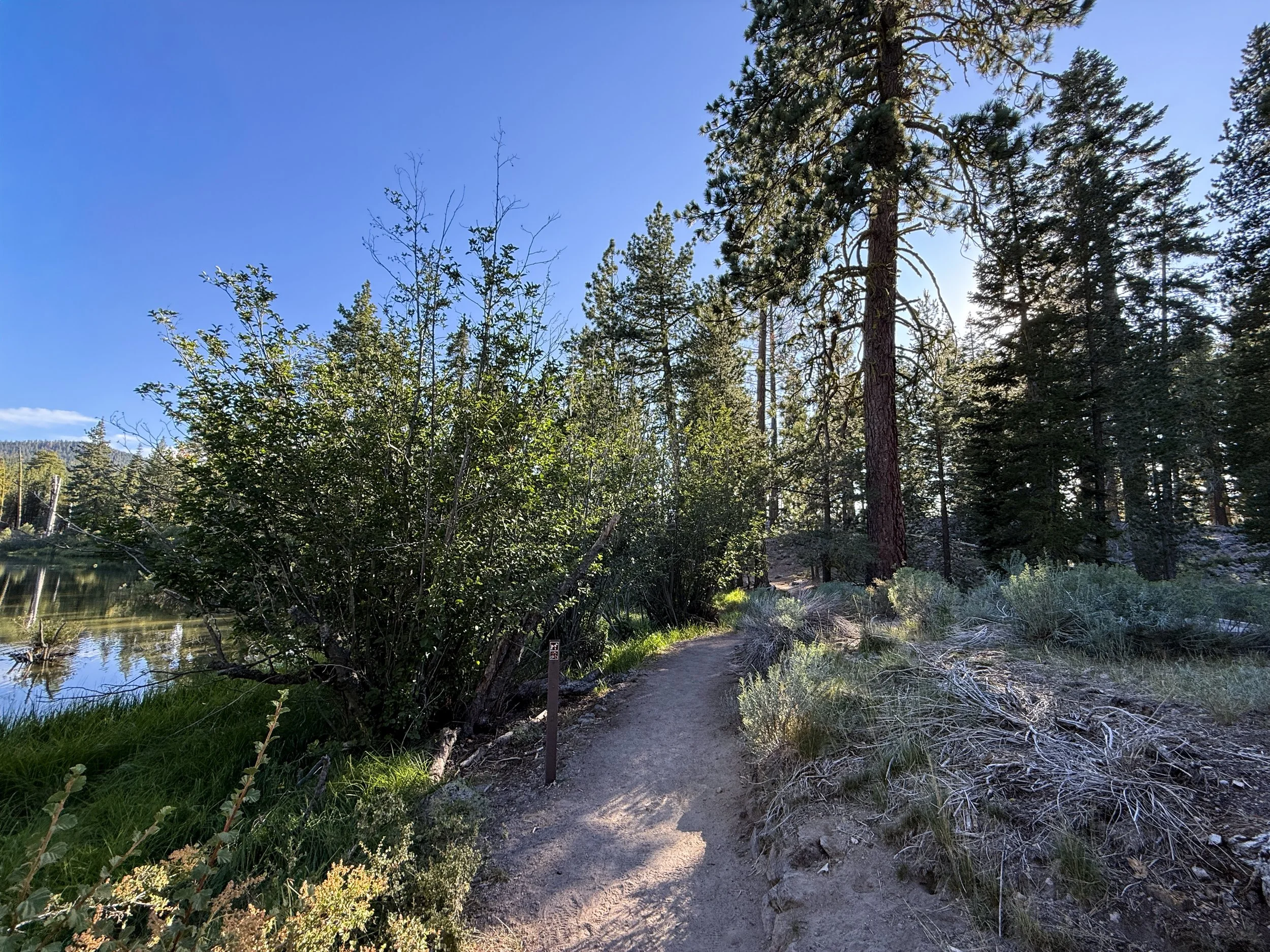 Immediately after leaving the Loomis Ranger Station, the Manzanita Lake Trail splits into the 2.2-mile (3.5 km) loop around the lake.