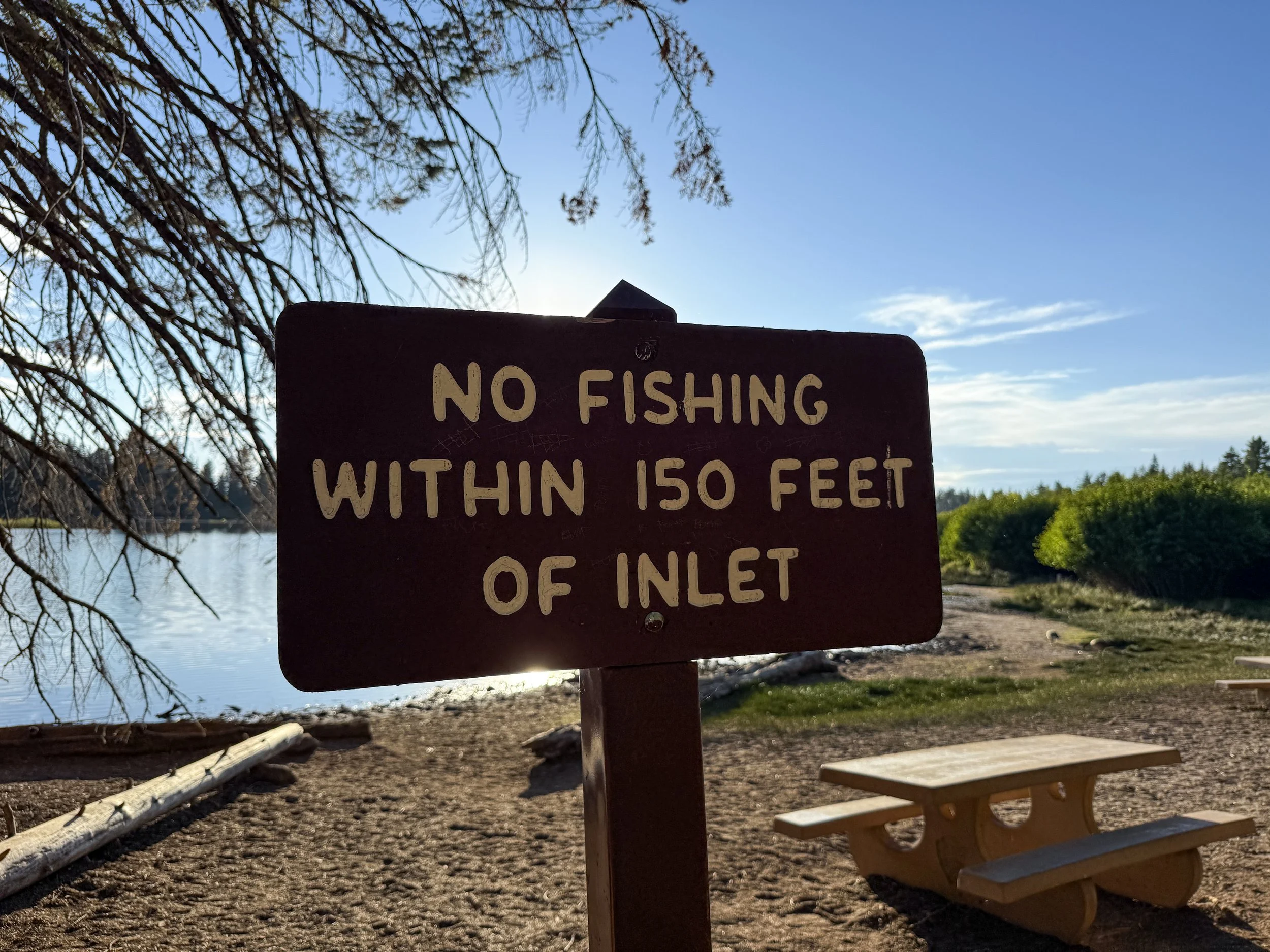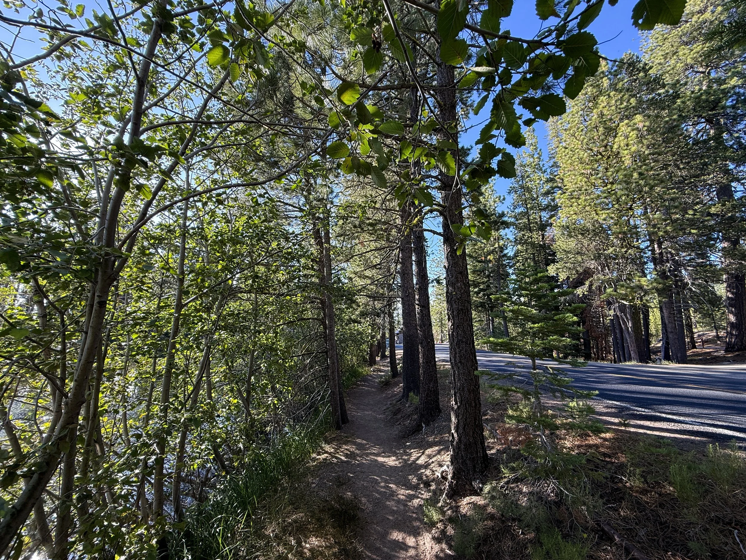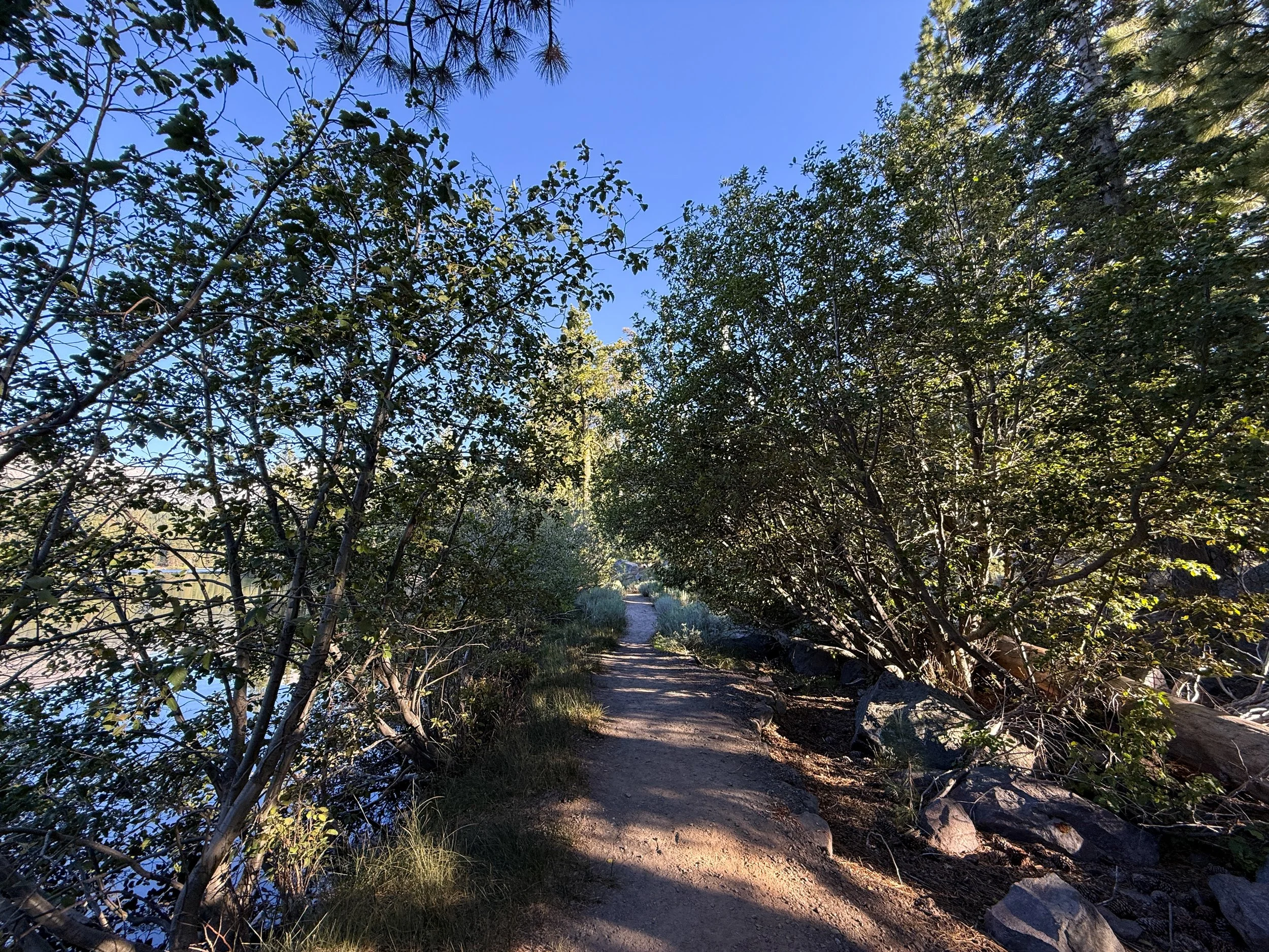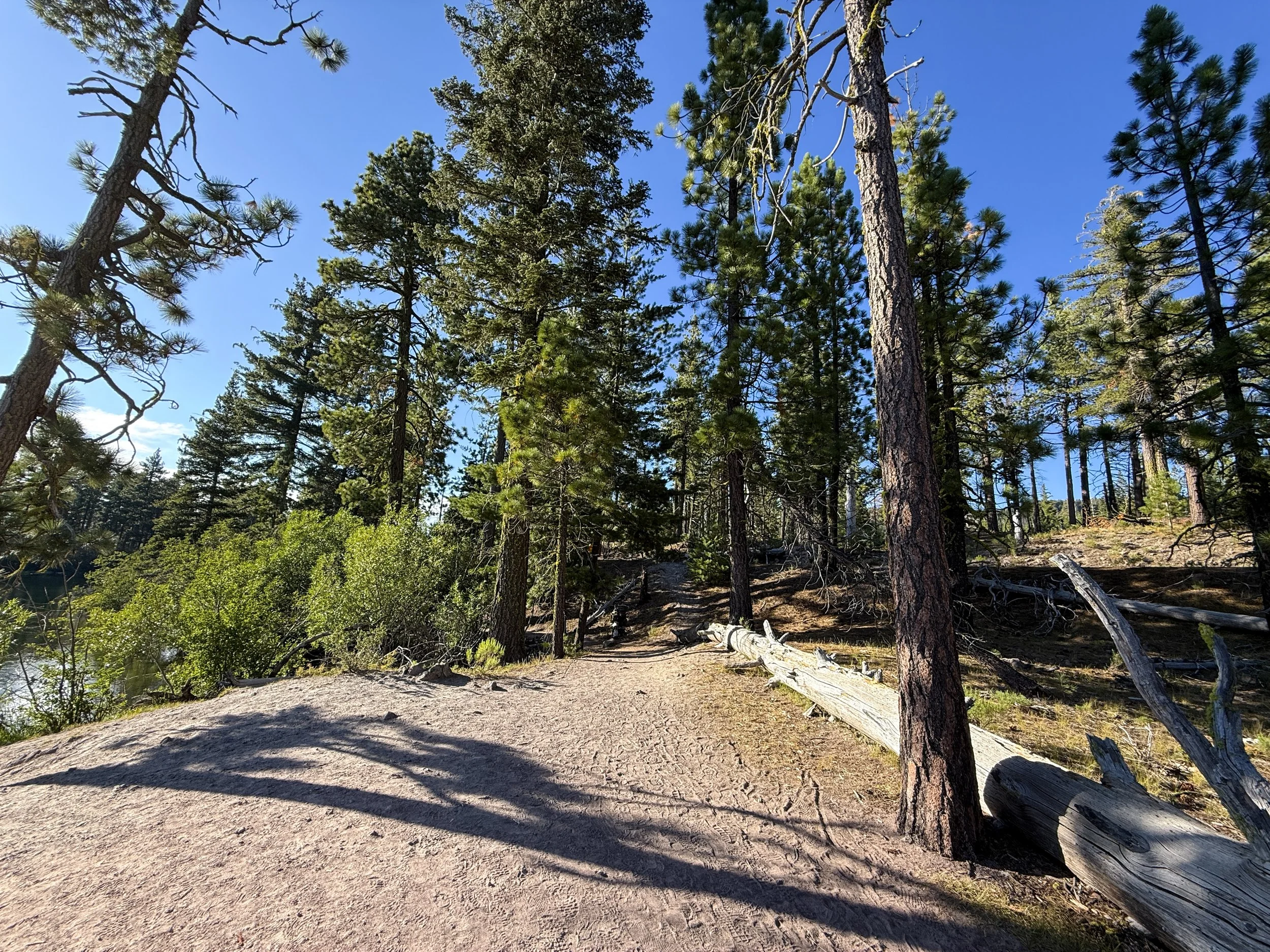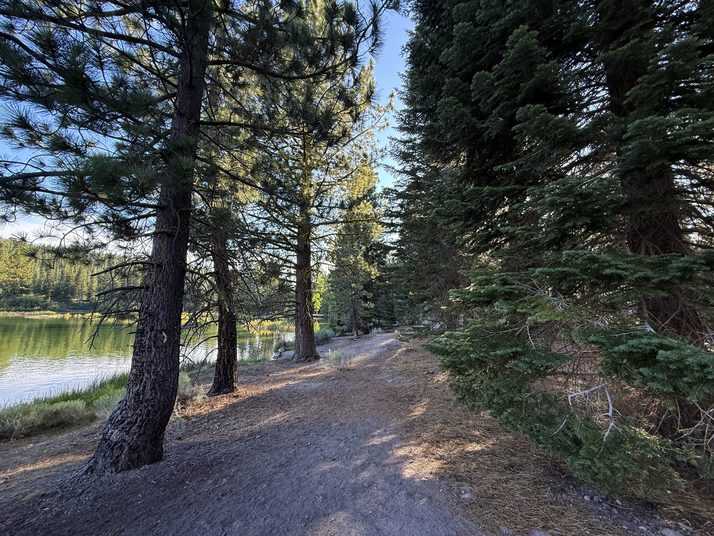 Shortly before the Manzanita Creek Inlet, the Manzanita Lake Trail passes the boat launch, with the picnic area following shortly after.