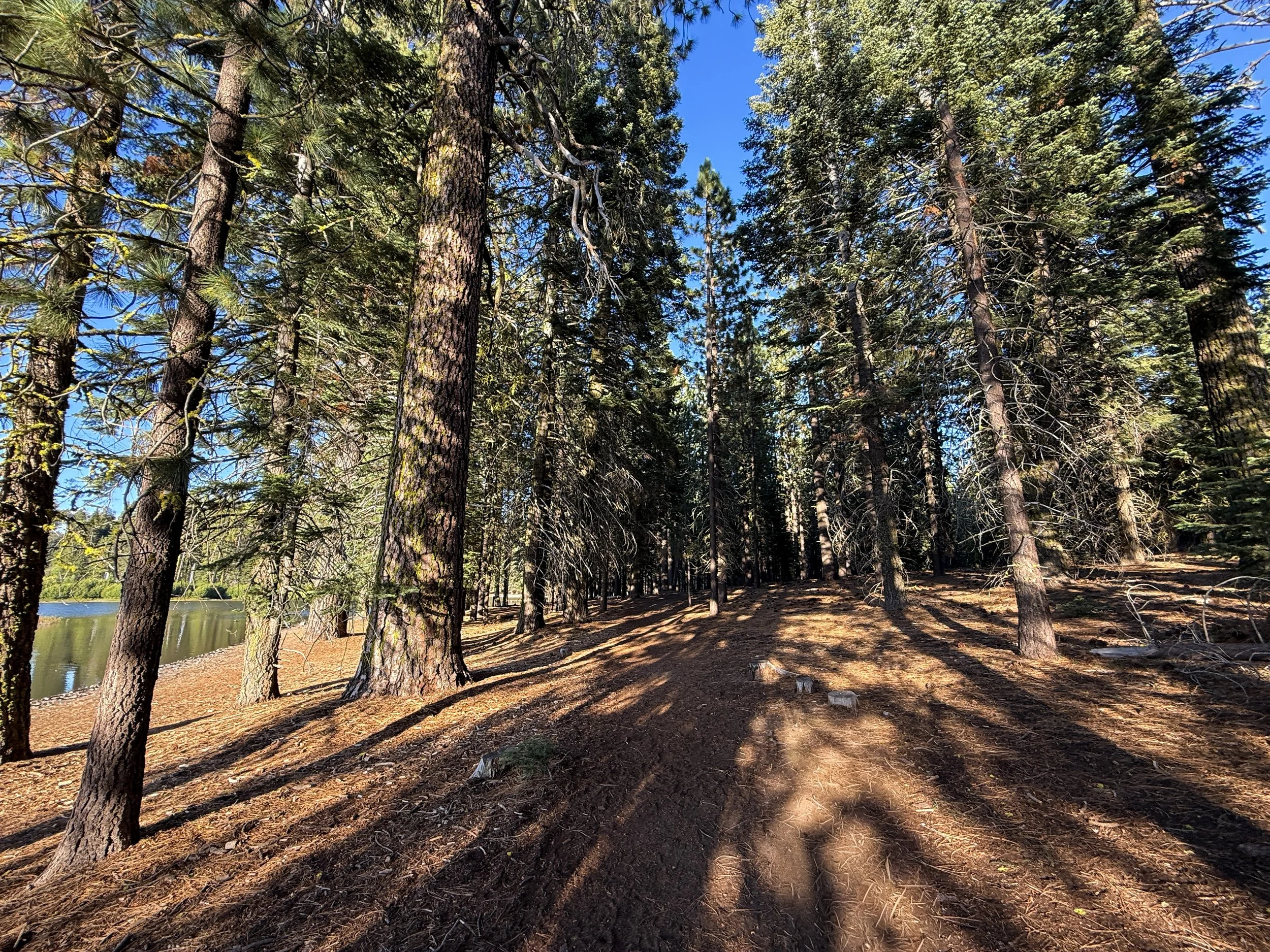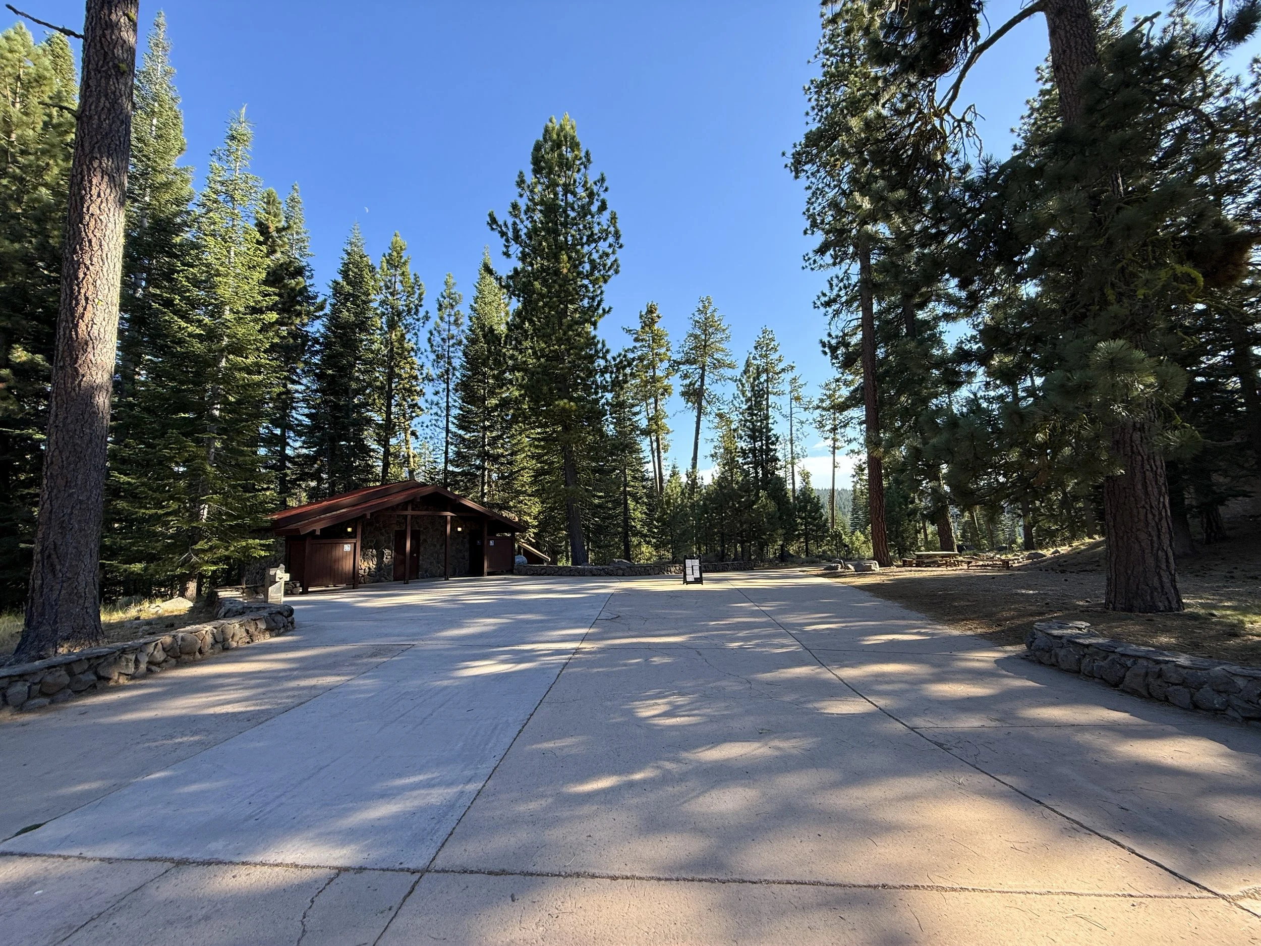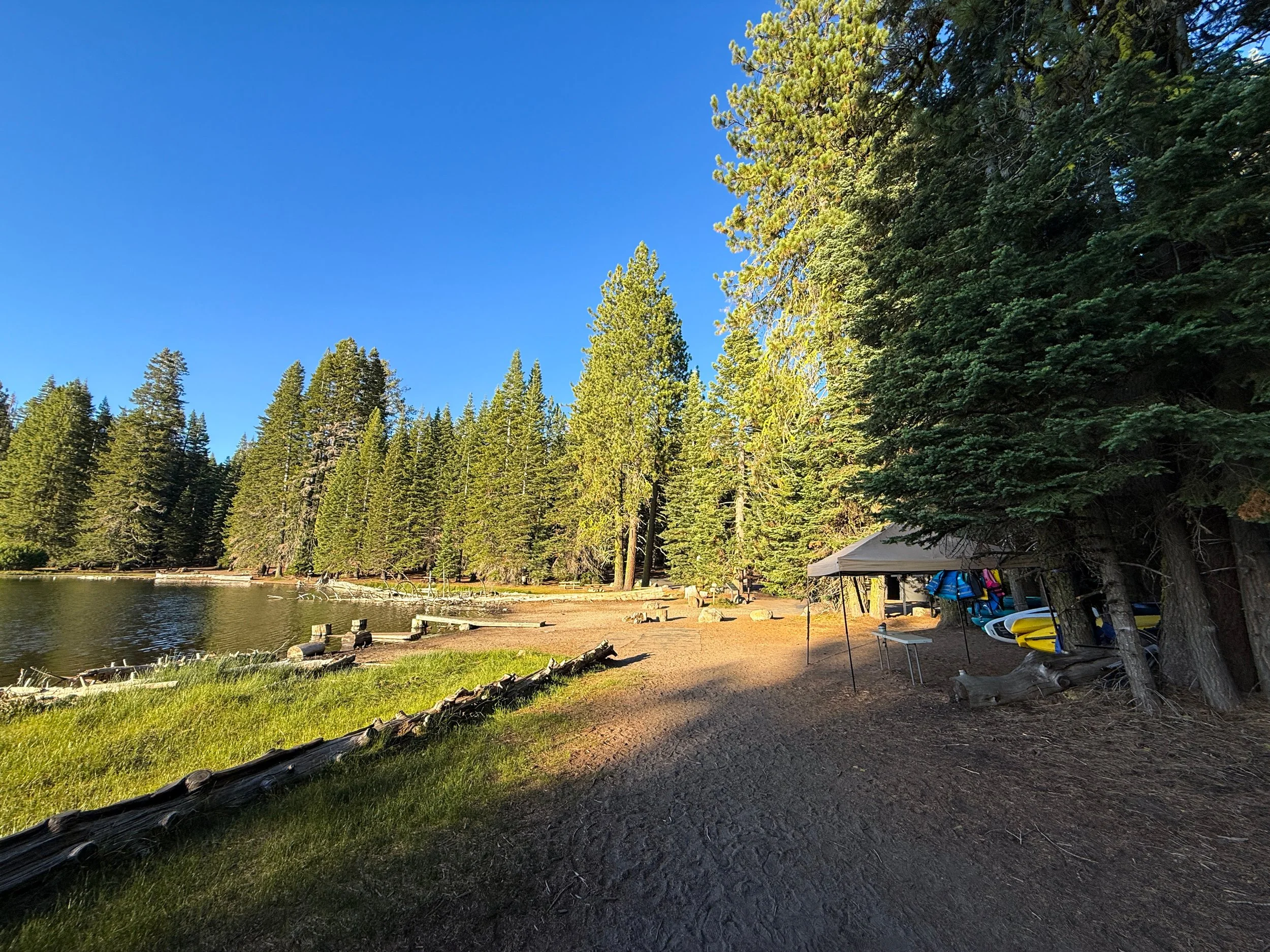 This is the Manzanita Lake Picnic Area, located just a few steps past the boat launch.