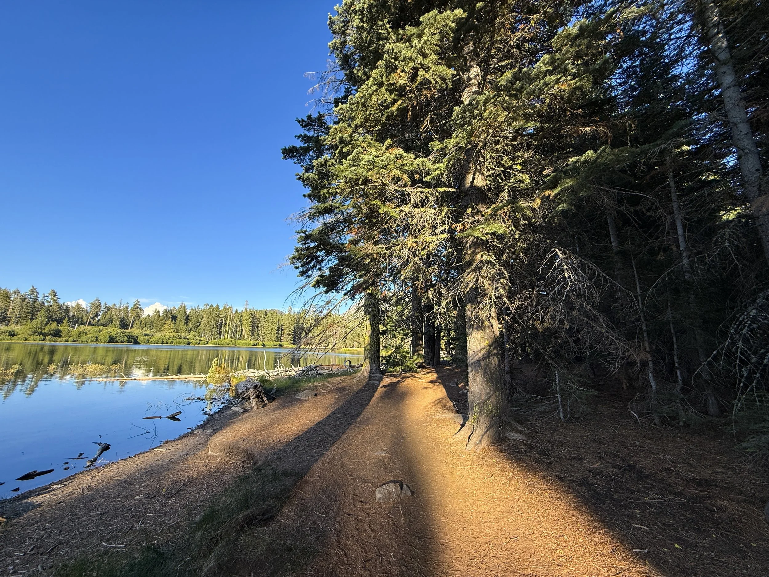 I think it’s important to mention that these two back-to-back spots on the east side of Manzanita Lake tend to be the busiest sections of the entire loop—especially on a beautiful, sunny summer day!