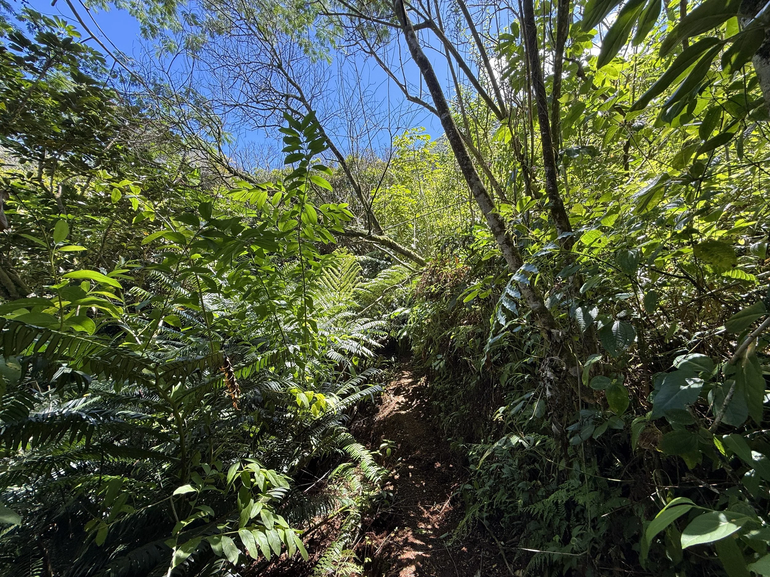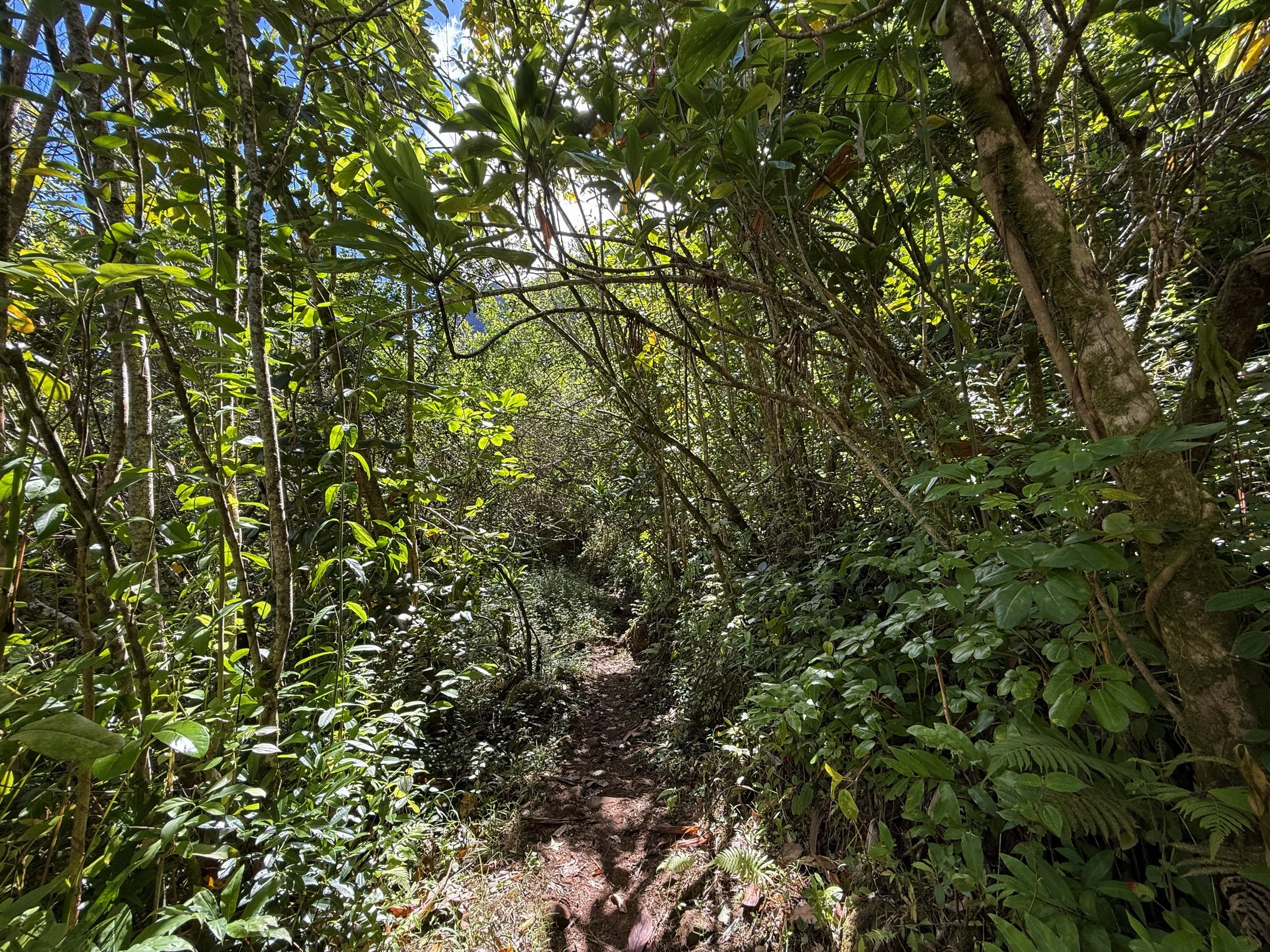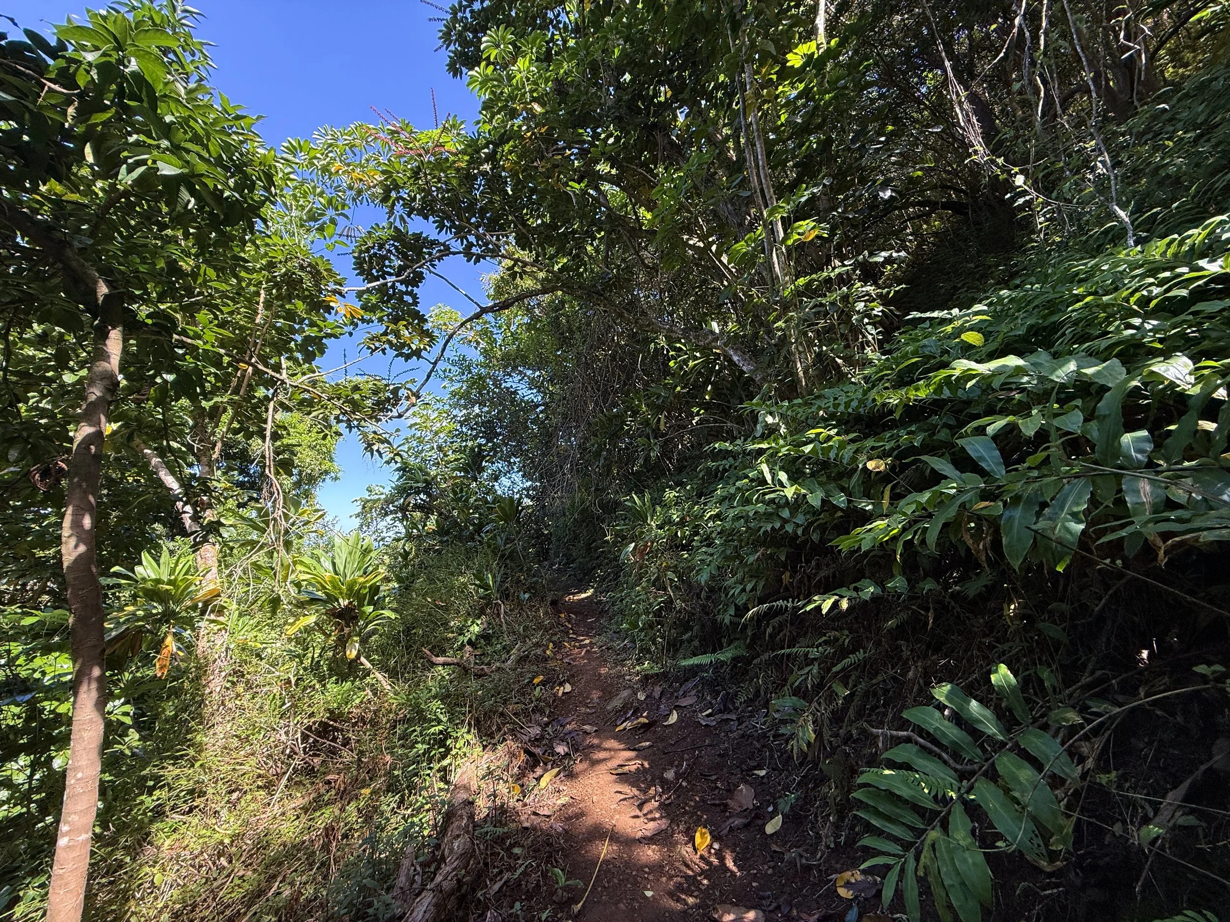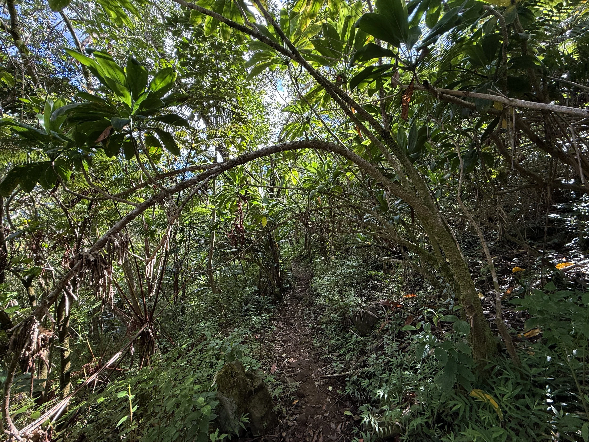 This second open section after Piliwale Ridge is another great mental checkpoint, as it’s located almost exactly 1.0 mile (1.6 km) away from the Maunawili Falls Ridge that leaves the Demonstration Trail.