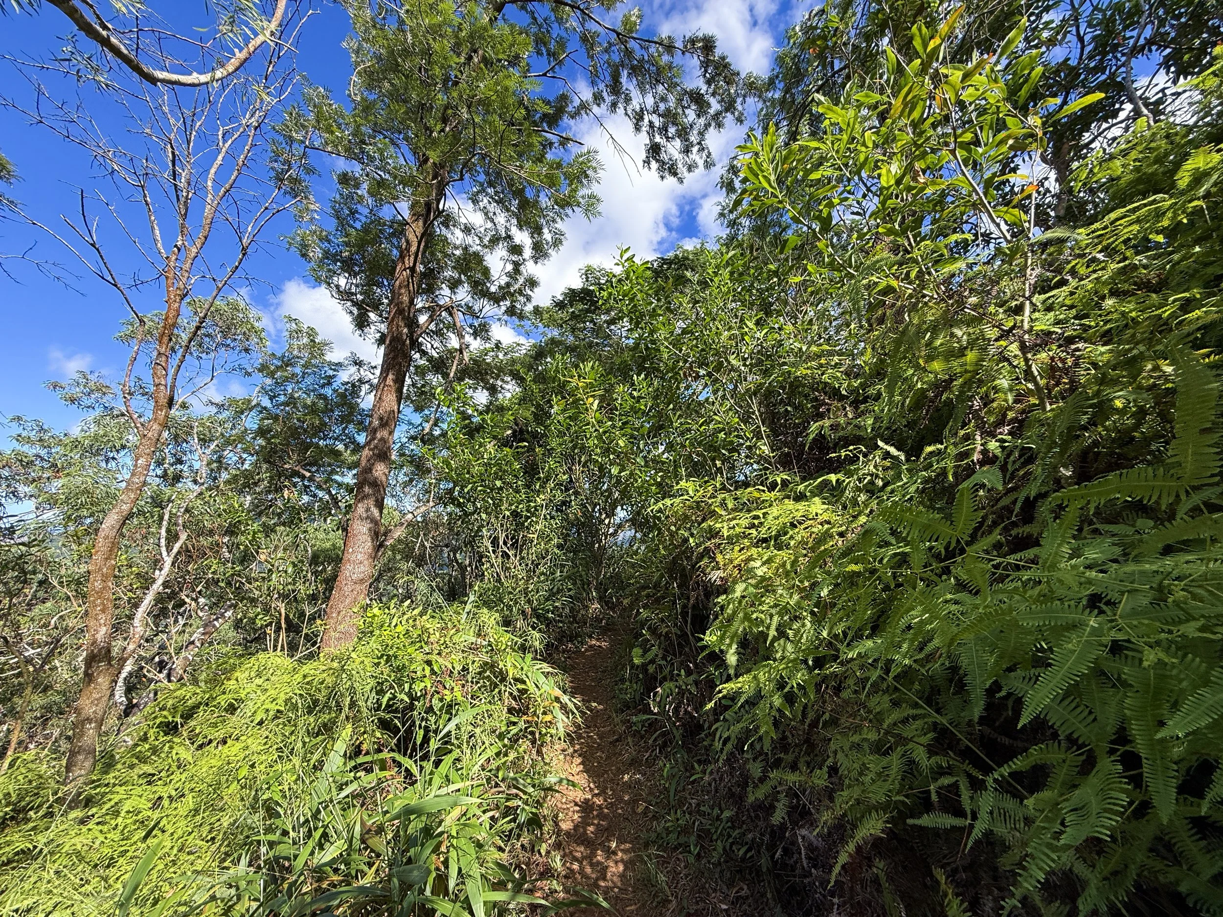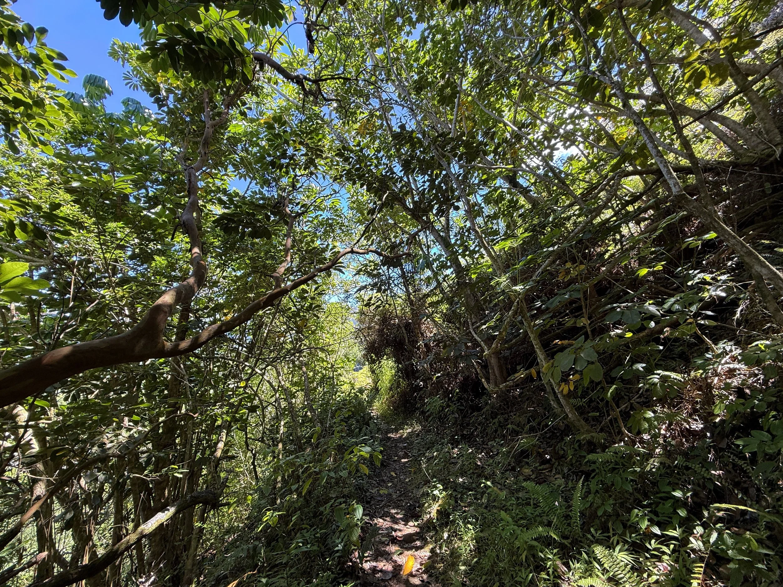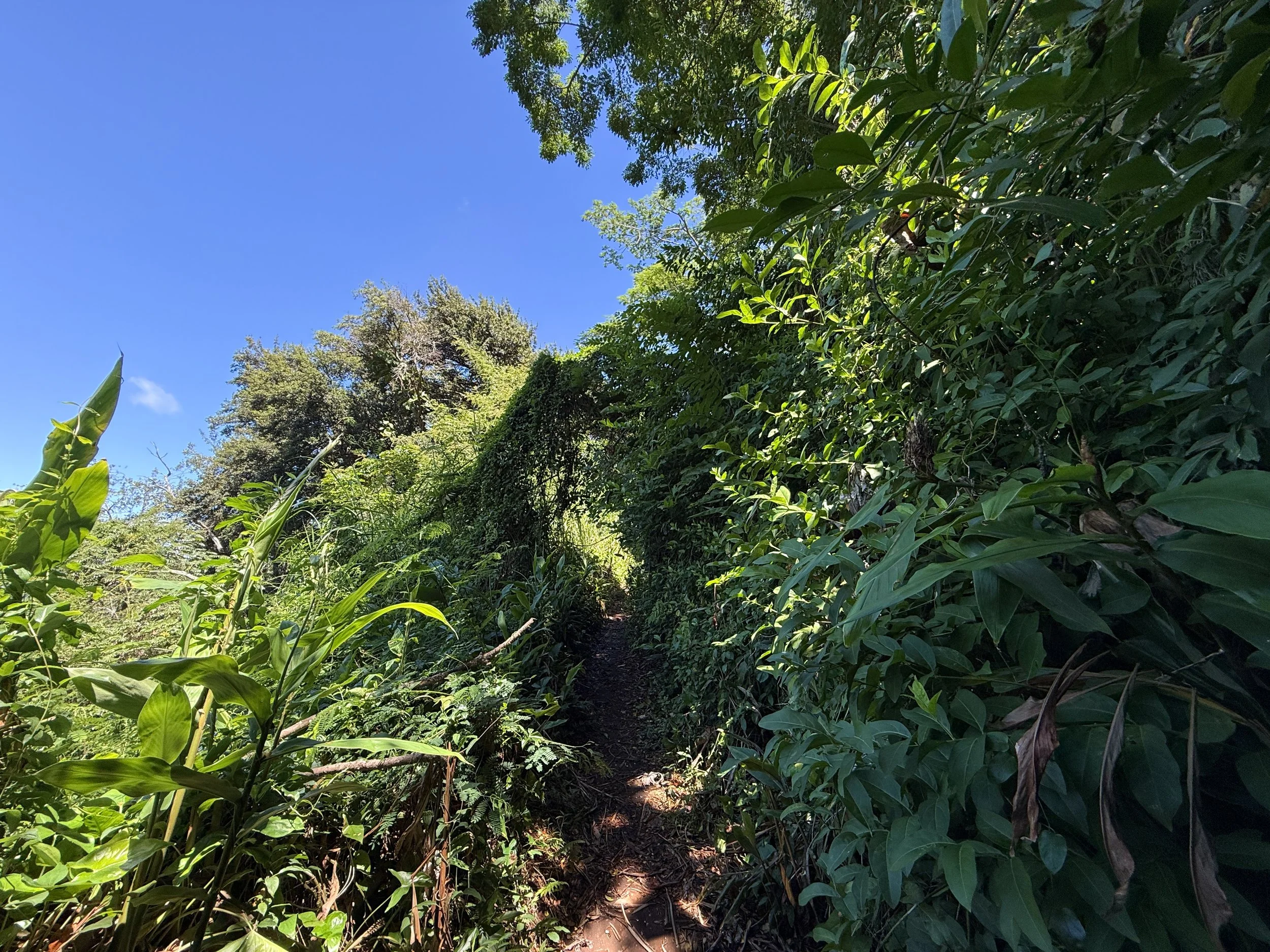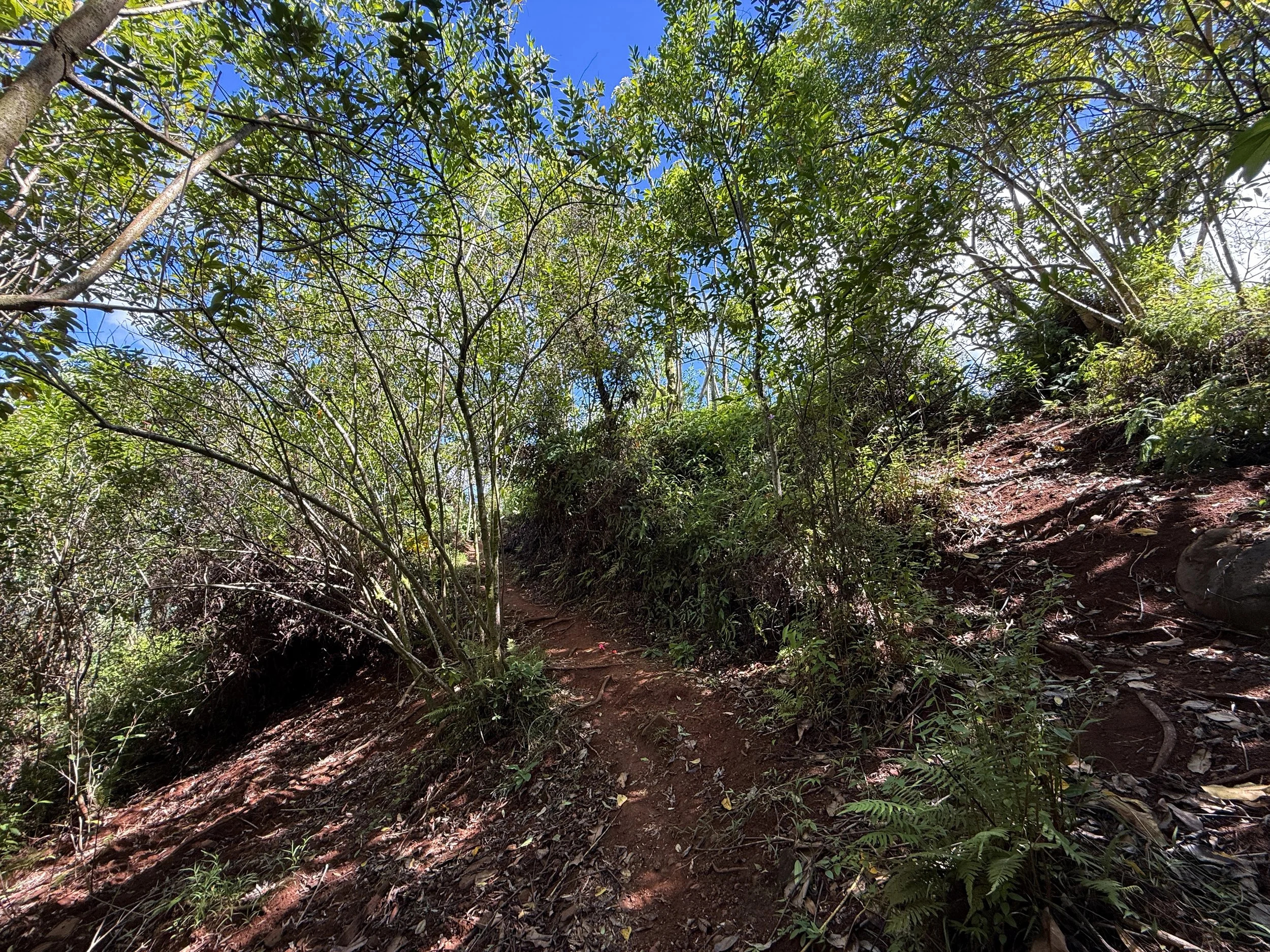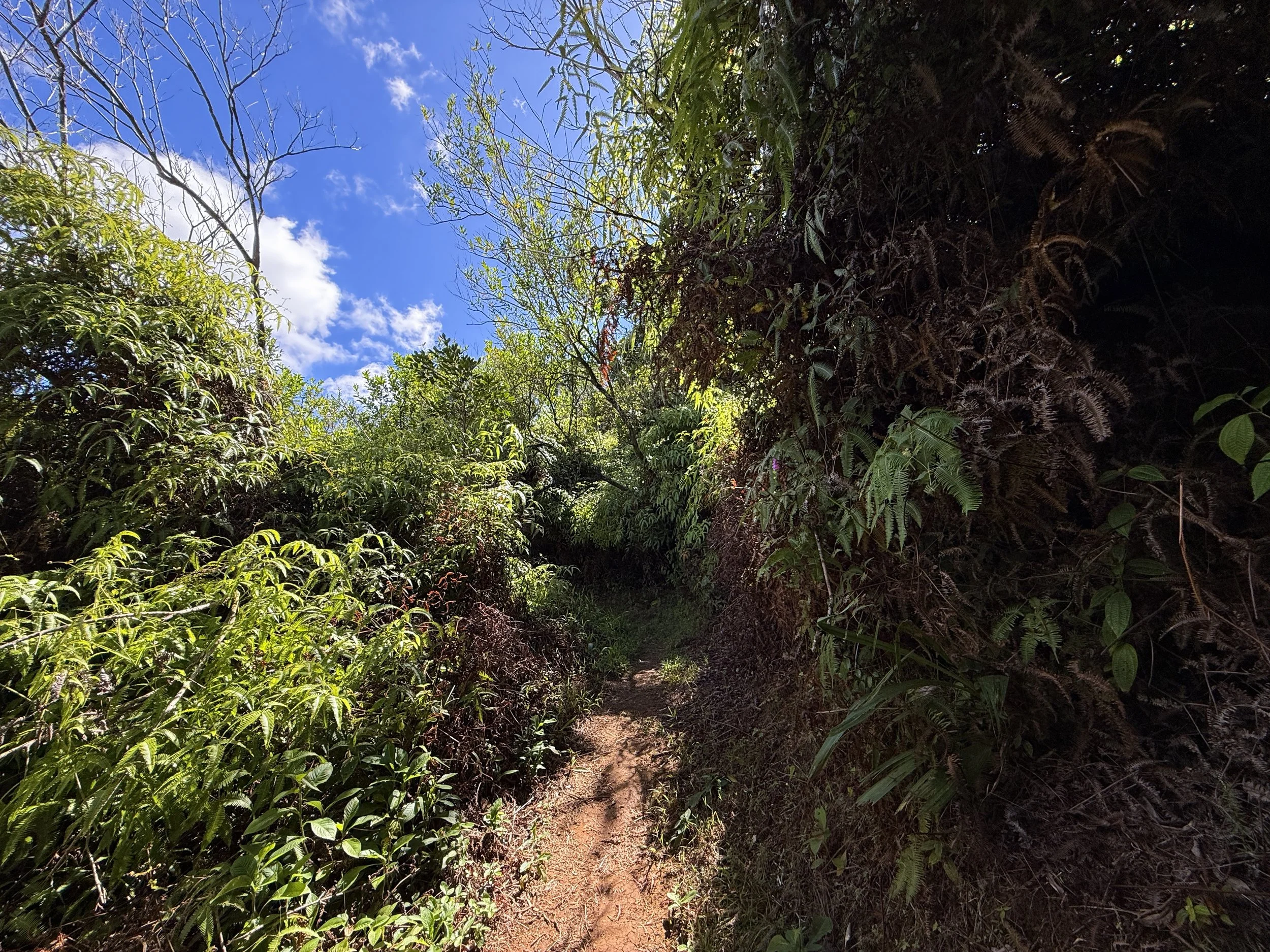 This second open section after Piliwale Ridge is another great mental checkpoint, as it’s located almost exactly 1.0 mile (1.6 km) away from the Maunawili Falls Ridge that leaves the Demonstration Trail.