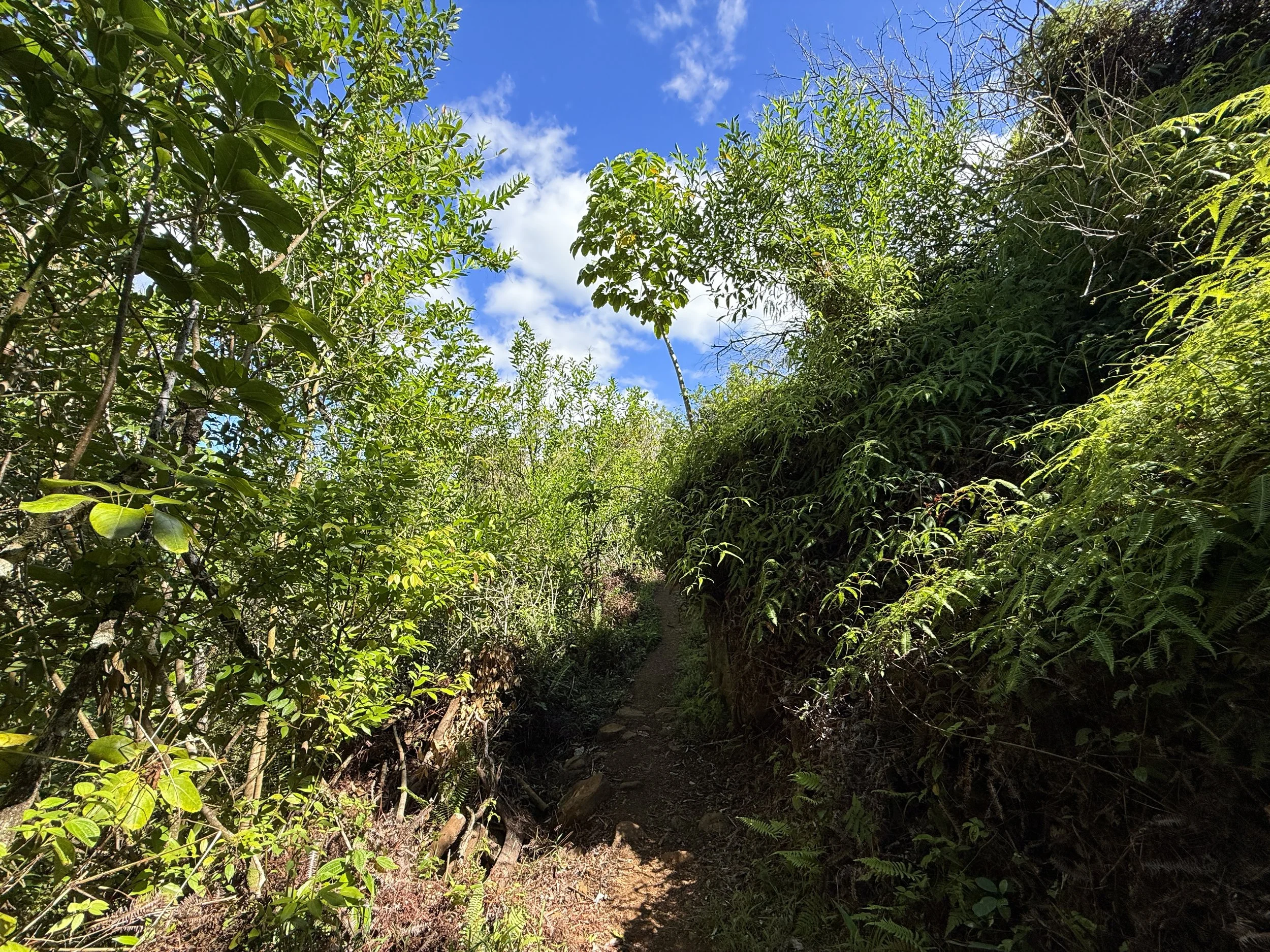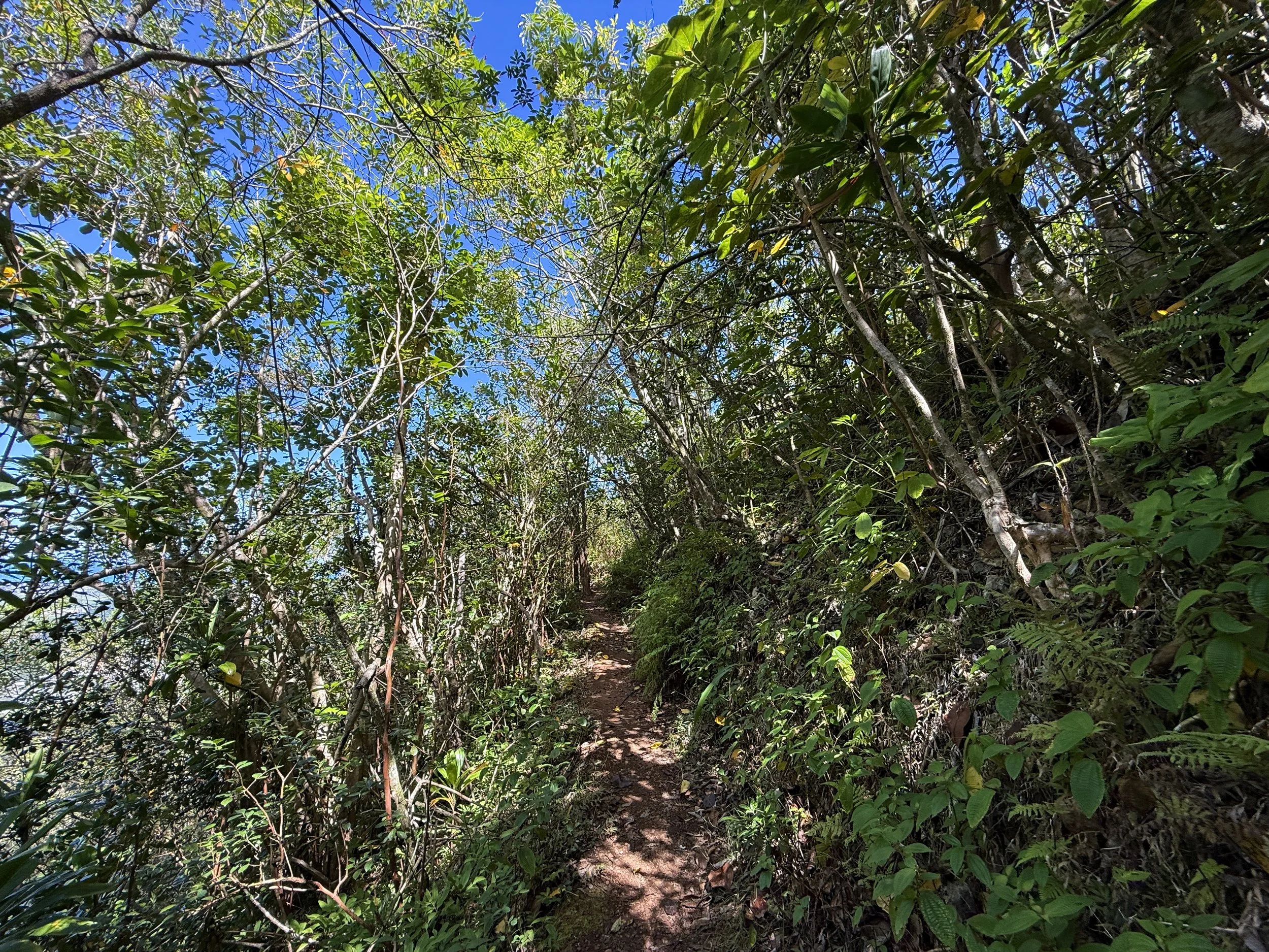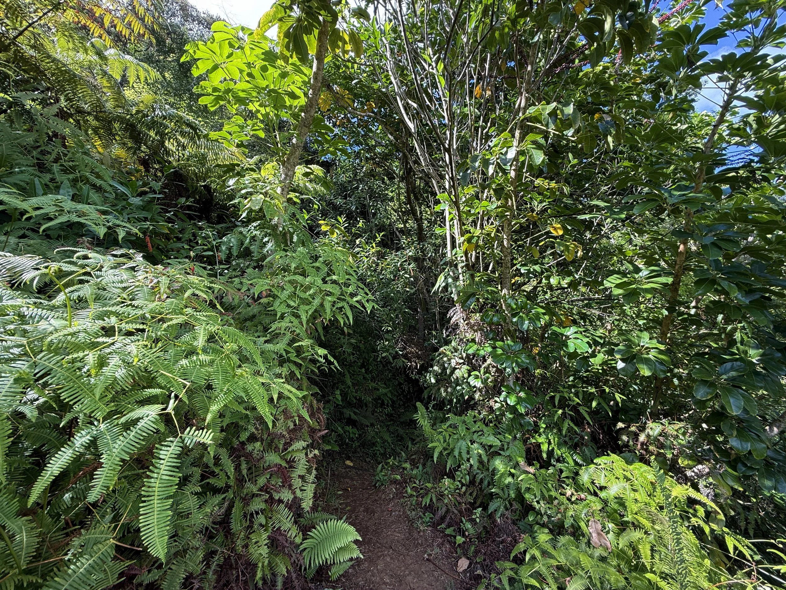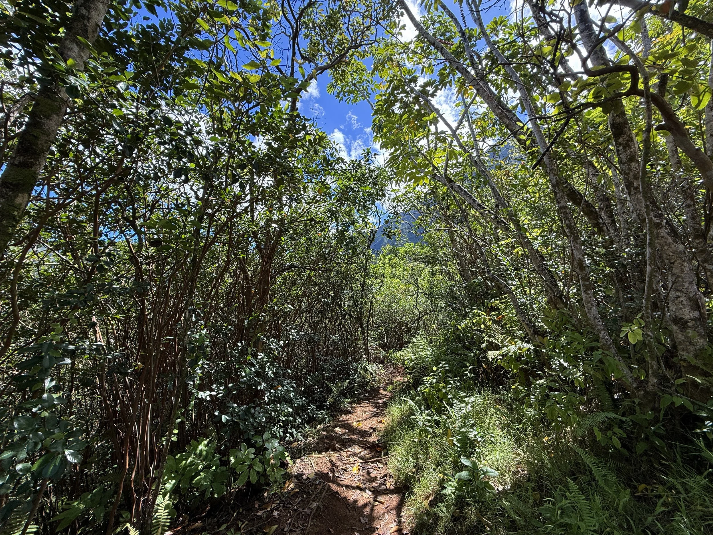 This second open section after Piliwale Ridge is another great mental checkpoint, as it’s located almost exactly 1.0 mile (1.6 km) away from the Maunawili Falls Ridge that leaves the Demonstration Trail.