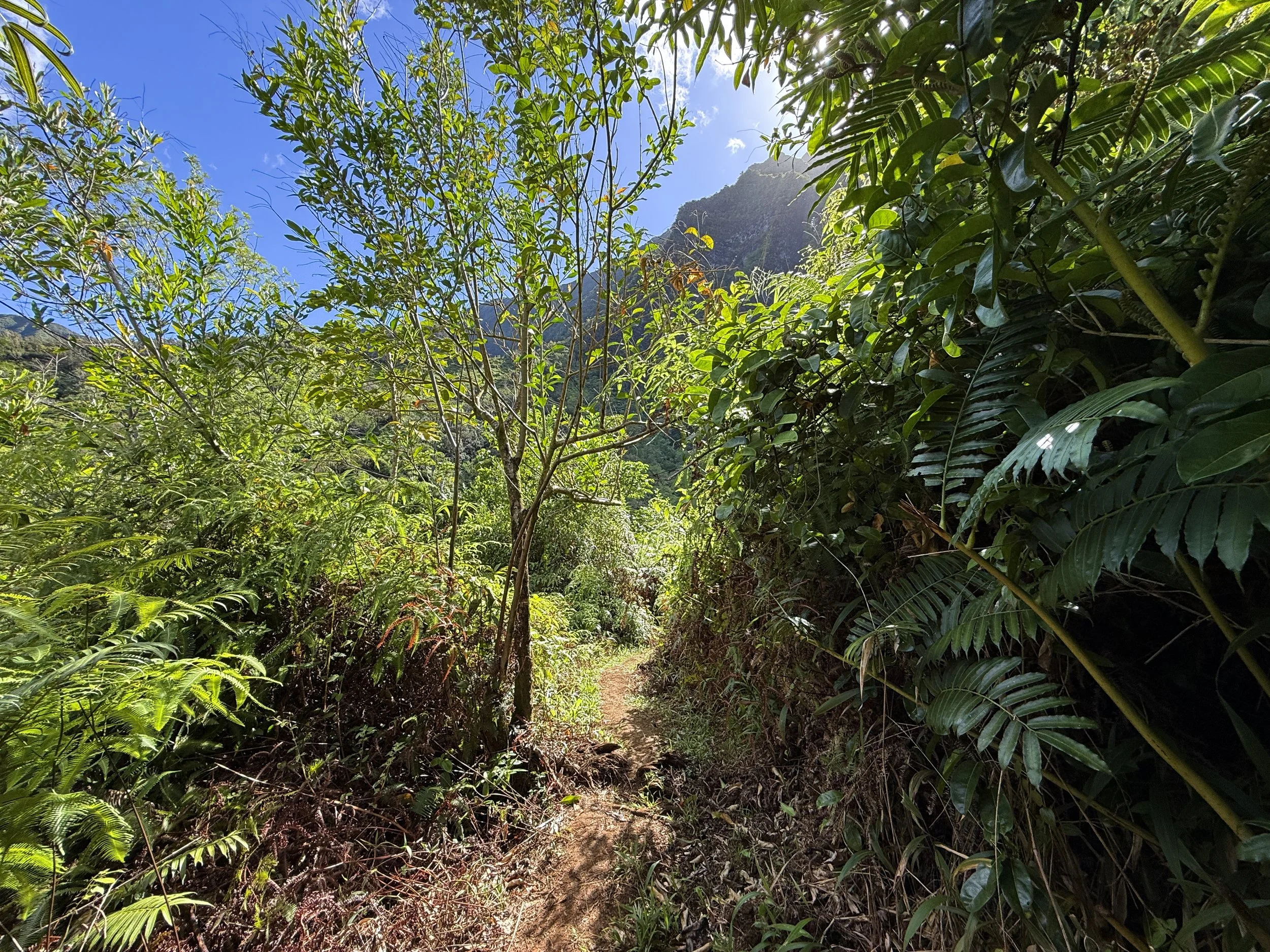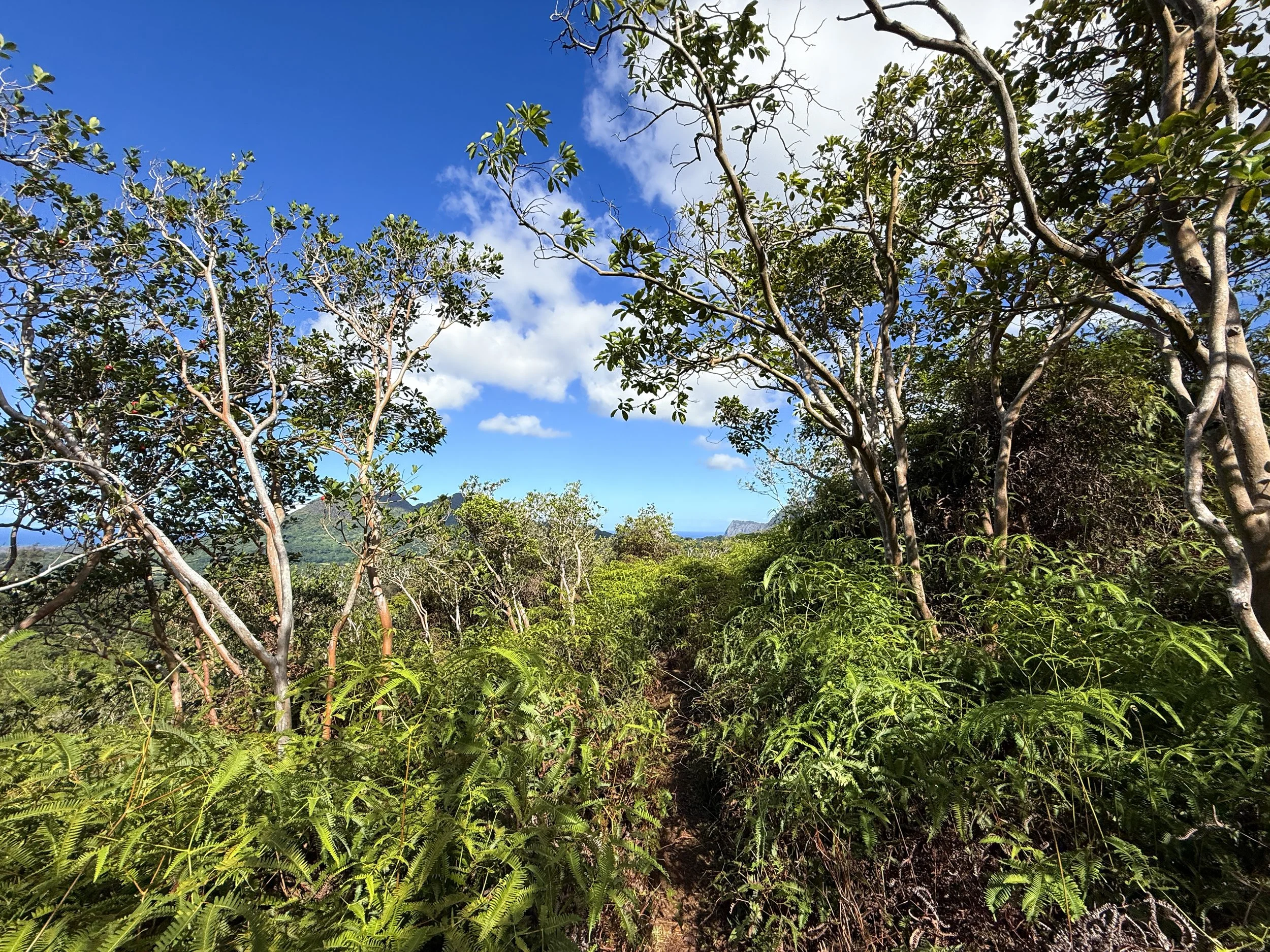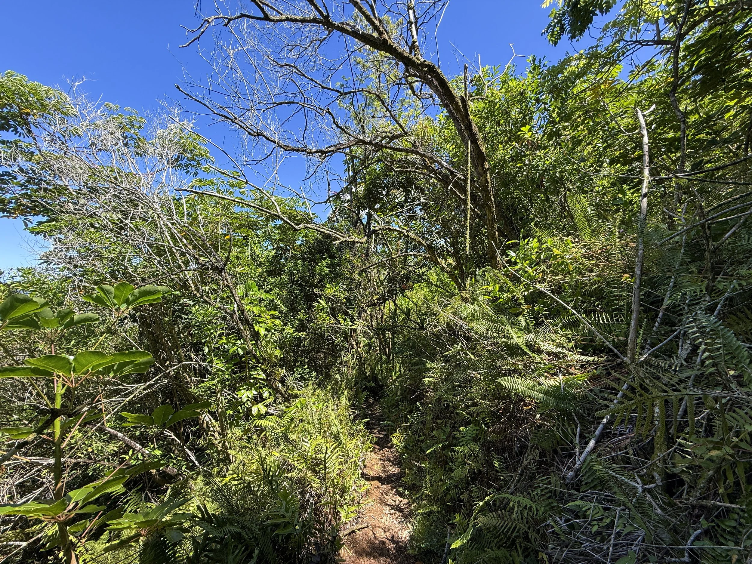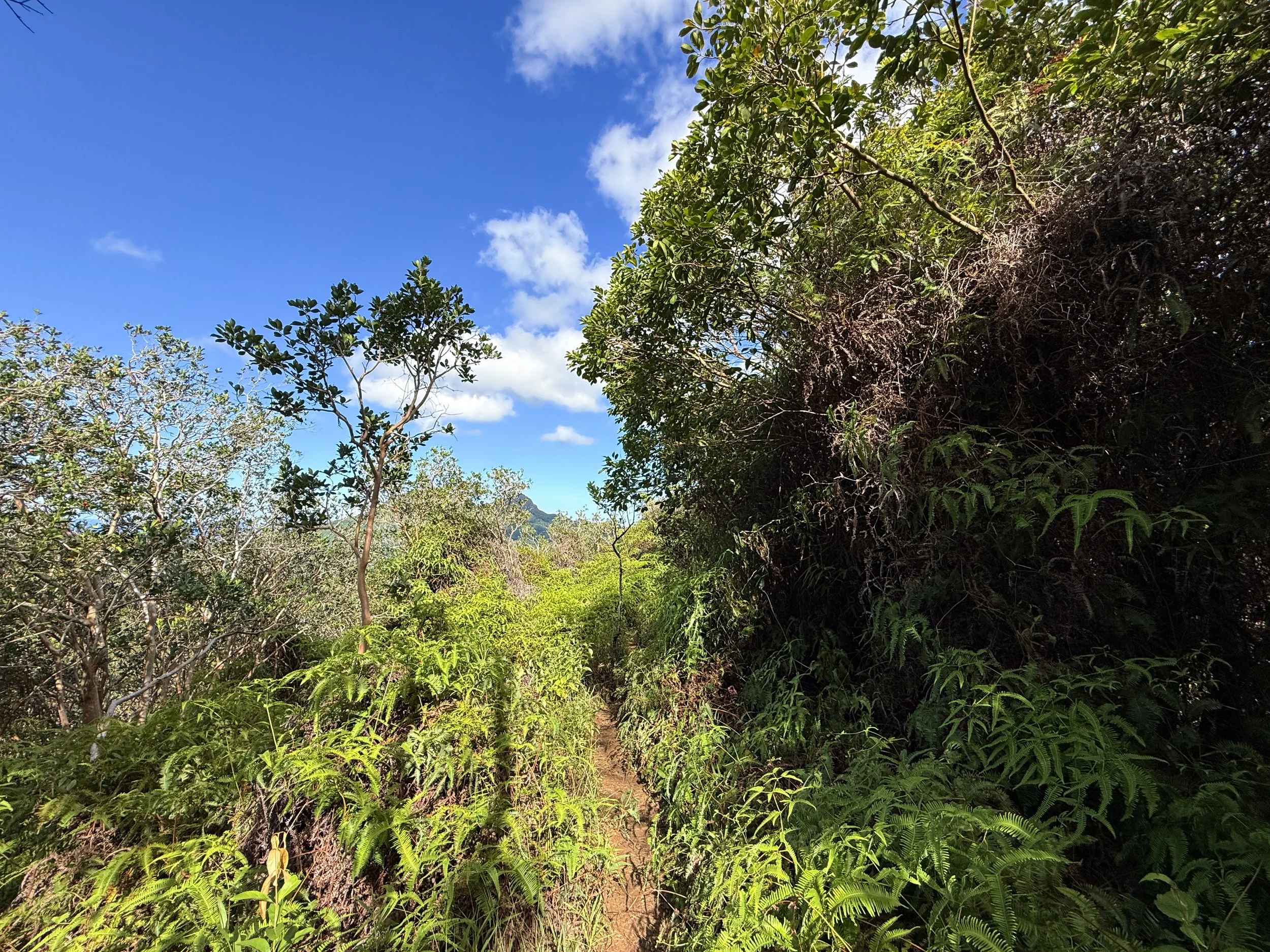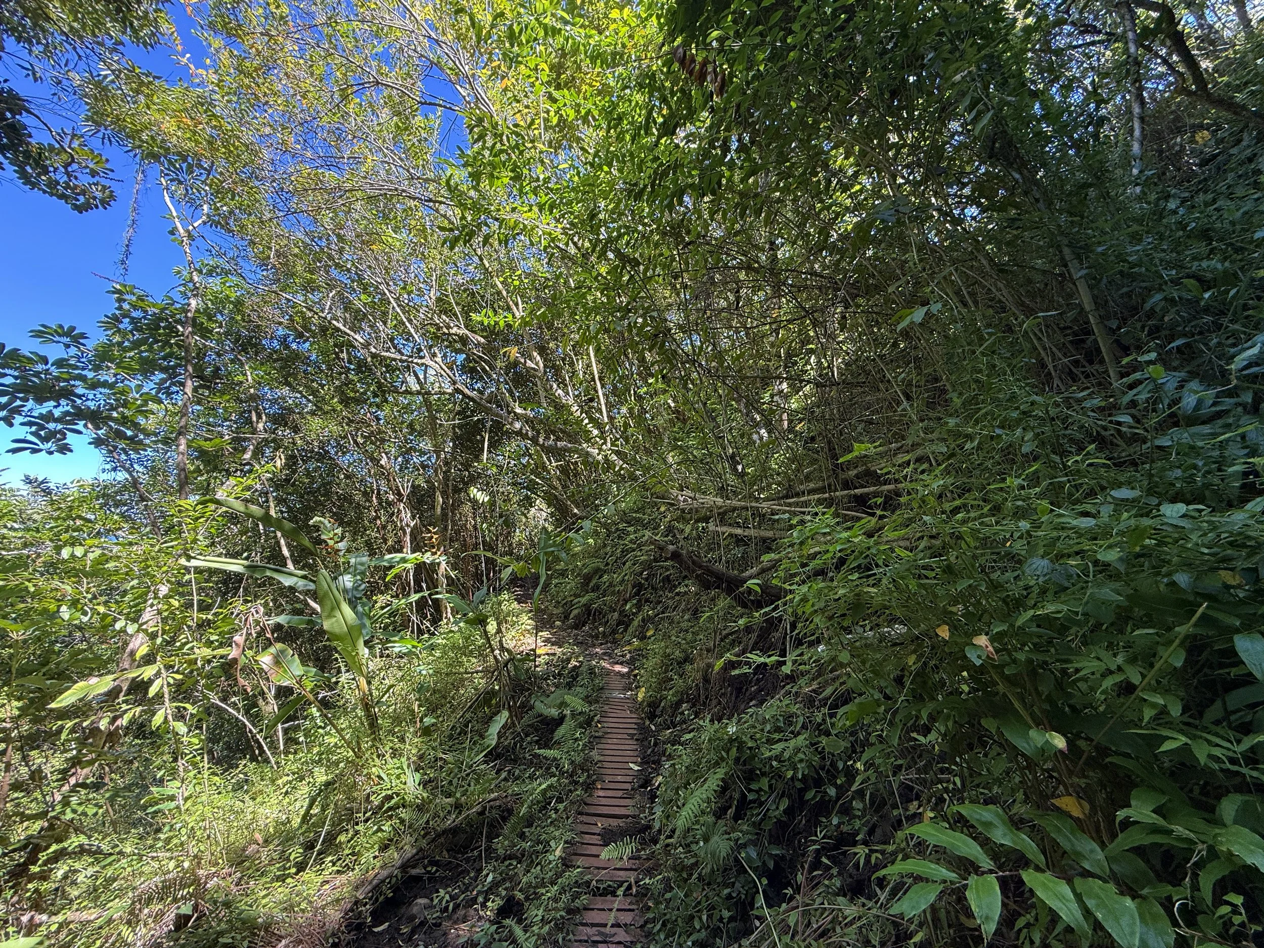 This second open section after Piliwale Ridge is another great mental checkpoint, as it’s located almost exactly 1.0 mile (1.6 km) away from the Maunawili Falls Ridge that leaves the Demonstration Trail.