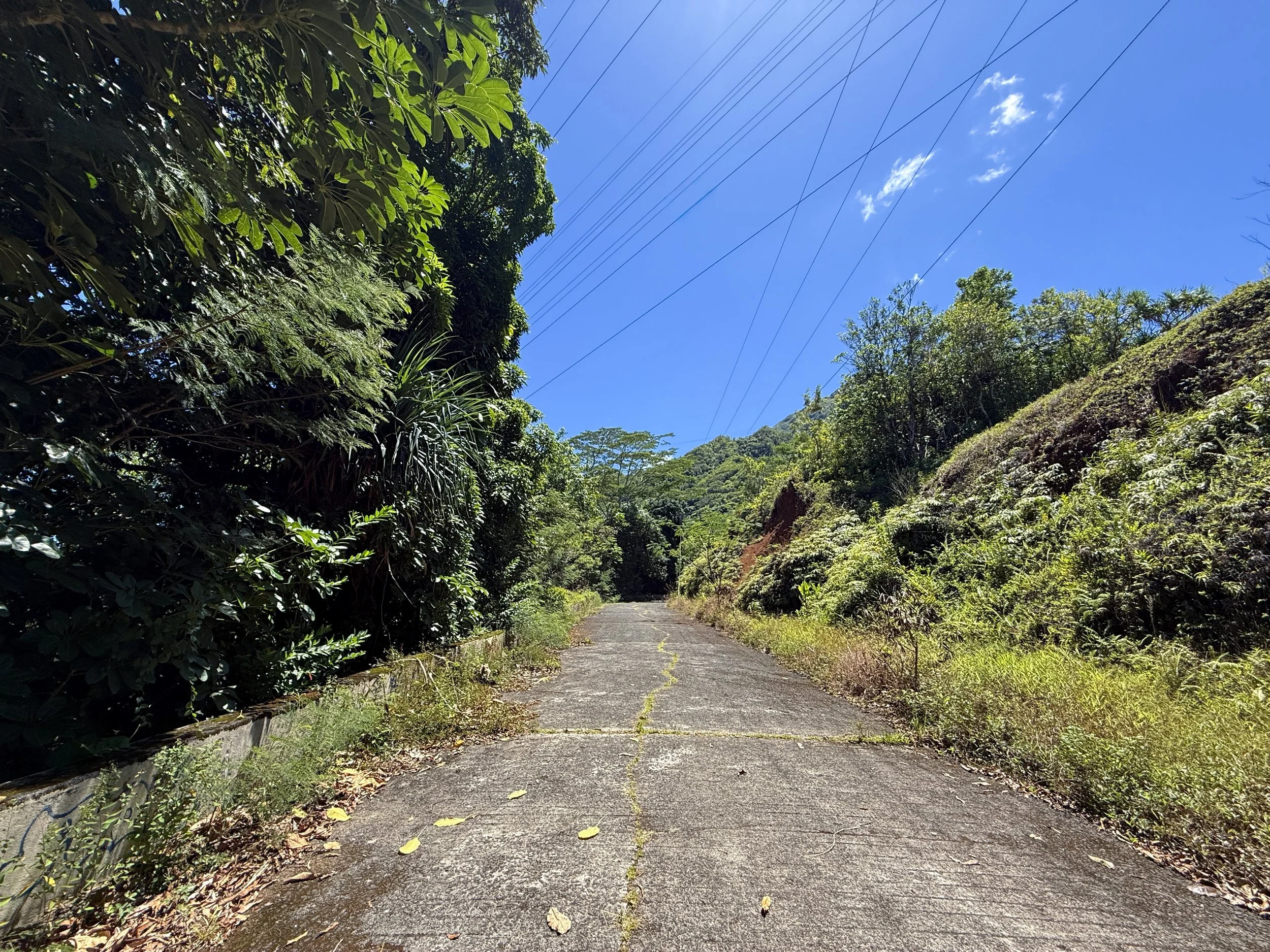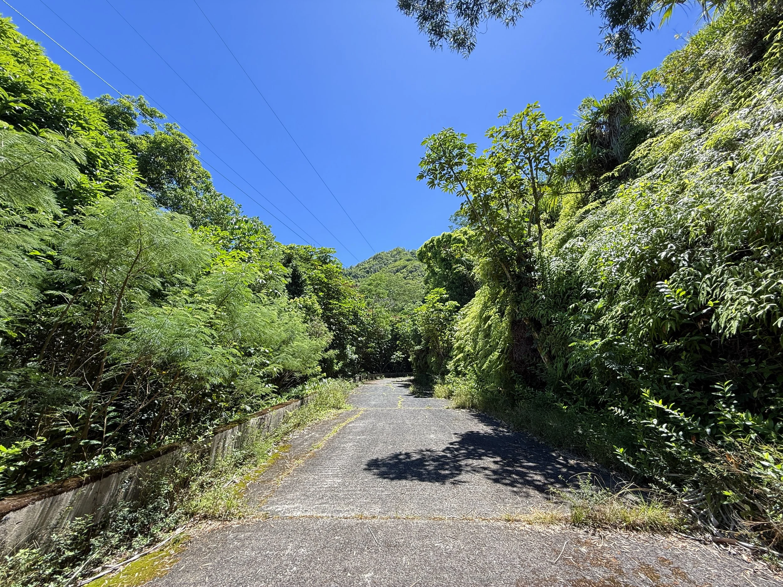 When the short trail reaches the hidden road—the historic section of Kīnāʻole Road—go right to begin walking up toward the Old Pali Highway.