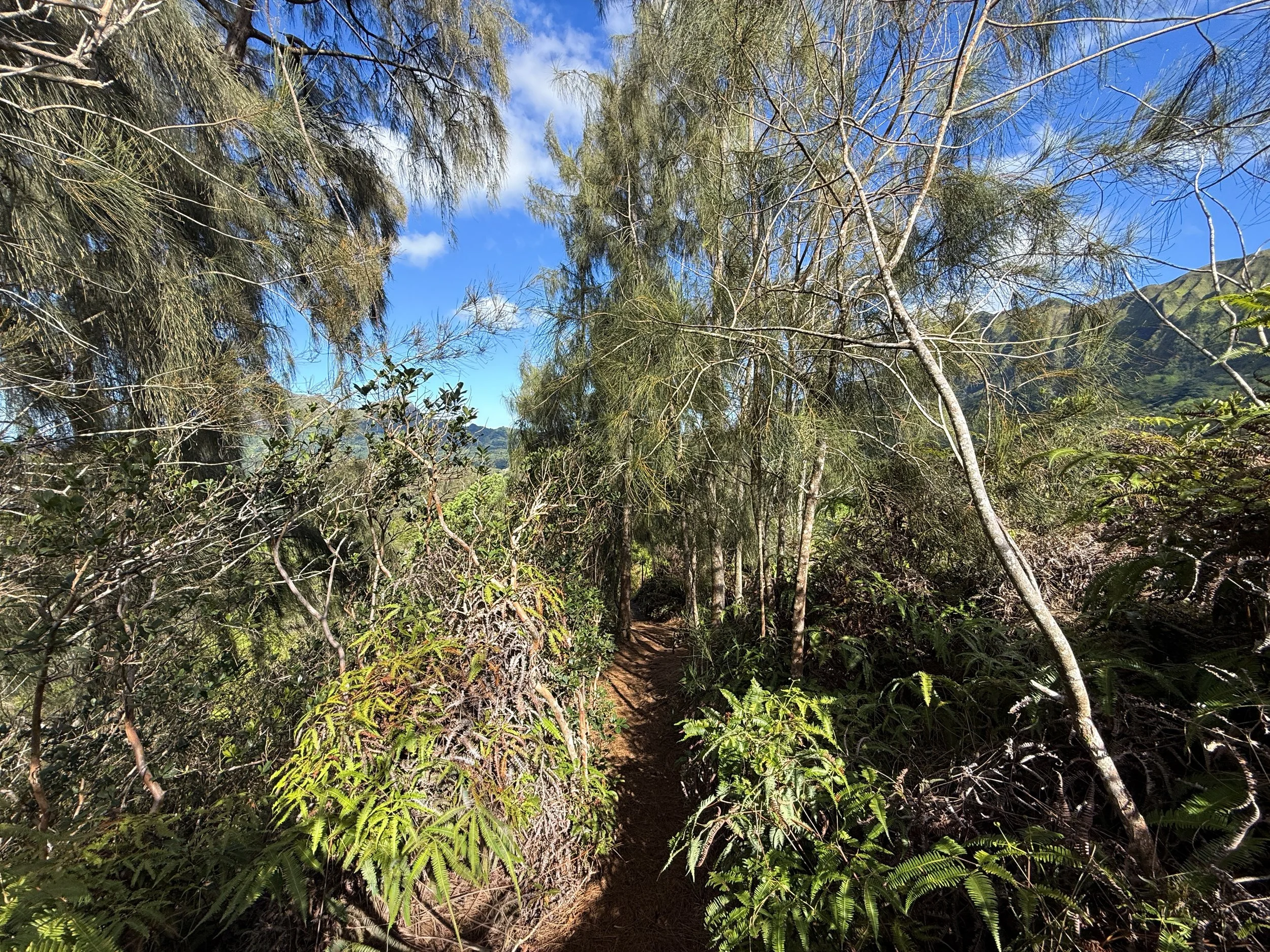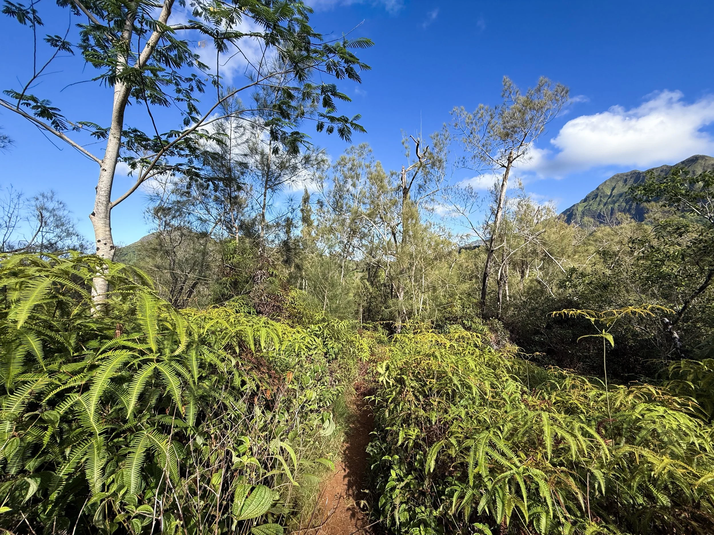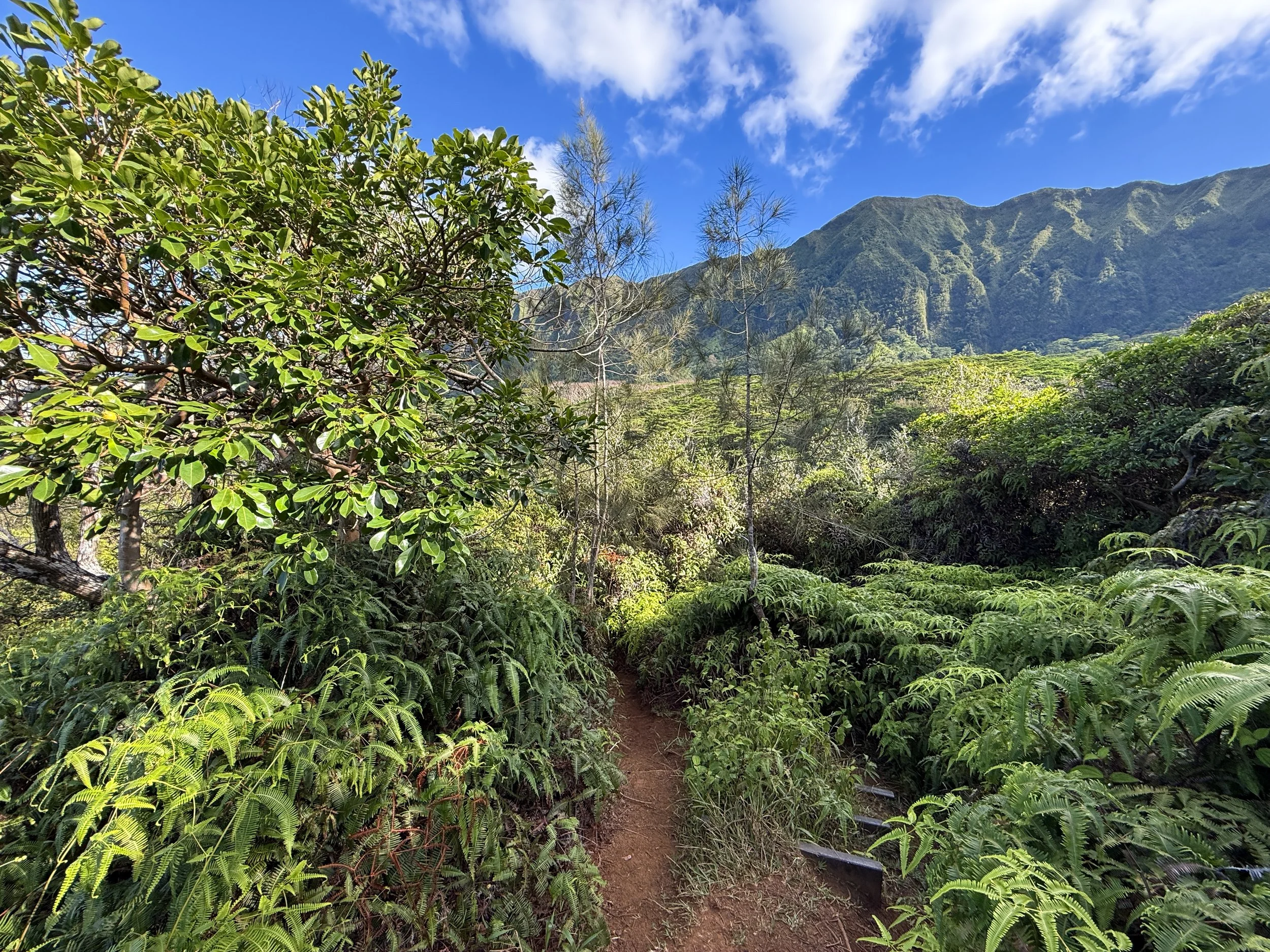 When the trail reaches this clearing, Mt. Olomana can be seen for the first time.
