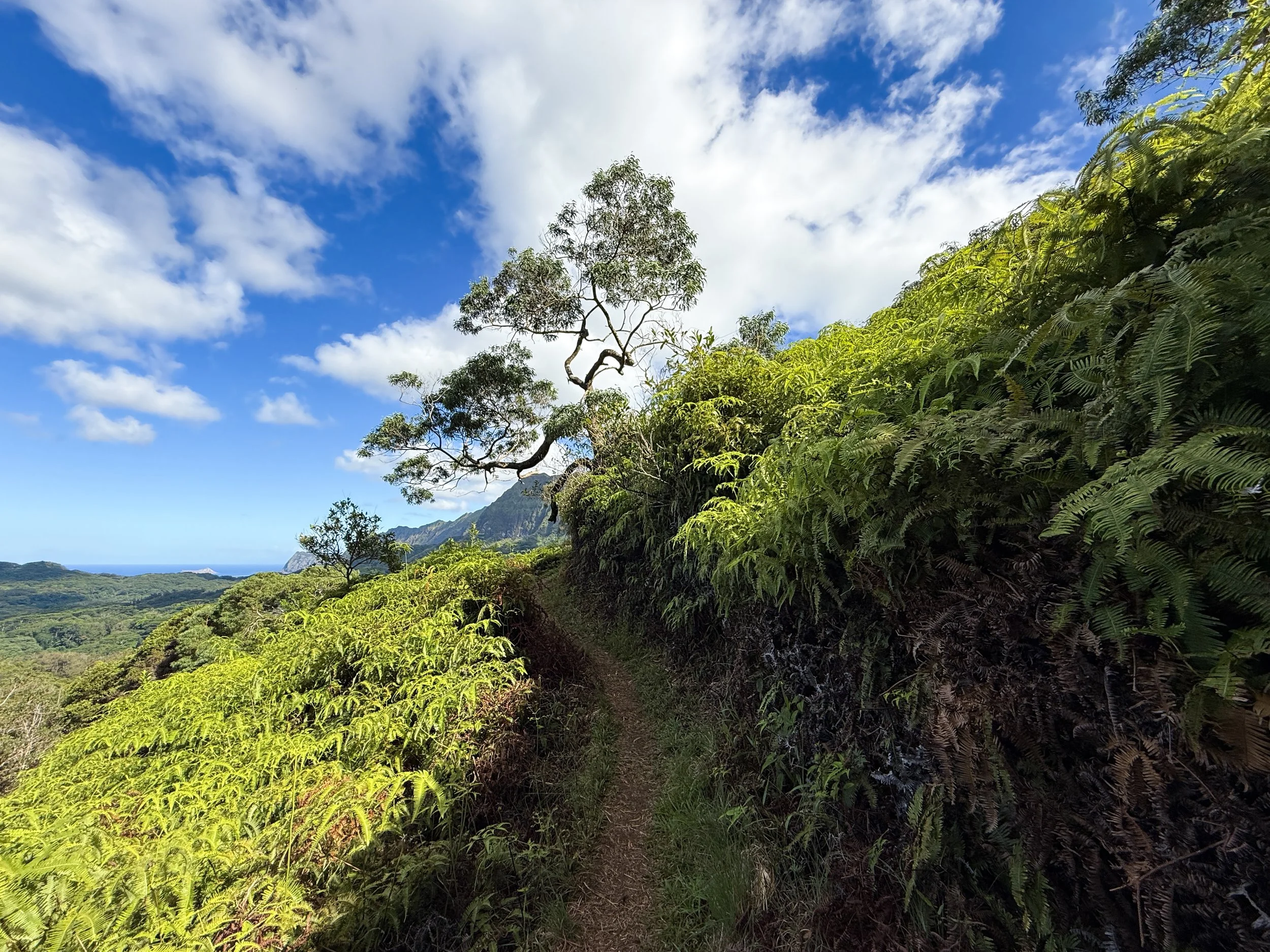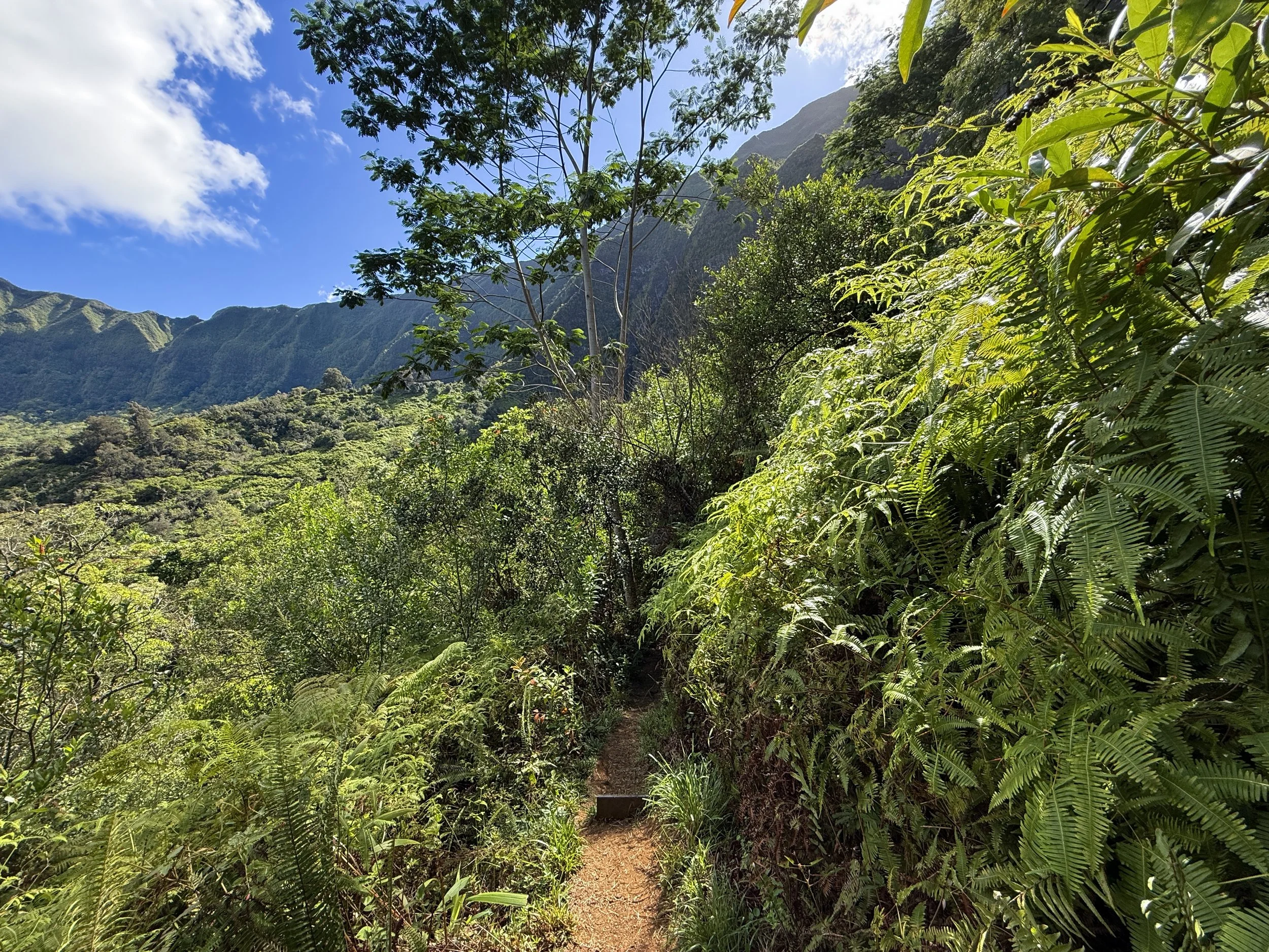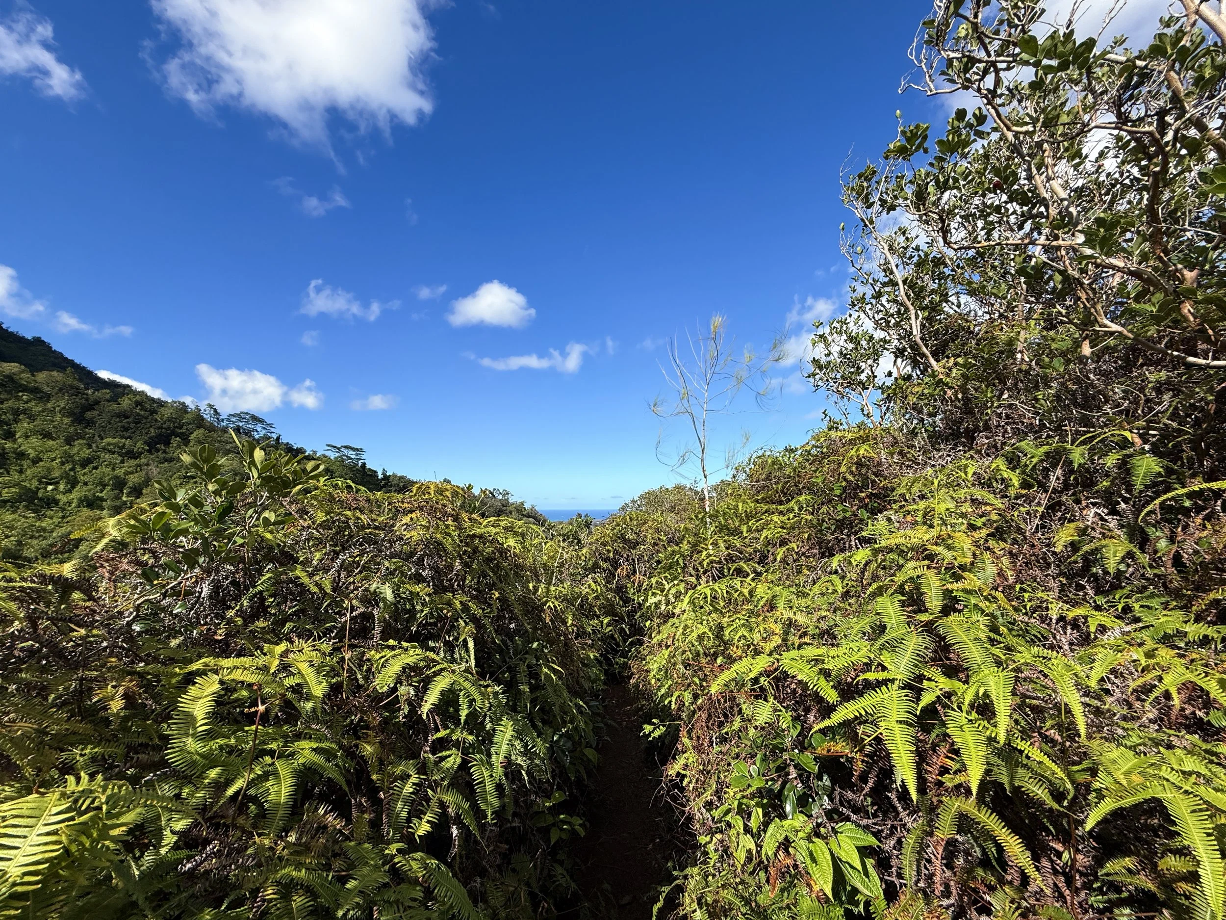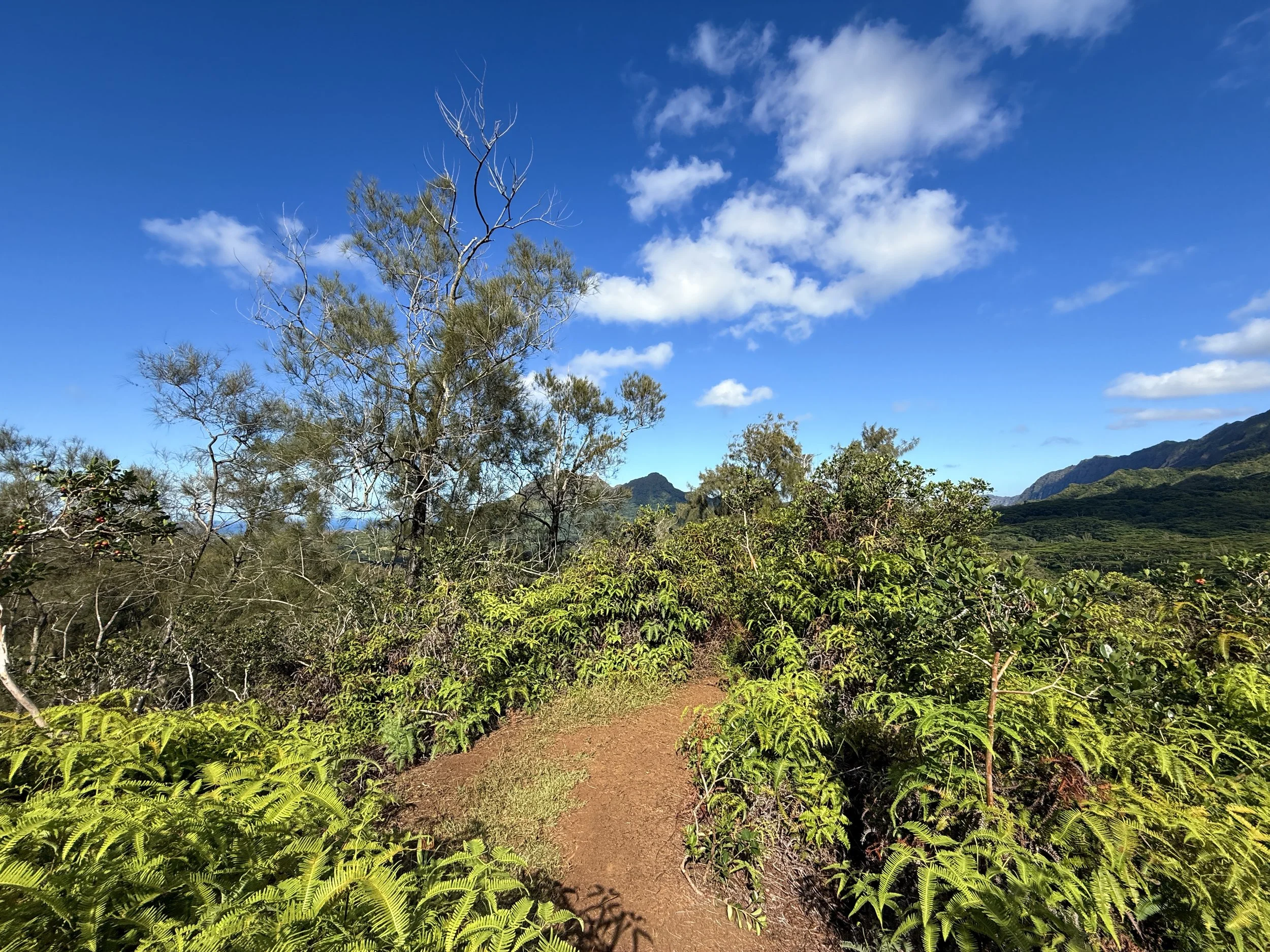 After Piliwale Ridge, hikers, for the first time, can start to look ahead and see the ridge heading down to Maunawili Falls!