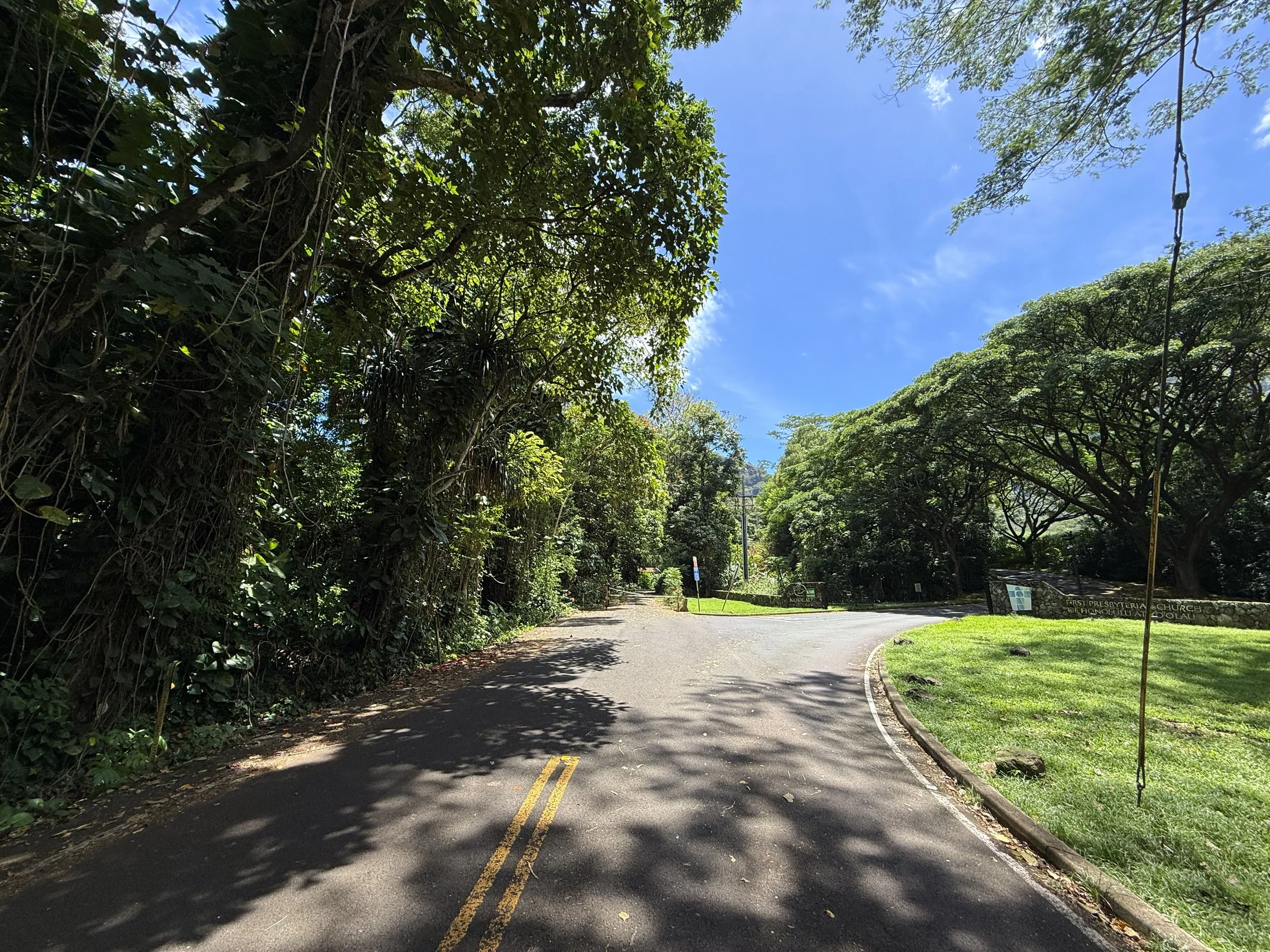 If you decide to park for free off Kīnāʻole Road, go right where the road splits to begin walking the private road toward the First Presbyterian Church/ Koʻolau Golf Club.